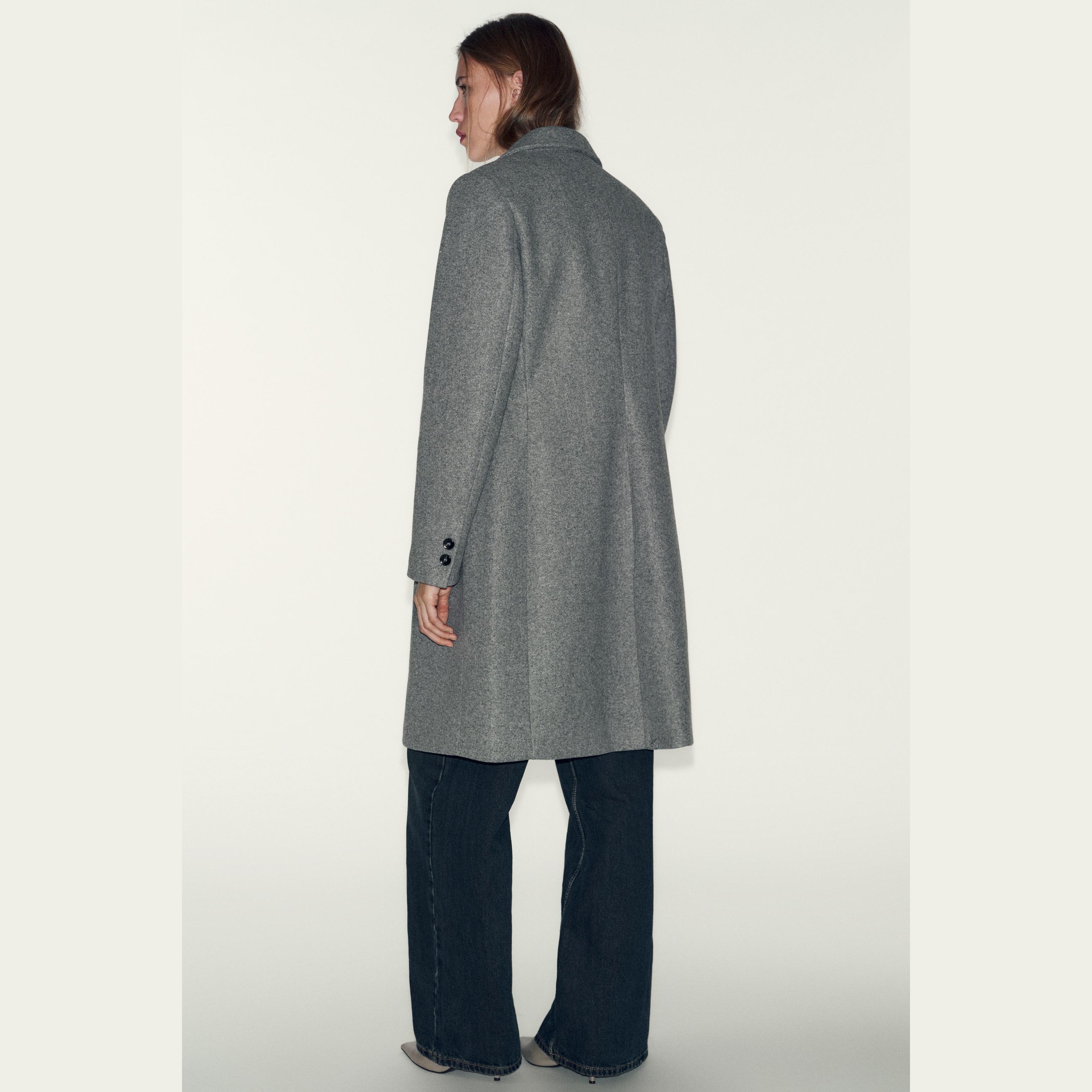معطف نسائي – لون حيادي ممزوج (رمادي) – Grey، بأكتاف مبطنة وتصميم كلاسيكي (Soft Shoulder Pad Coat)