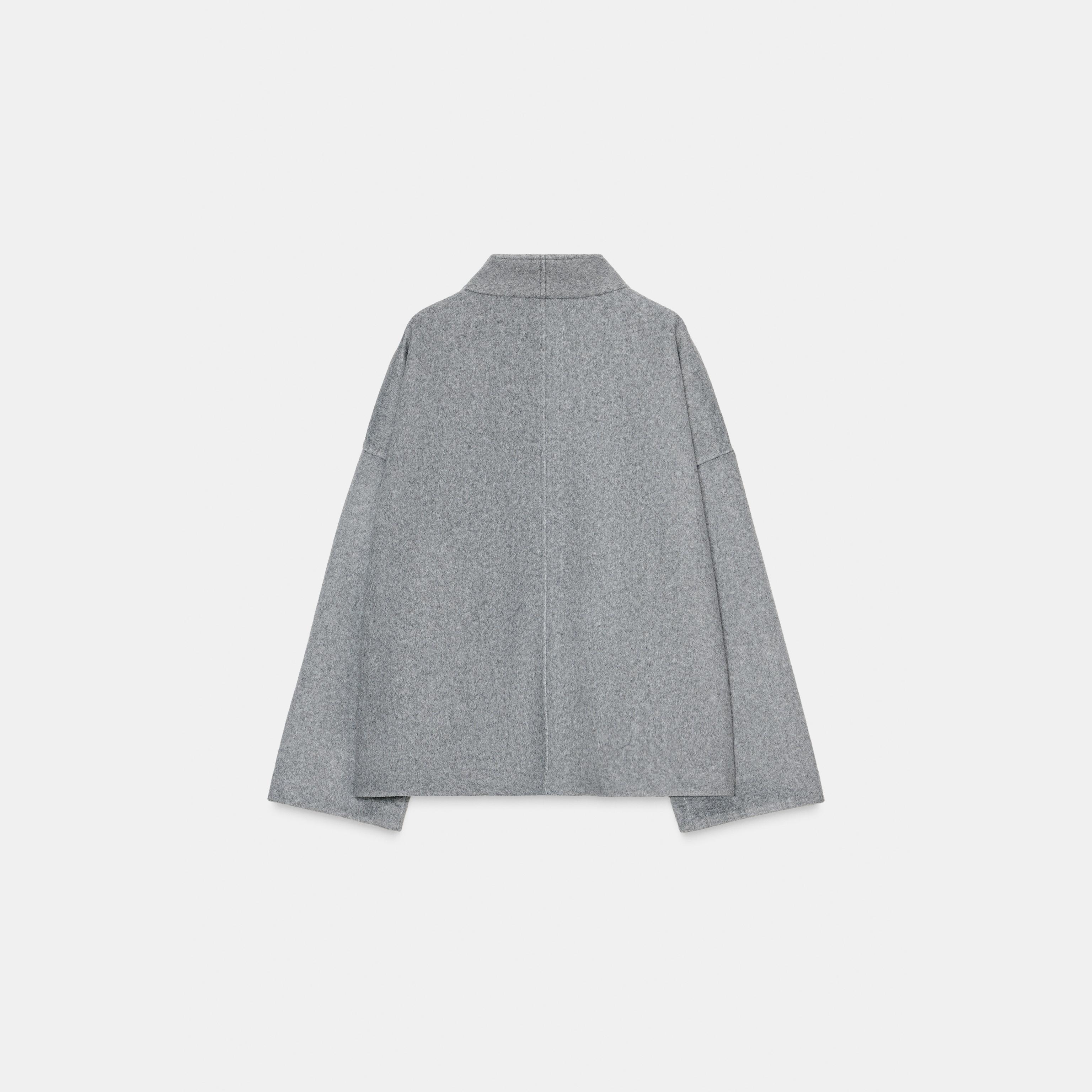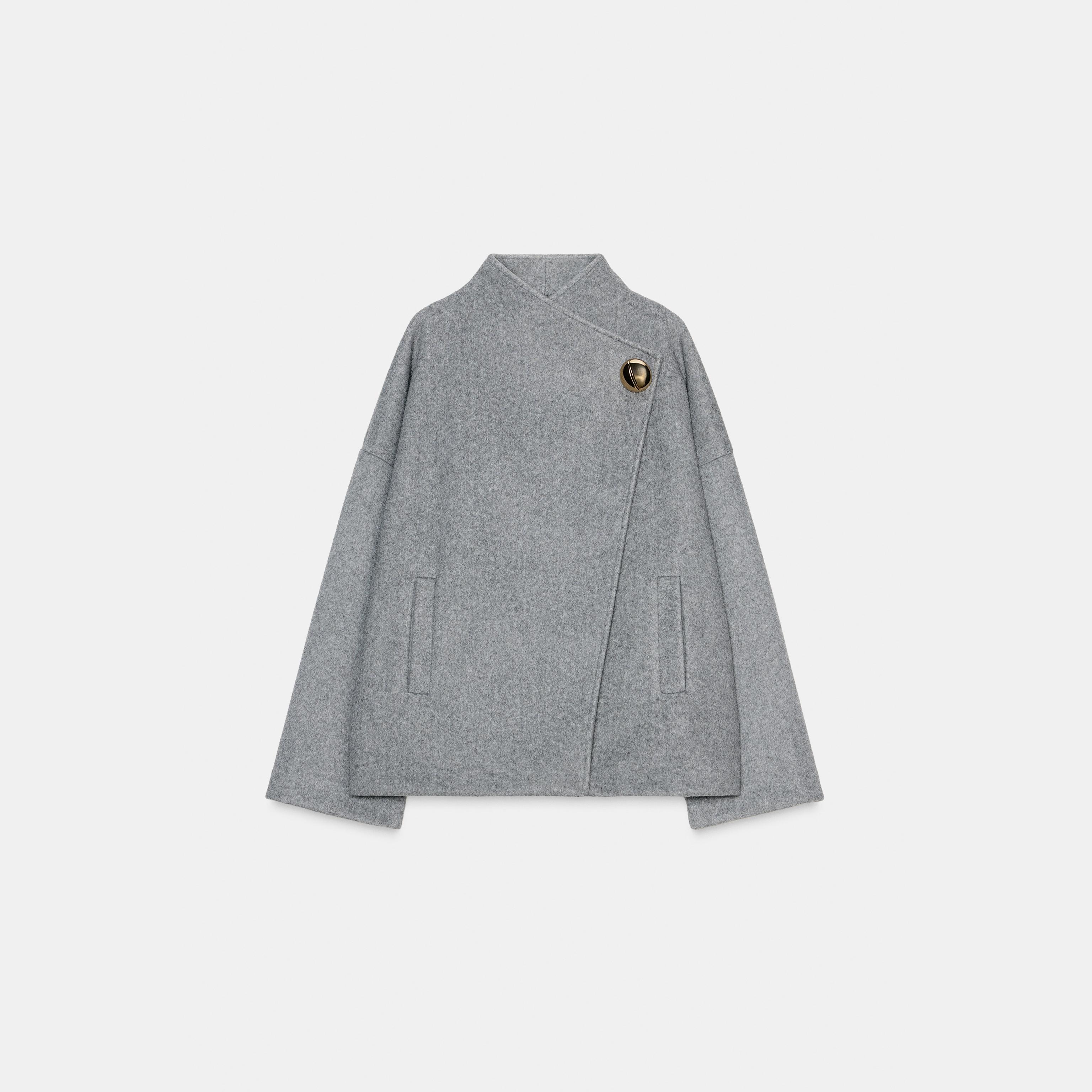 معطف نسائي قصير – لون حيادي فاتح (رمادي فاتح) – Light Grey، بأزرار أمامية (Soft Button Coat)