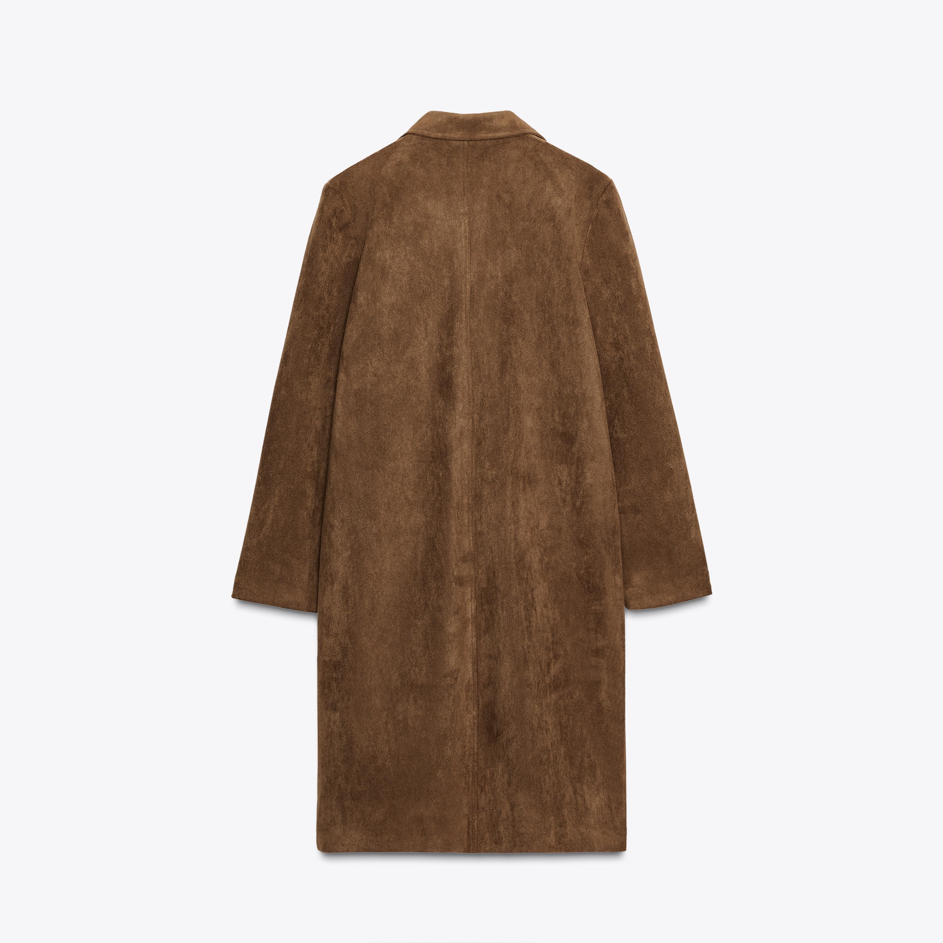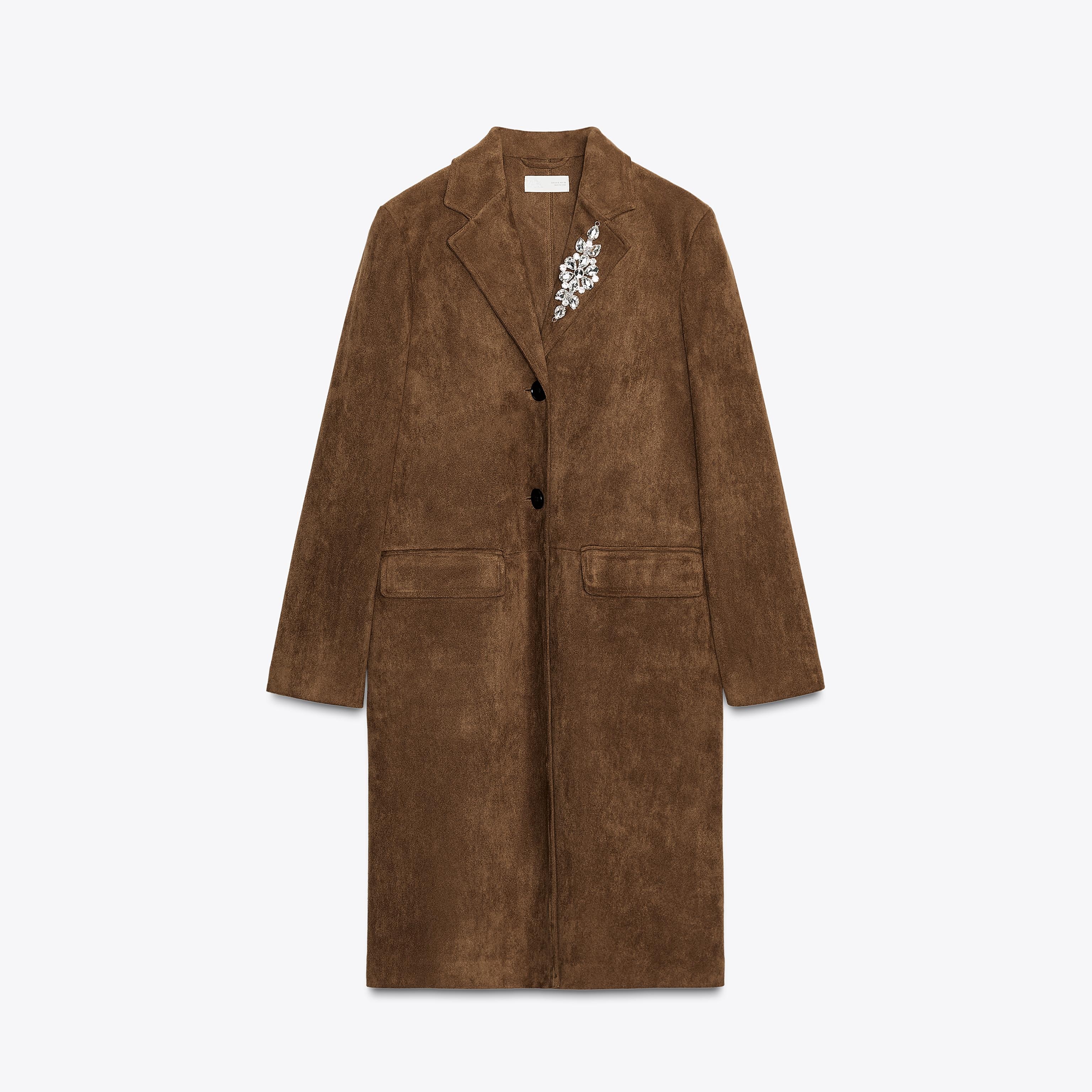 - التصميم: معطف من السويد الصناعي مع بروش زخرفي (Faux Suede Brooch Frock Coat)