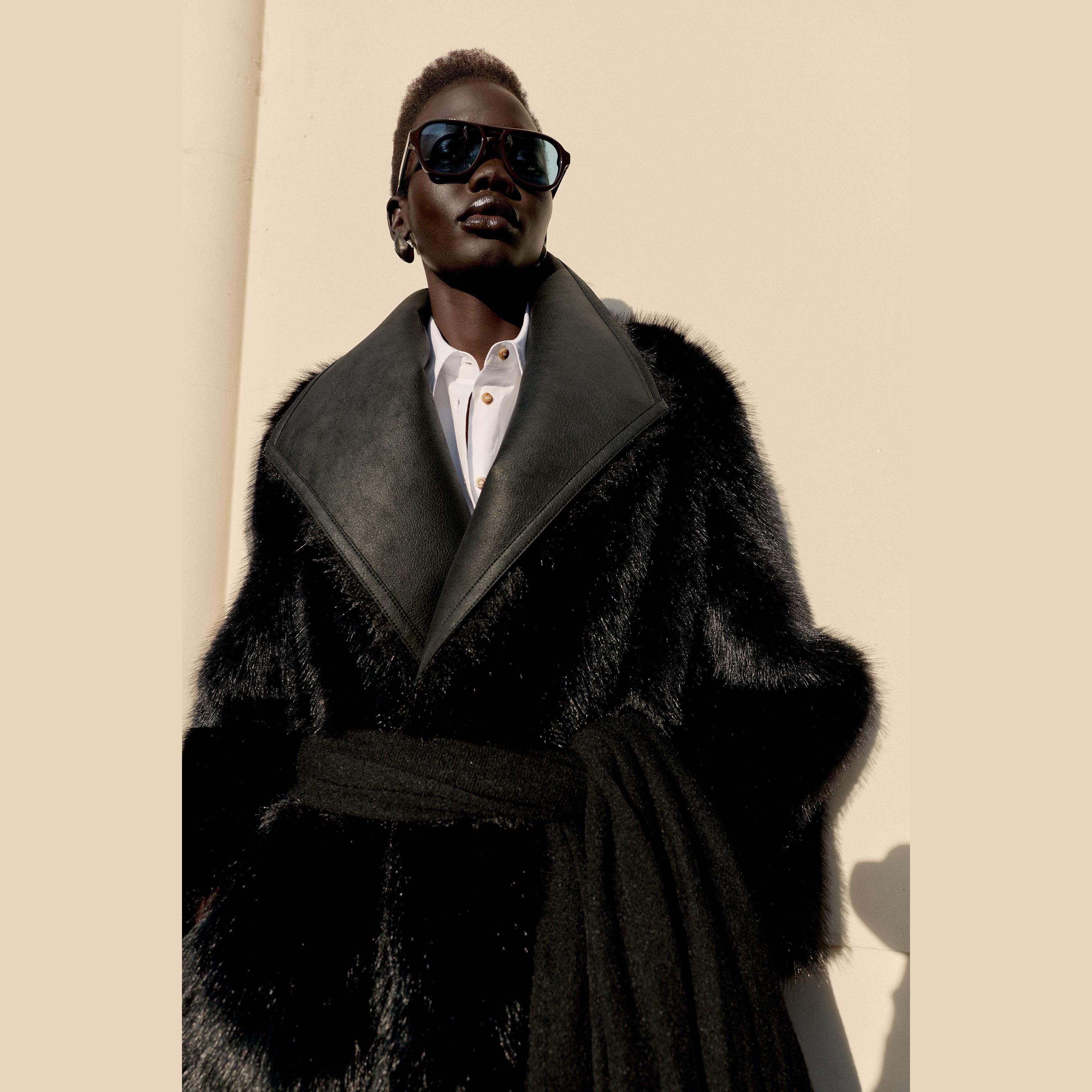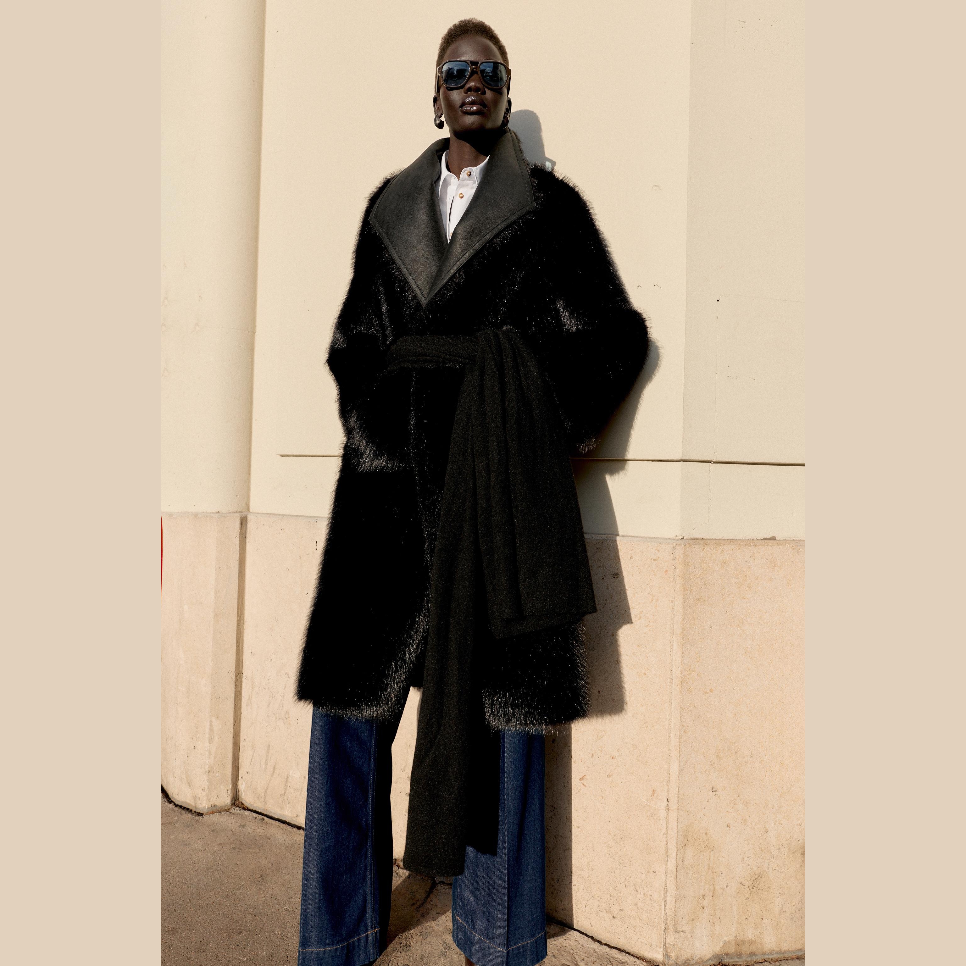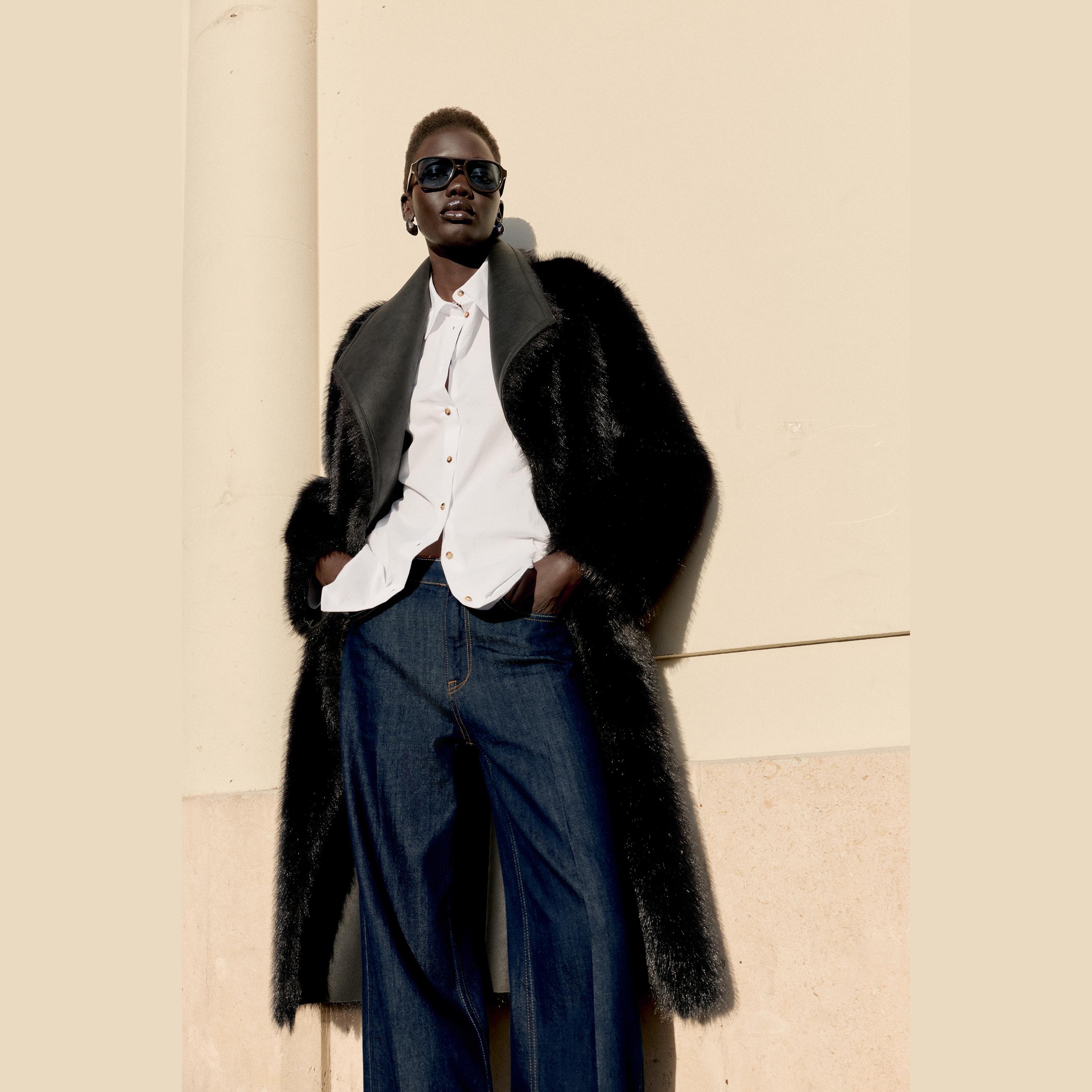 - التصميم: معطف مزدوج الوجه (Reversible Double-Faced Faux Fur Coat)