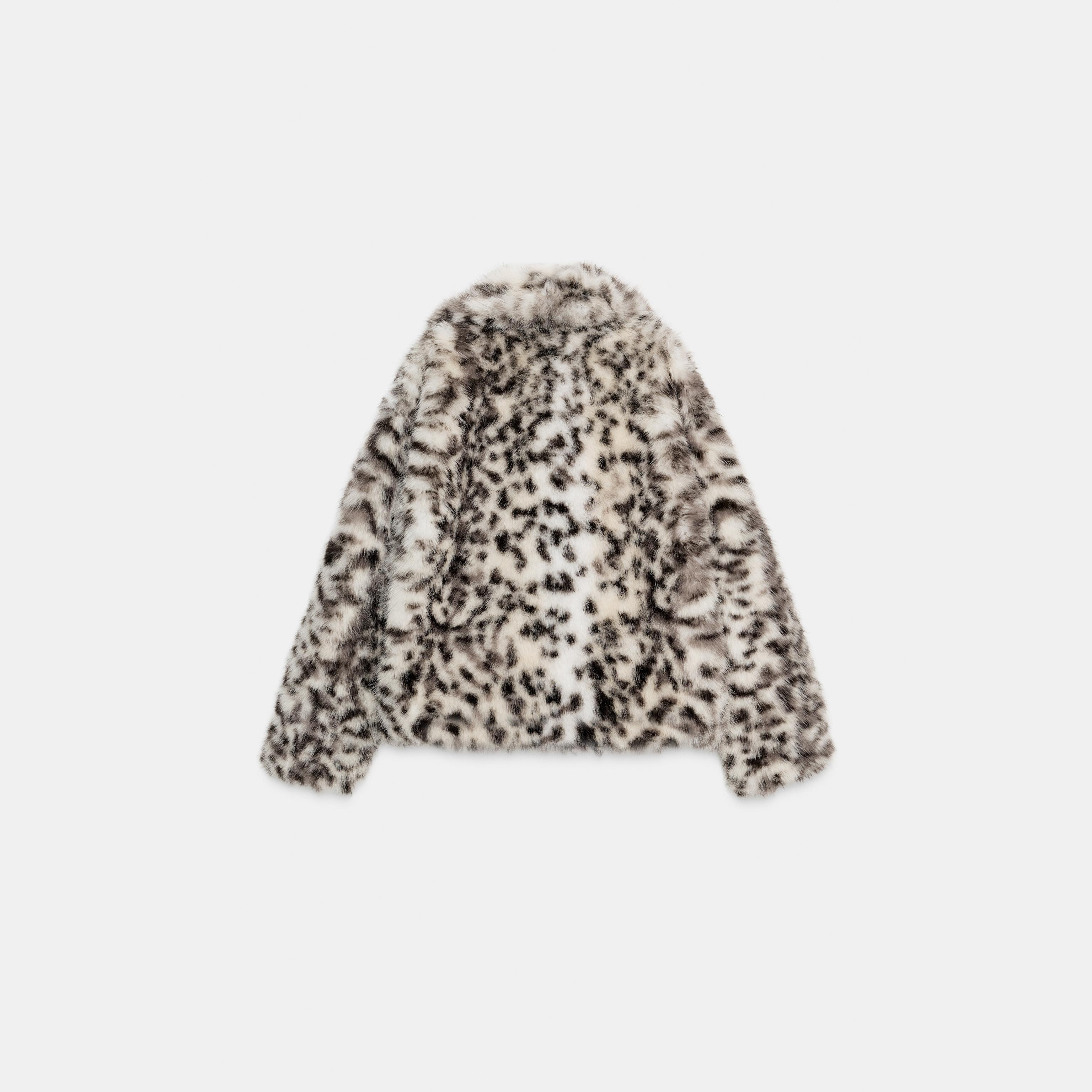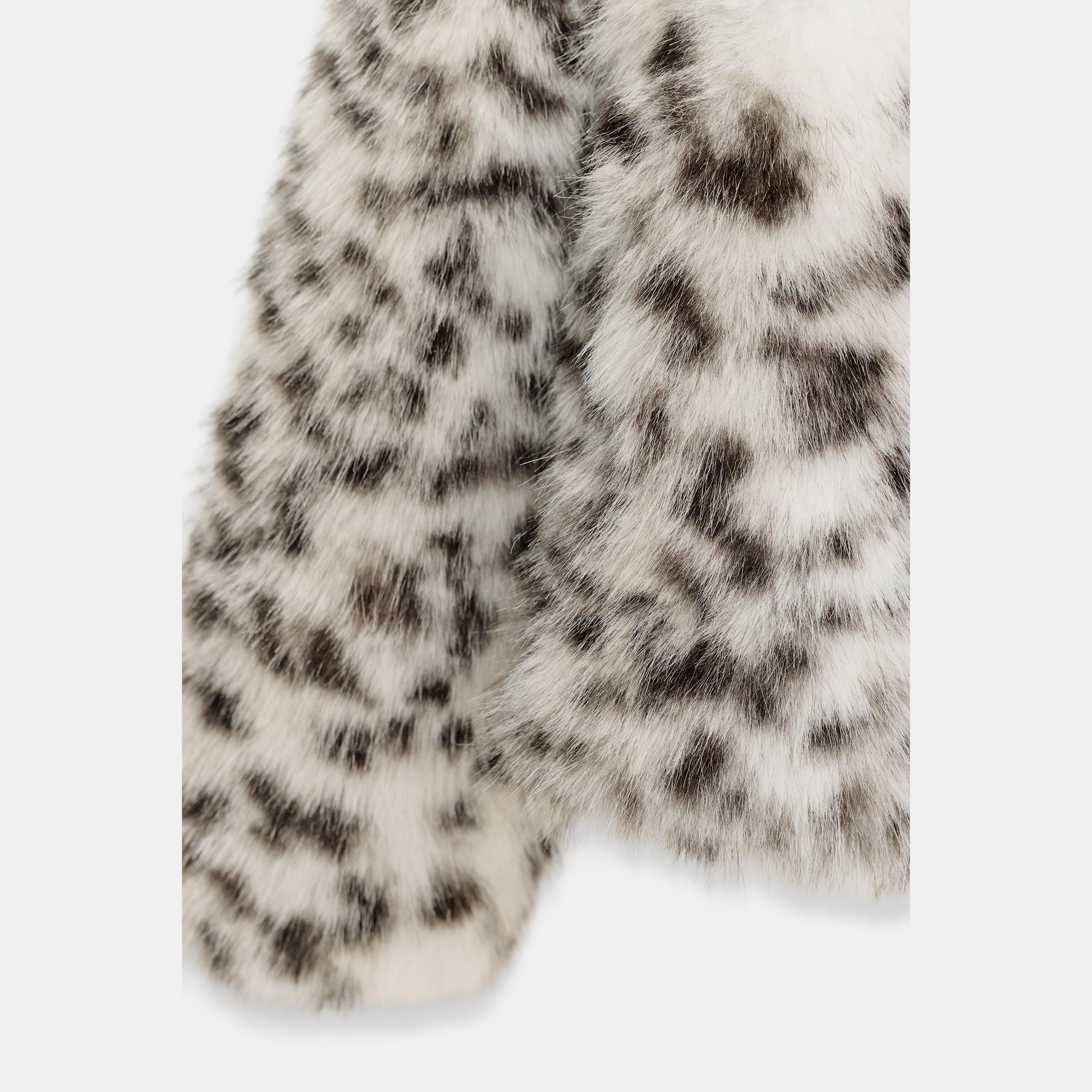 معطف نسائي قصير – طبعة حيوانية (ليوبارد) – Leopard، من الفرو الصناعي (Animal Print Faux Fur Short Coat – ZW Collection)