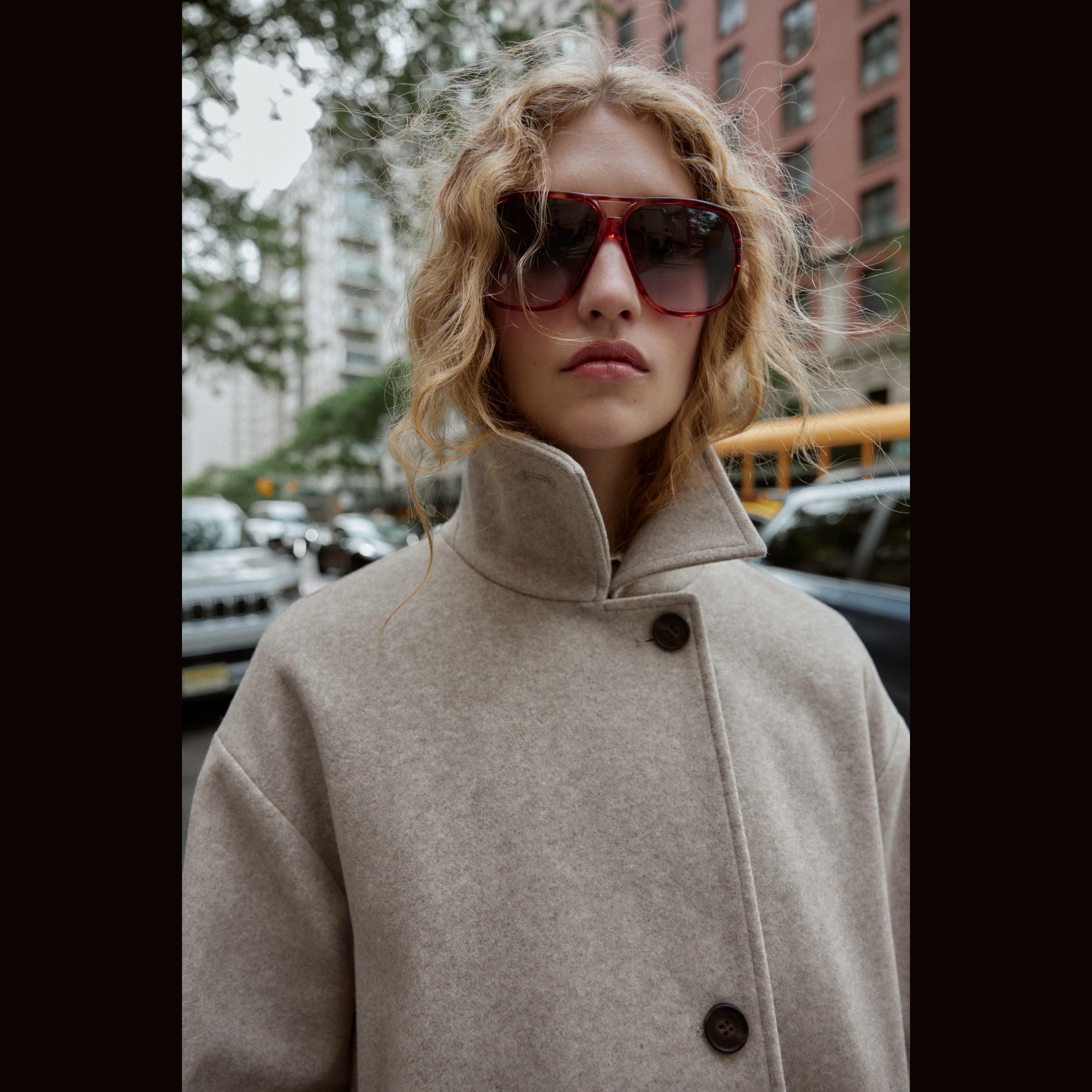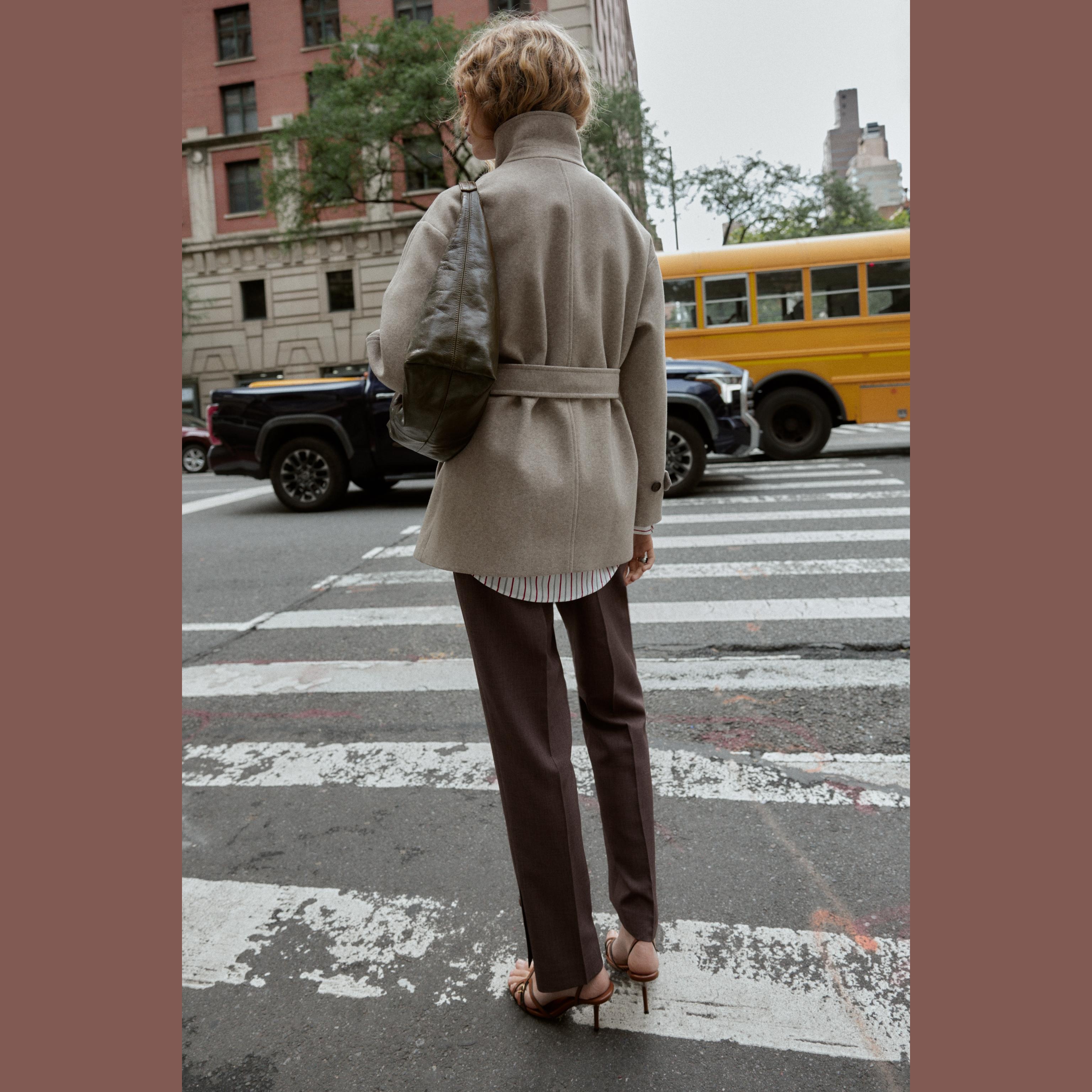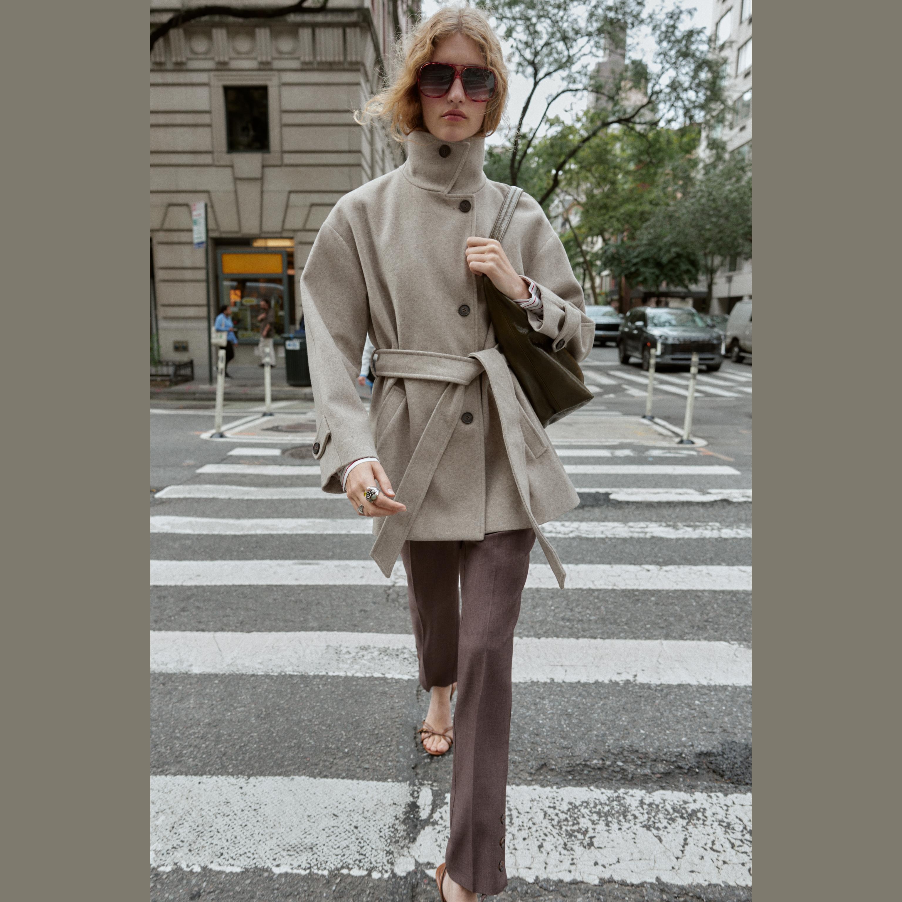 - التصميم: معطف بياقة مزدوجة الوضع (Soft Double-Position Collar Coat)