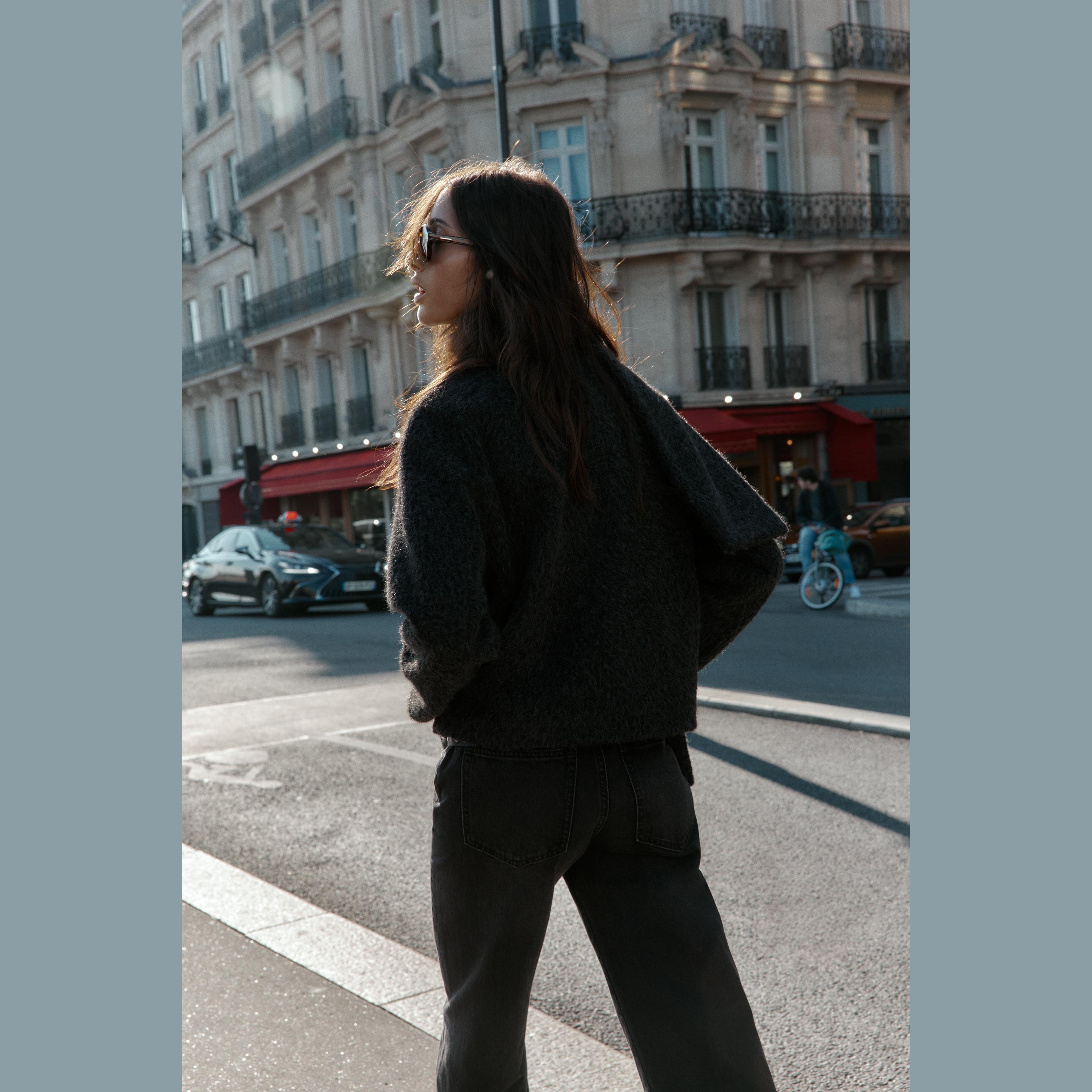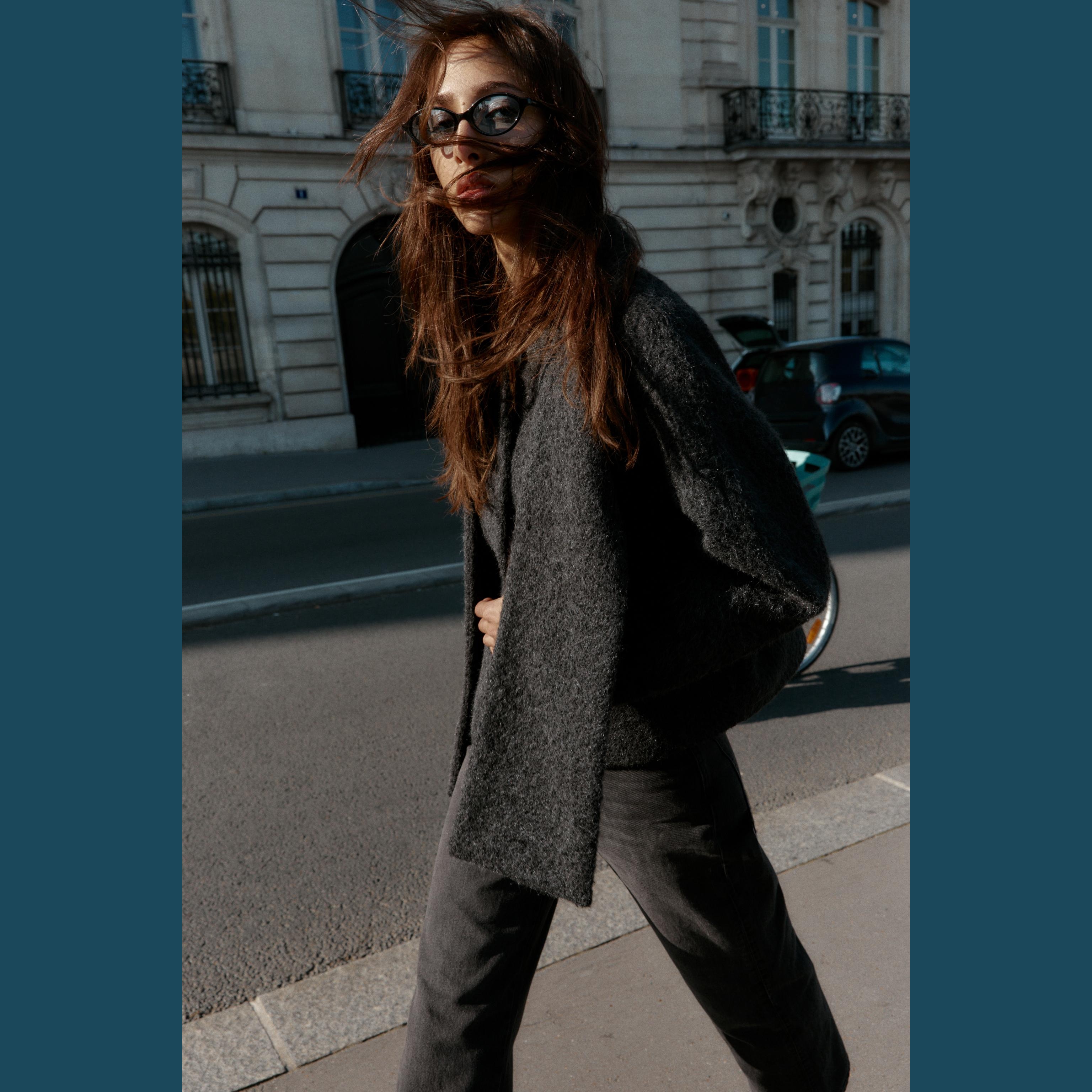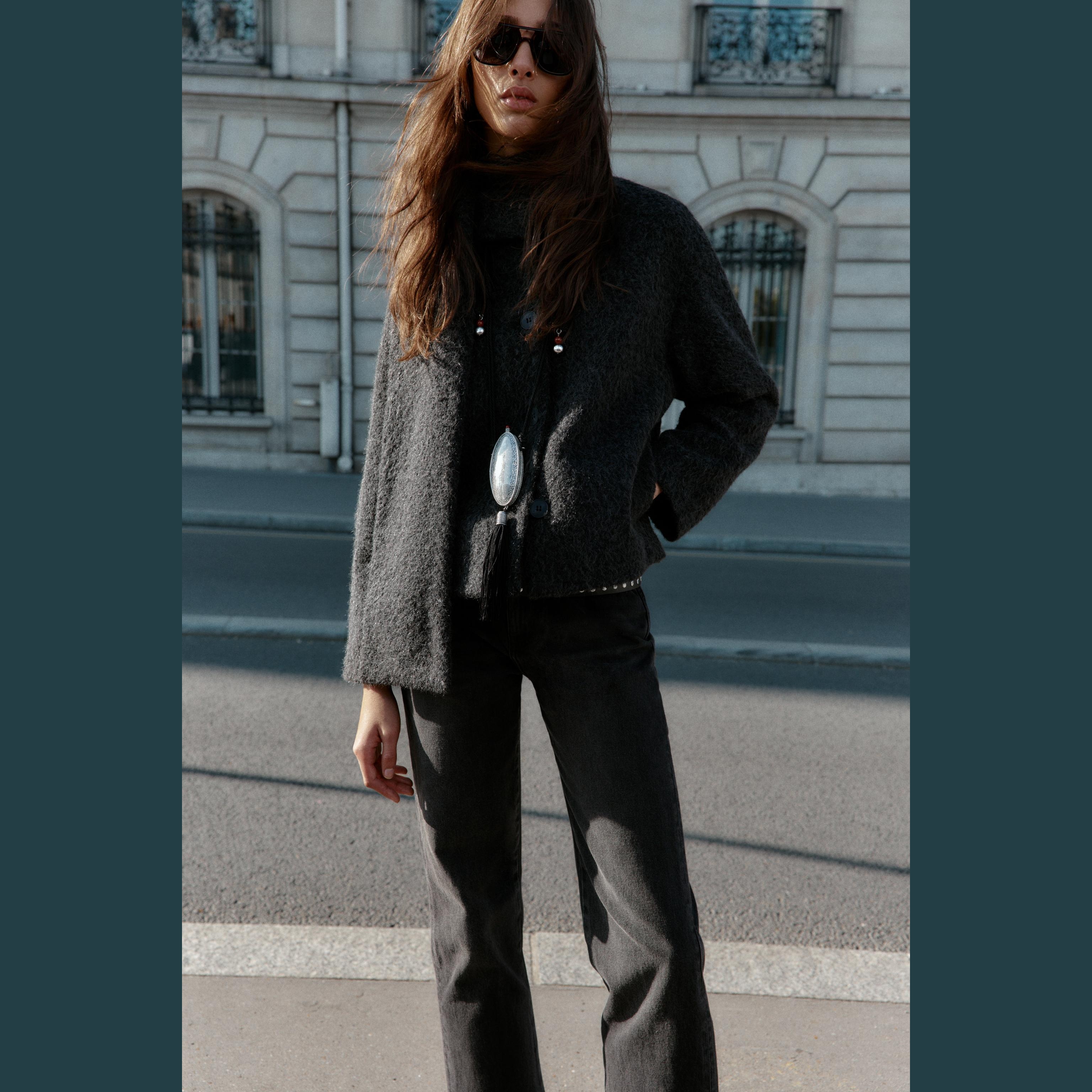 معطف قصير أنيق بلون رمادي داكن حيادي، مصنوع من خامة البوكليه الناعمة يمنح مظهرًا عصريًا ودفئًا في الارتداء. يتميز بياقة مستديرة وأكمام طويلة، مع وشاح قابل للفصل مثبت بأزرار مخفية، وإغلاق أمامي بالأزرار. تصميم مثالي للإطلالات اليومية أو الرسمية في المواسم الباردة.