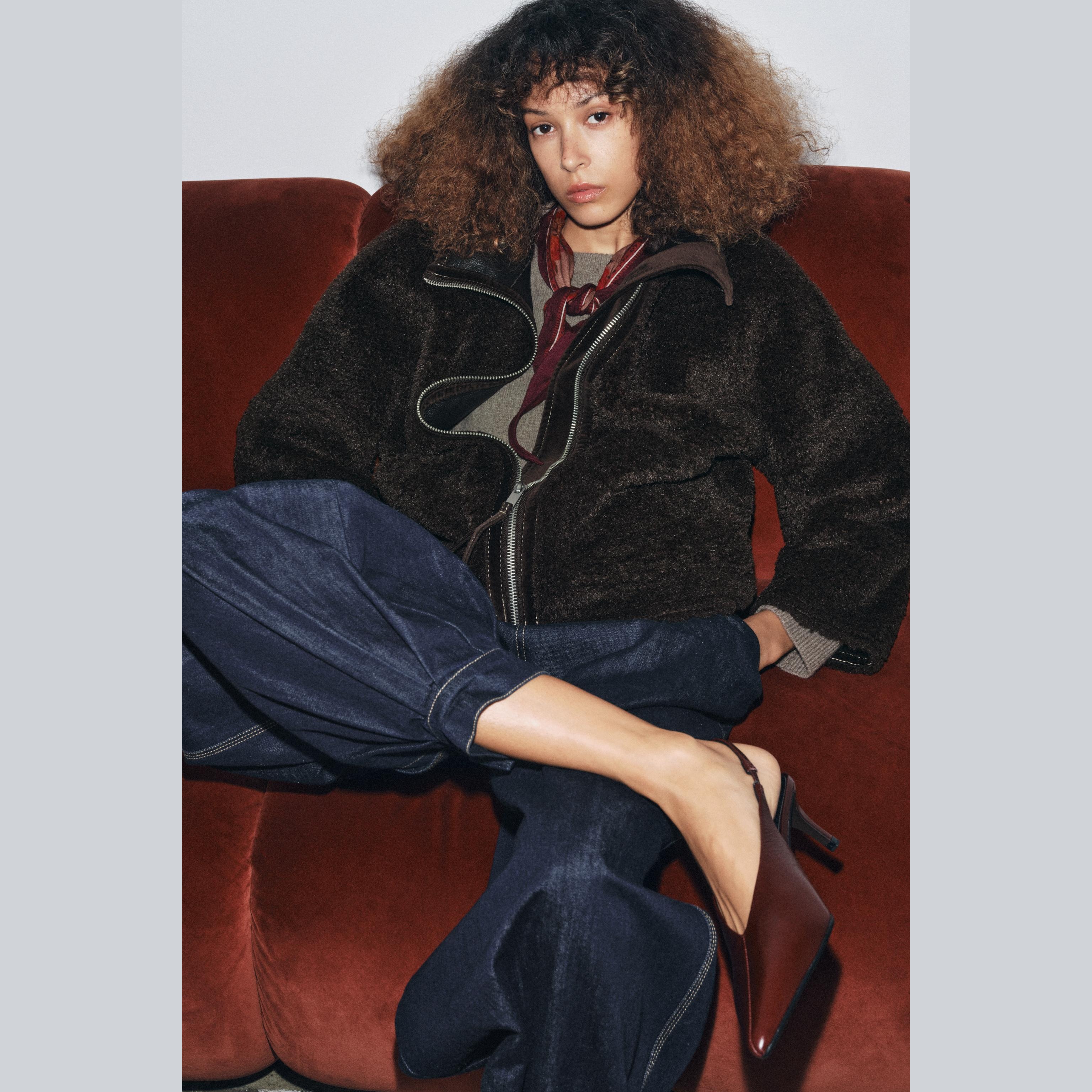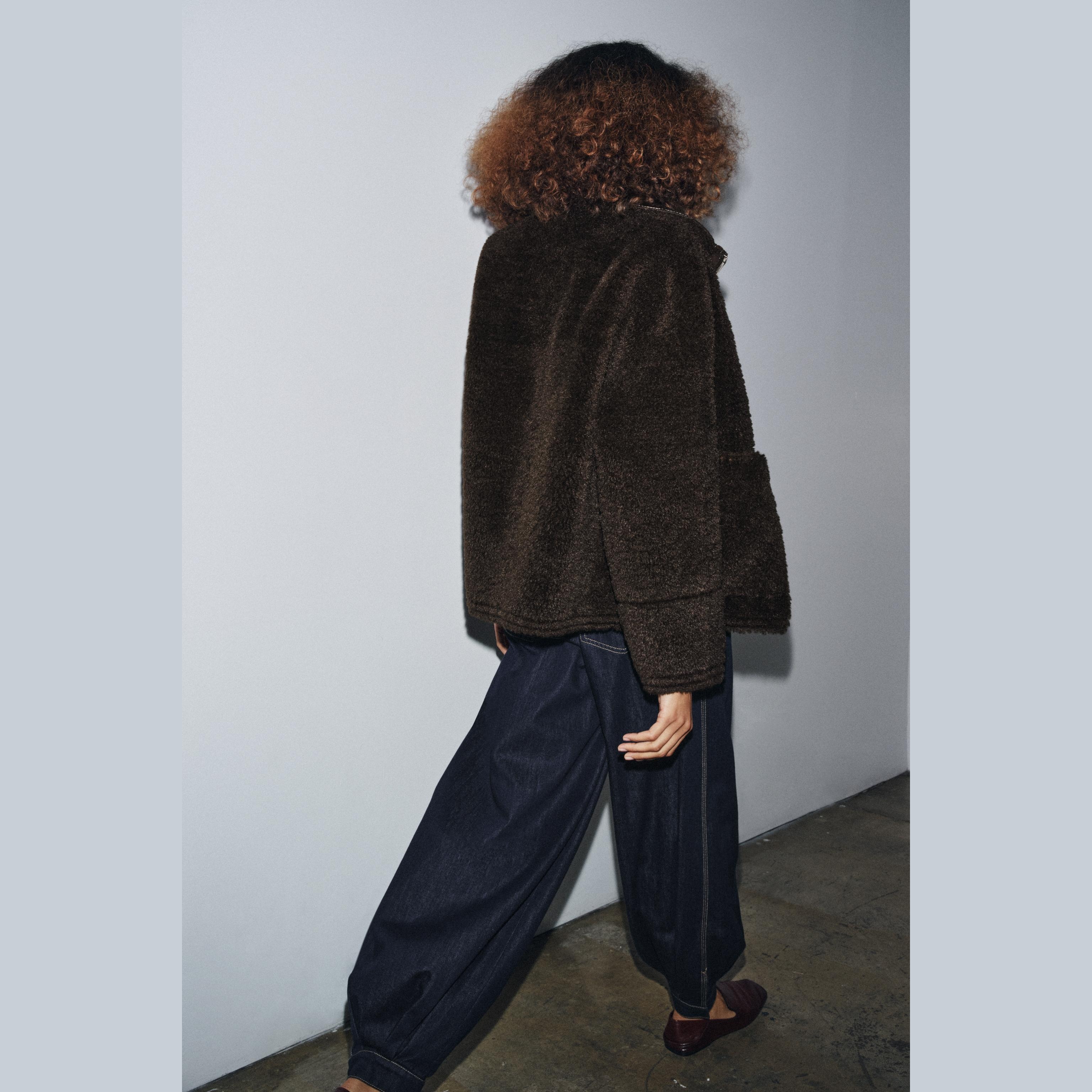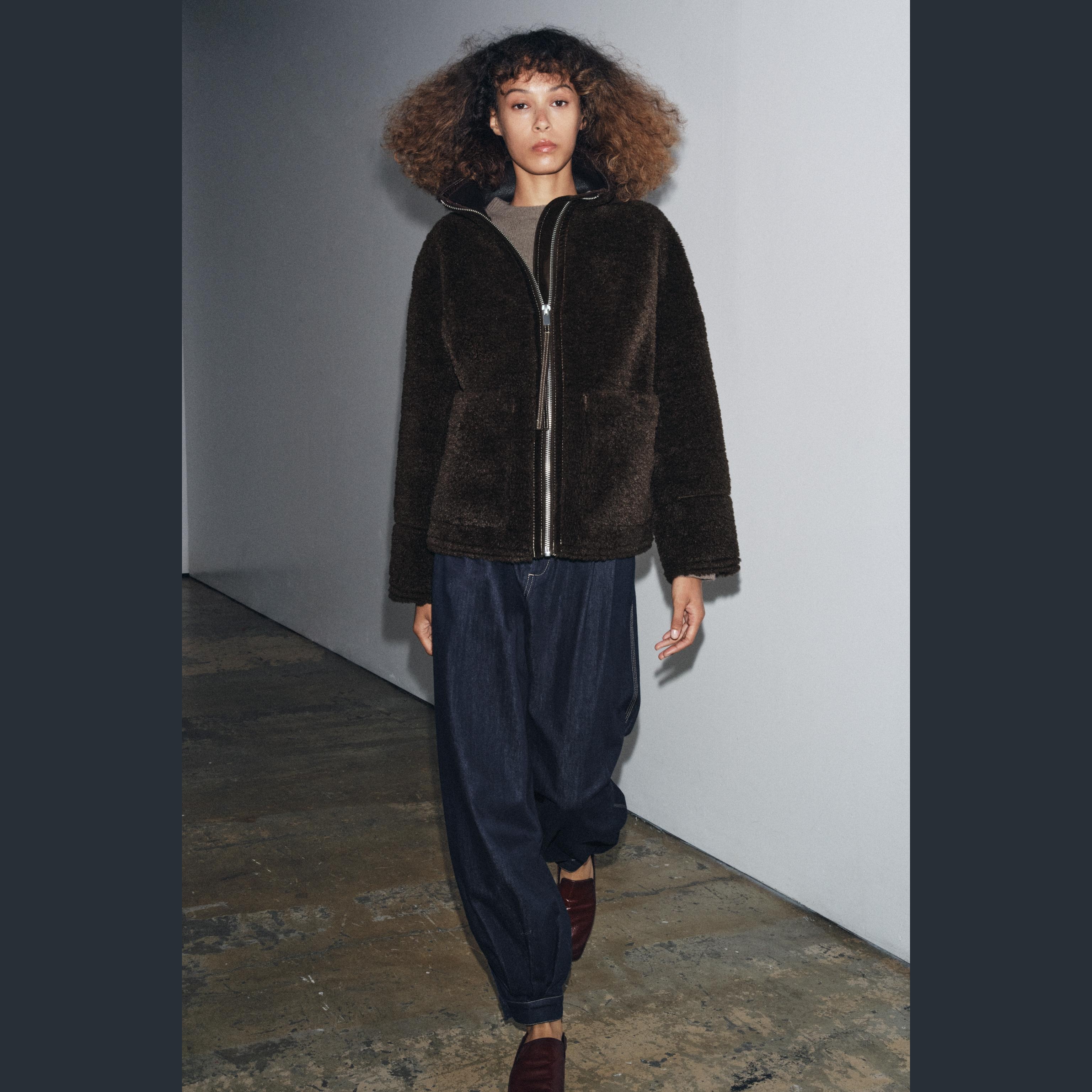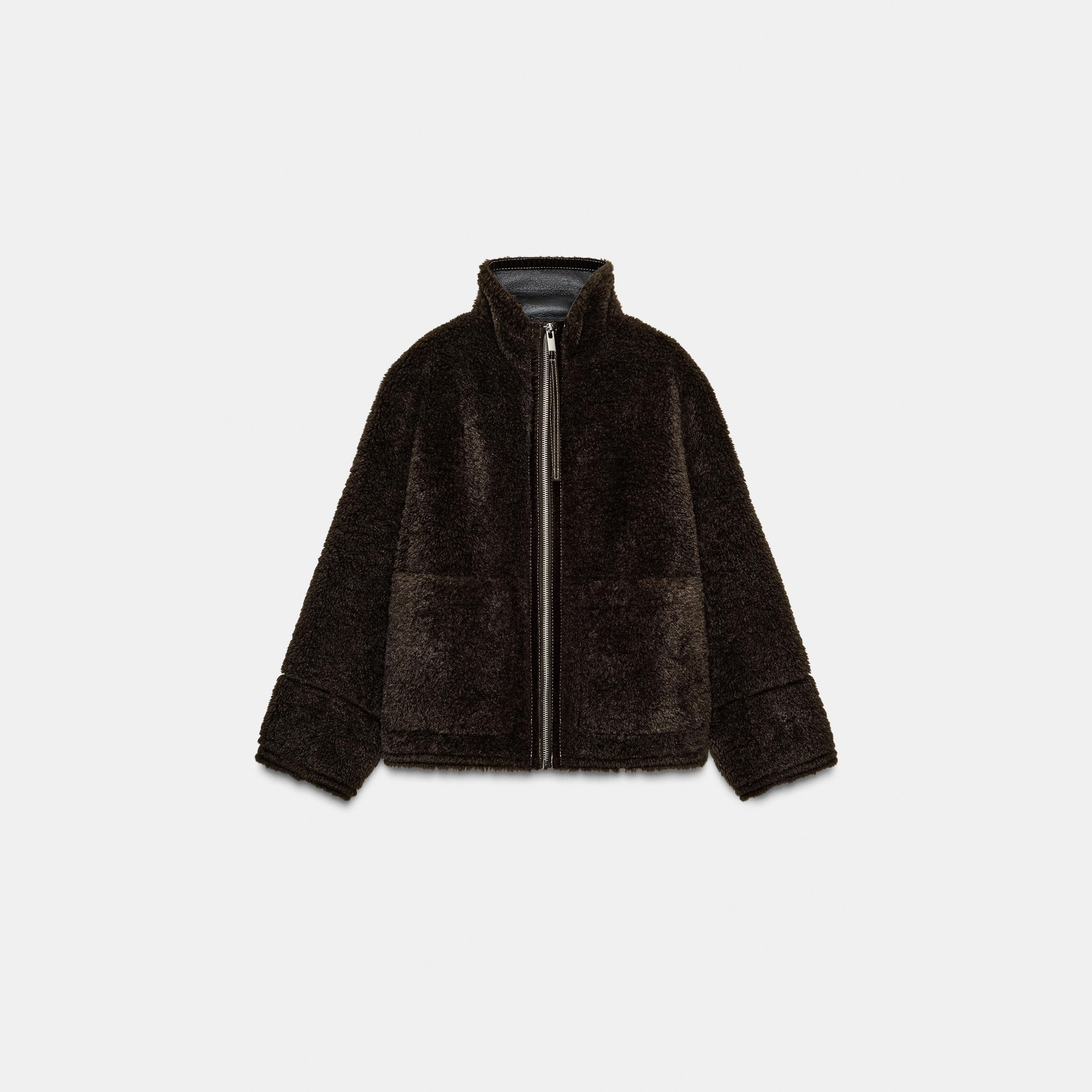 - التصميم: جاكيت قصير مزدوج الوجه (Double-Faced Faux Shearling Jacket)