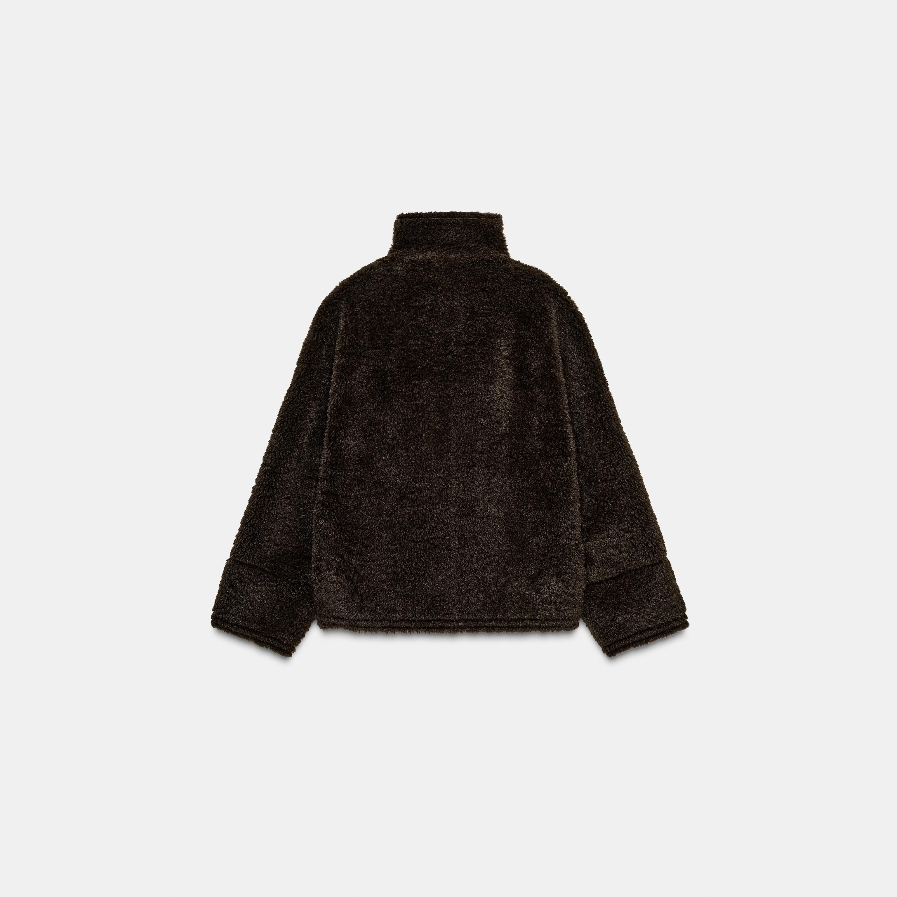جاكيت أنيق قصير بلون بني داكن حيادي، مصنوع من خامة الشيرلينغ الصناعي المزدوج الوجه يمنح مظهرًا عصريًا ودفئًا في الارتداء. يتميز بياقة عالية وأكمام طويلة، مع جيوب أمامية عملية وإغلاق أمامي بسحاب معدني. تصميم مثالي للإطلالات اليومية الكاجوال في المواسم الباردة.