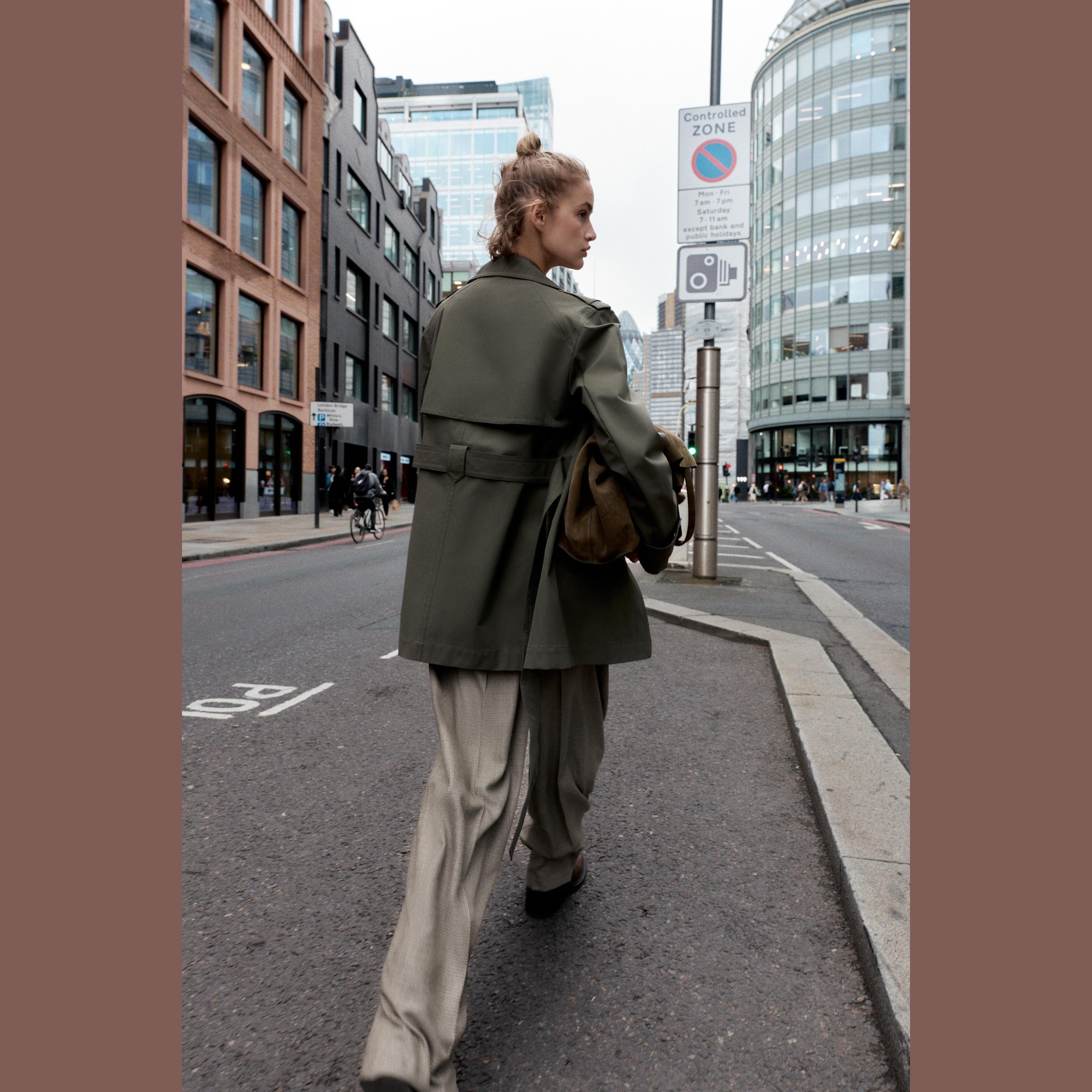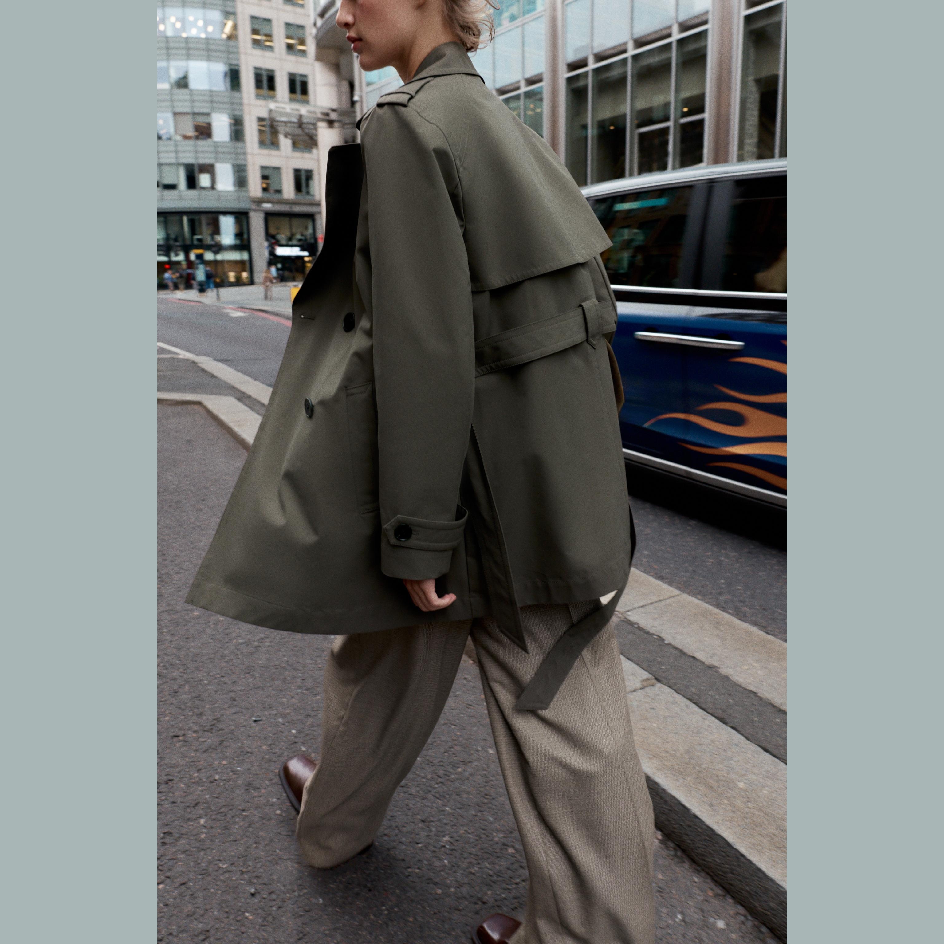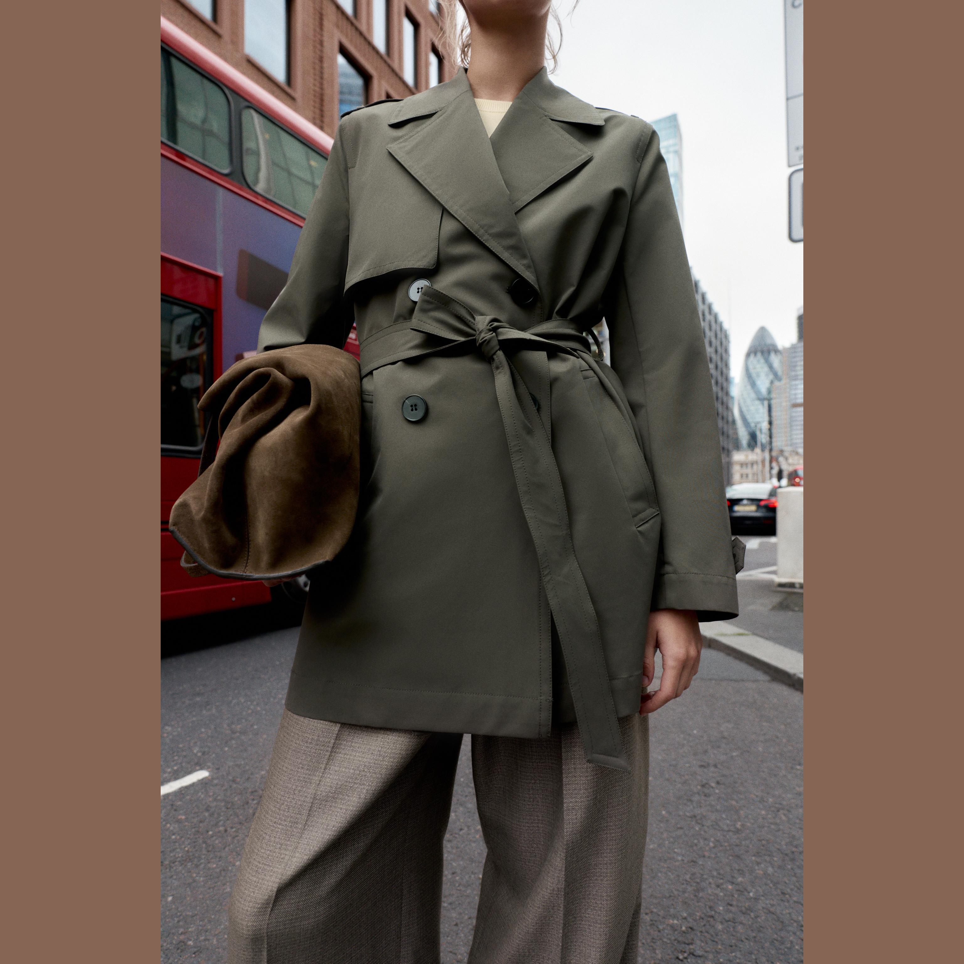 - تصميم ترنش كلاسيكي مزدوج الصدر يمنح مظهرًا أنيقًا