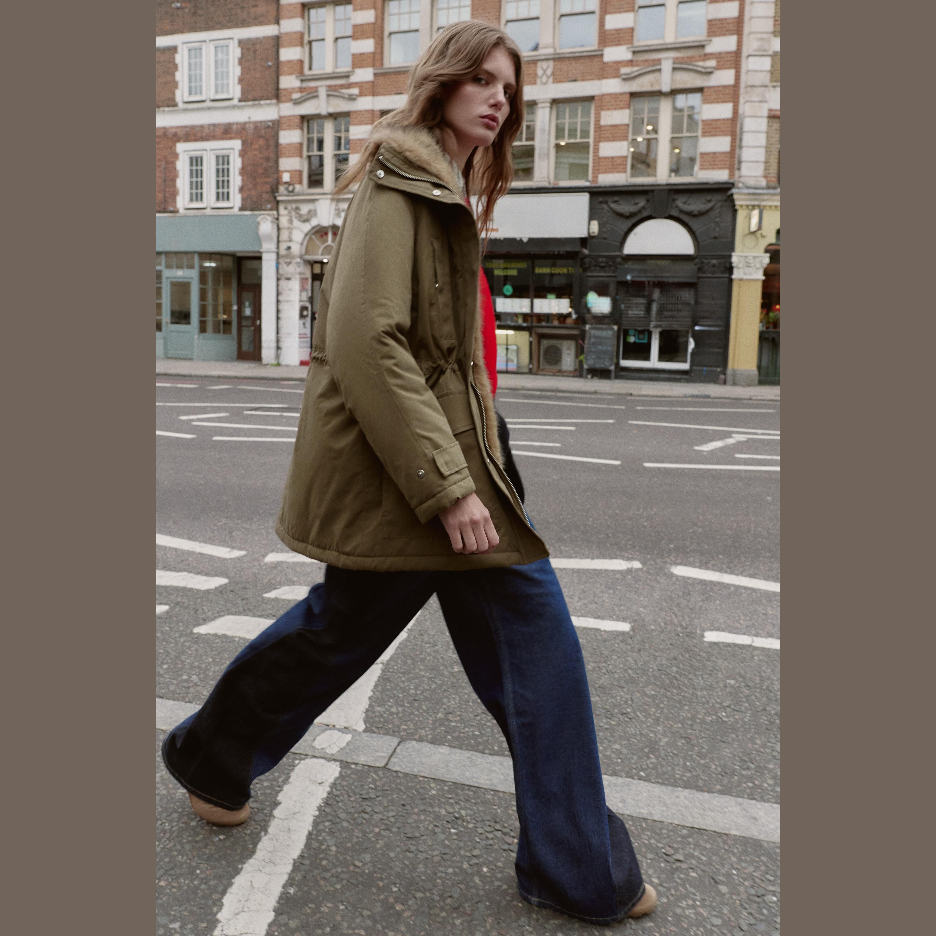 - التصميم: باركا مبطن بالفرو الصناعي (Faux Fur Lined Parka)
