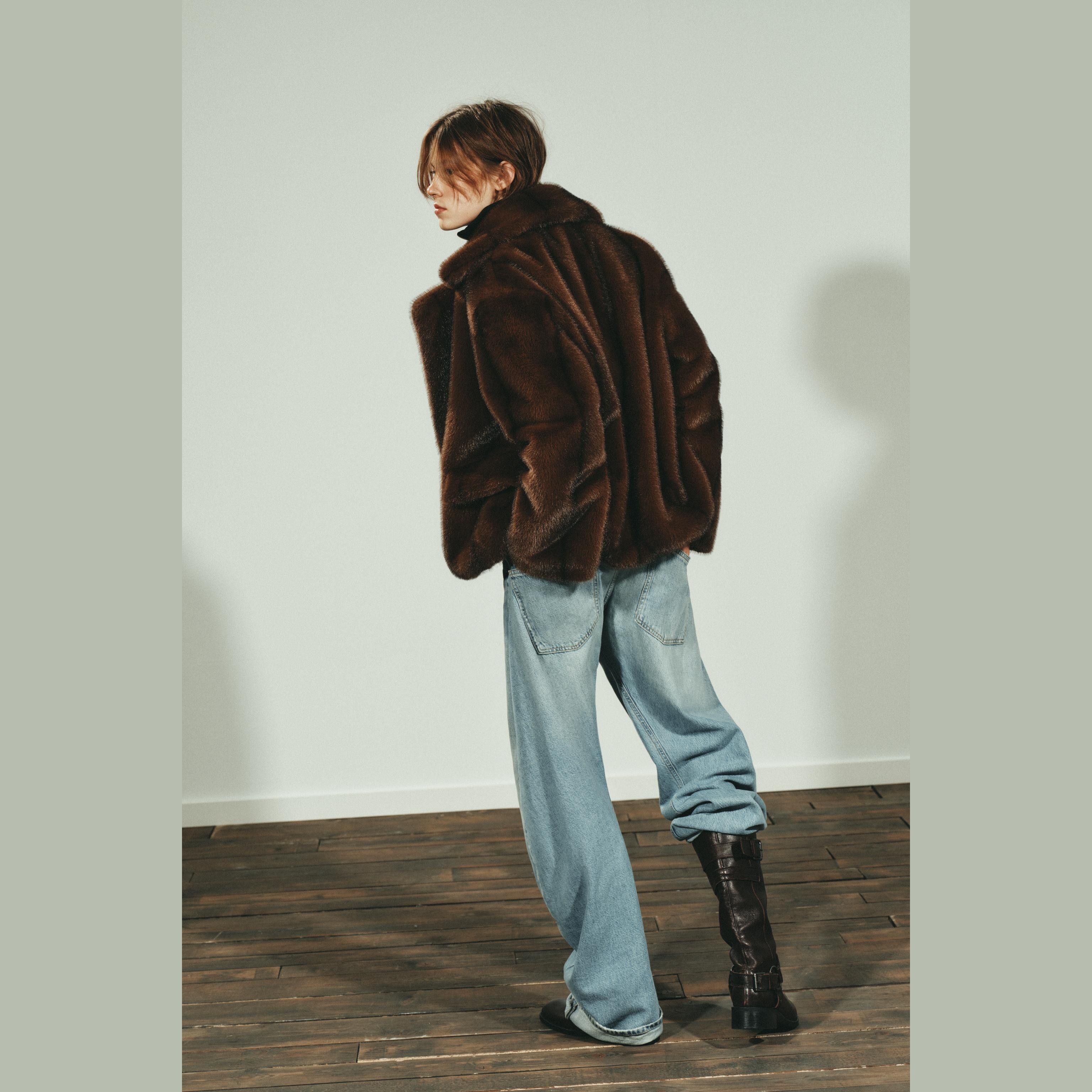 - التصميم: معطف قصير من الفرو الصناعي (Short Faux Fur Coat)