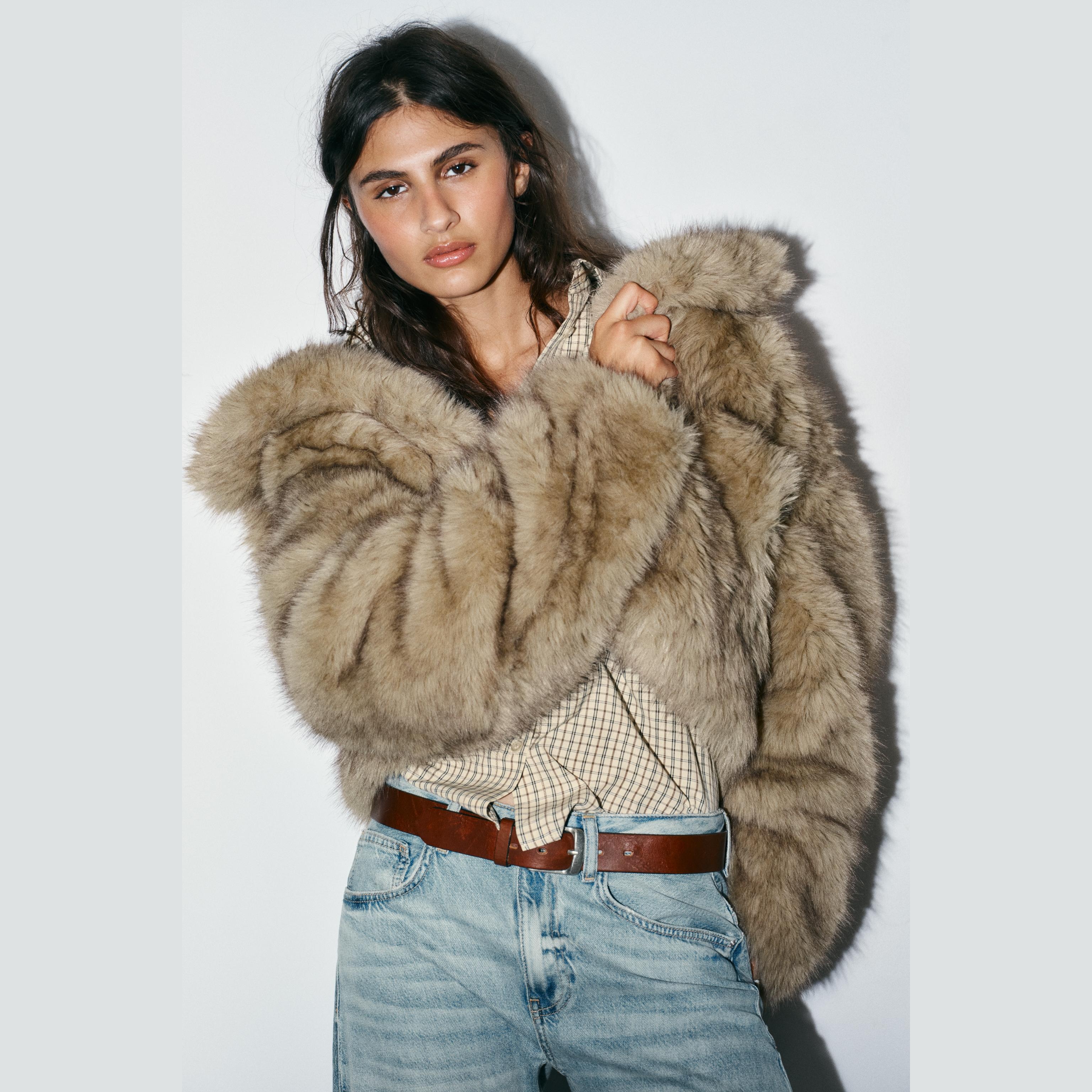 - التصميم: معطف قصير من الفرو الصناعي (Short Faux Fur Coat)