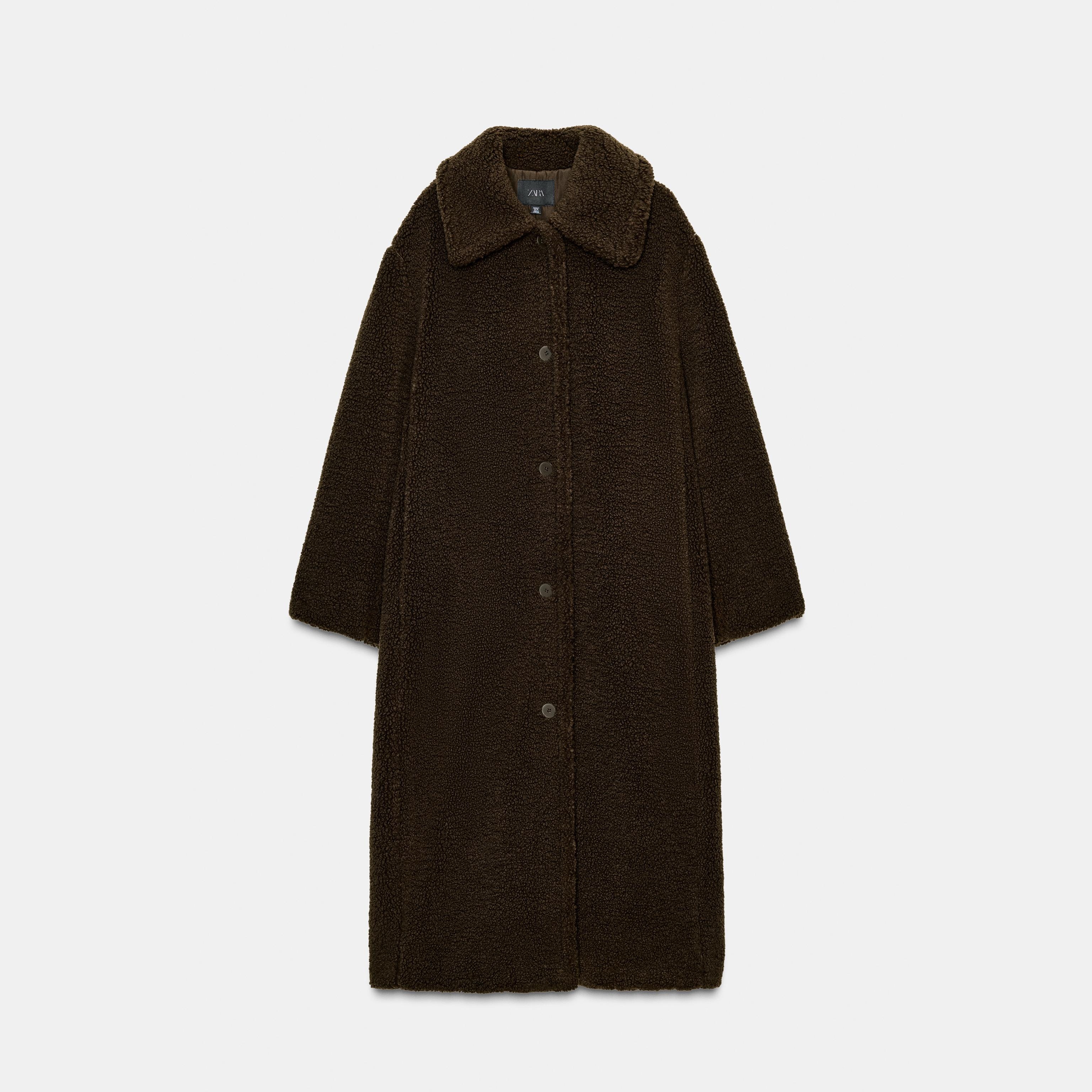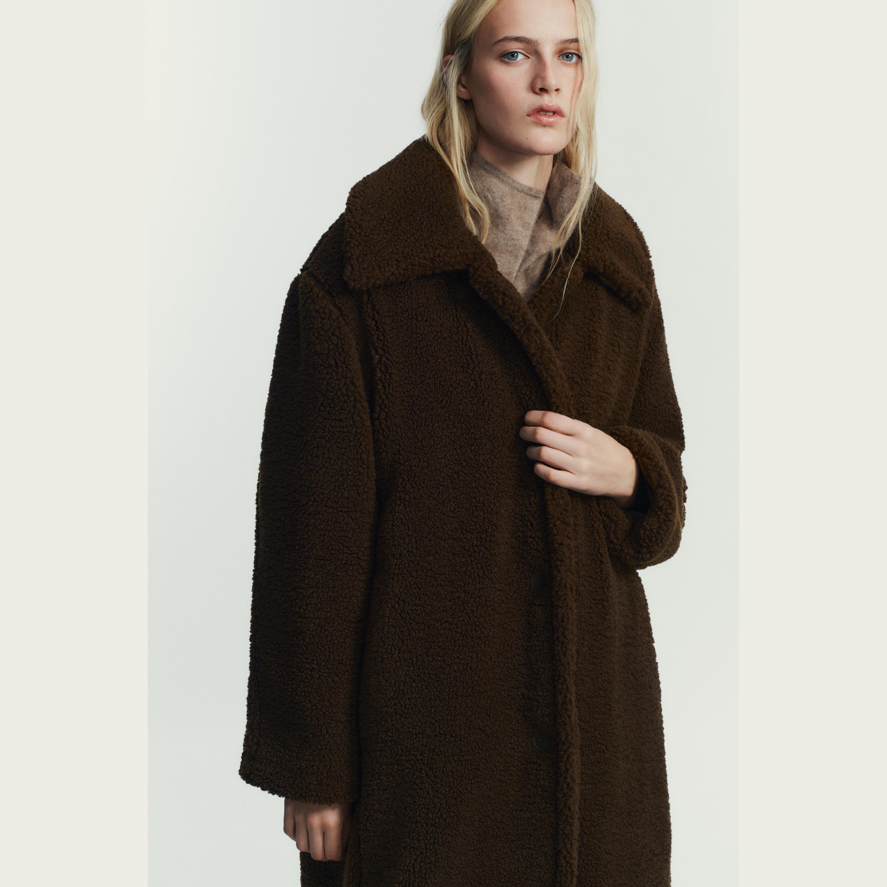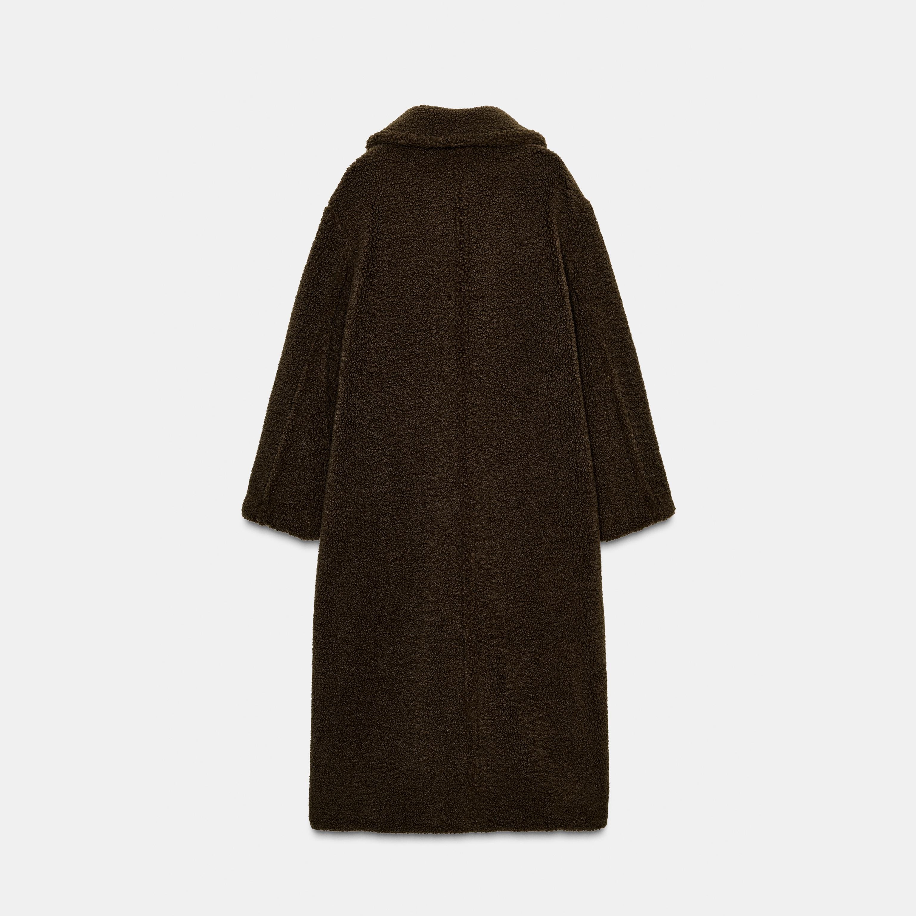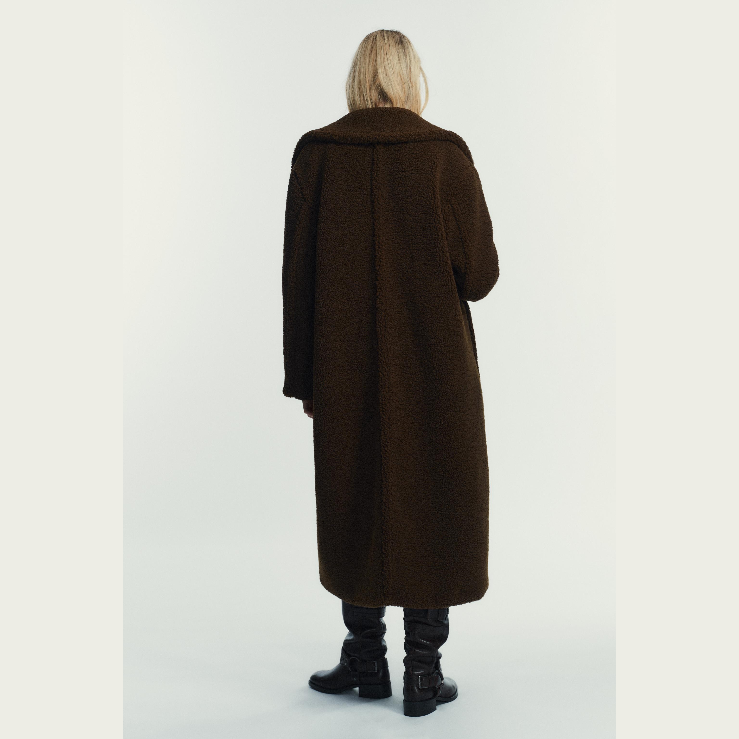 - التصميم: معطف طويل من الفرو الصناعي (Faux Shearling Coat)