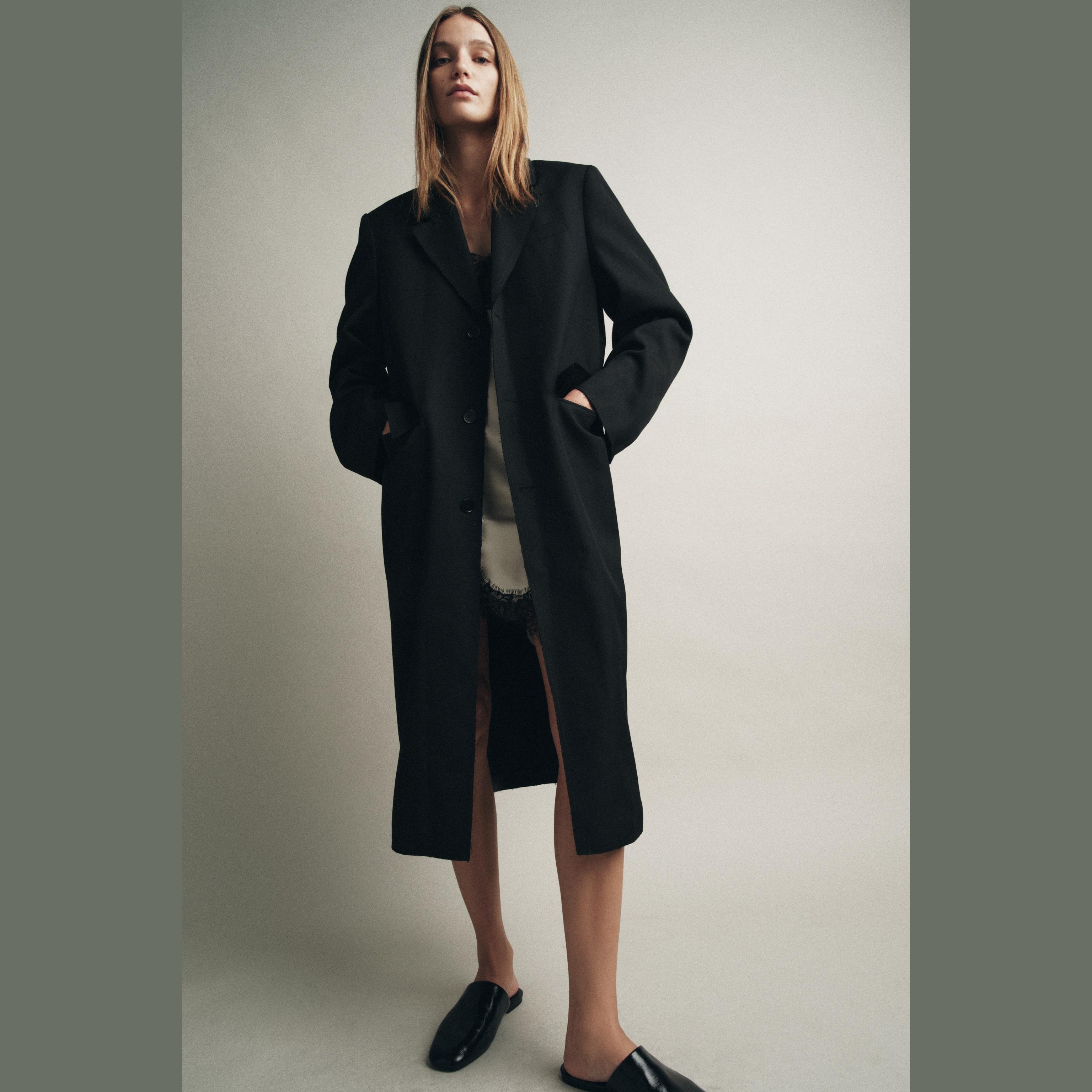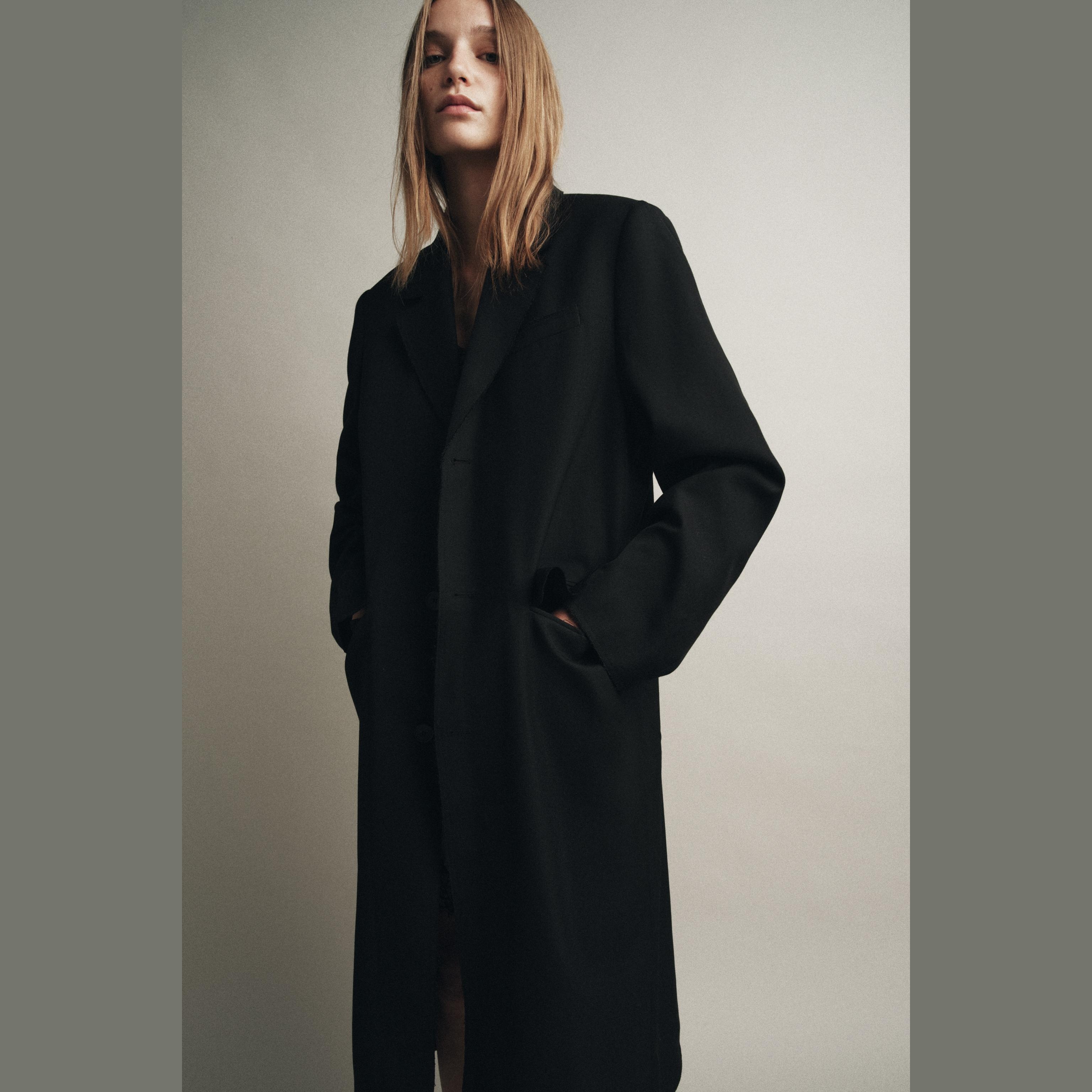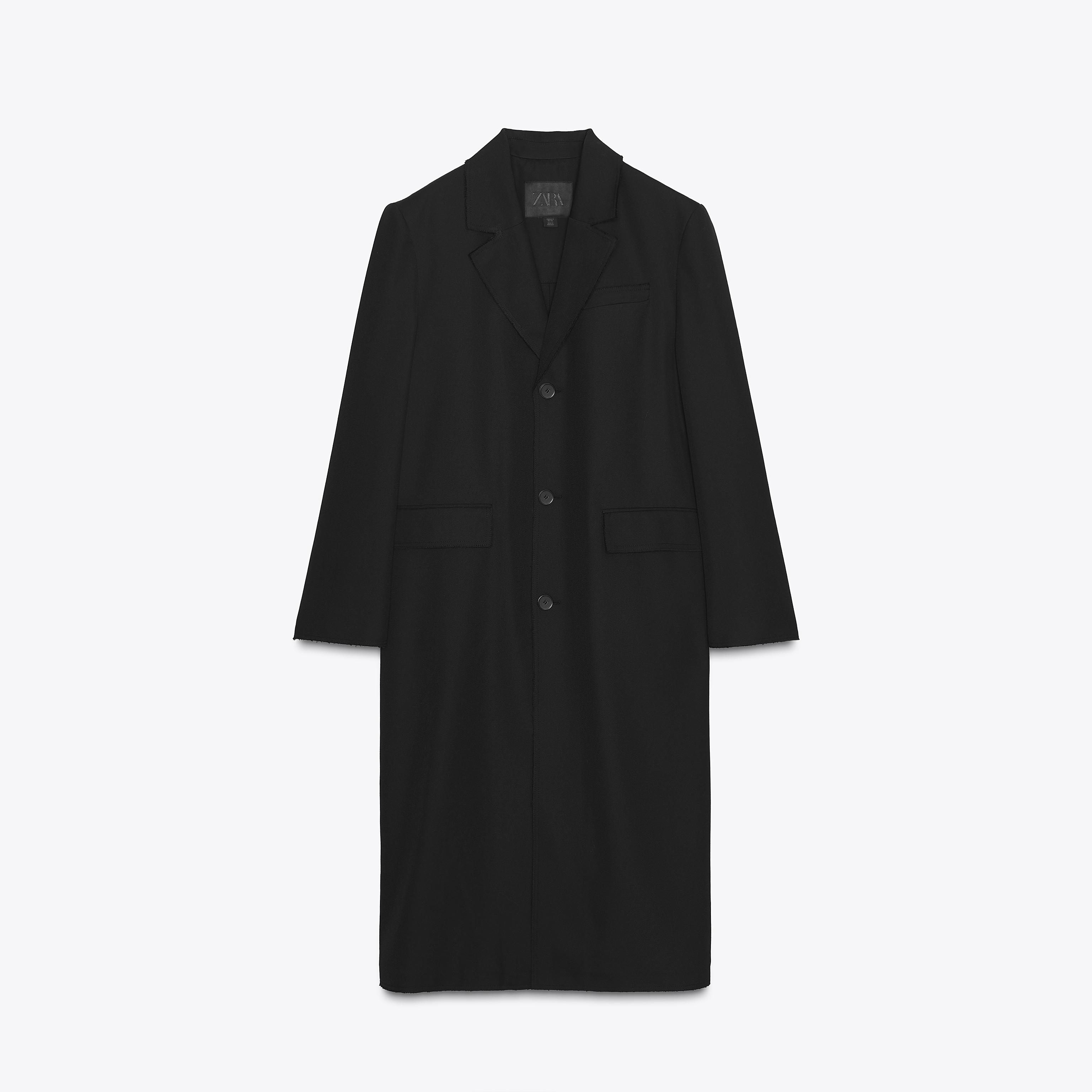 - التصميم: معطف واسع مزدوج الصدر (Oversized Frock Coat – ZW Collection)