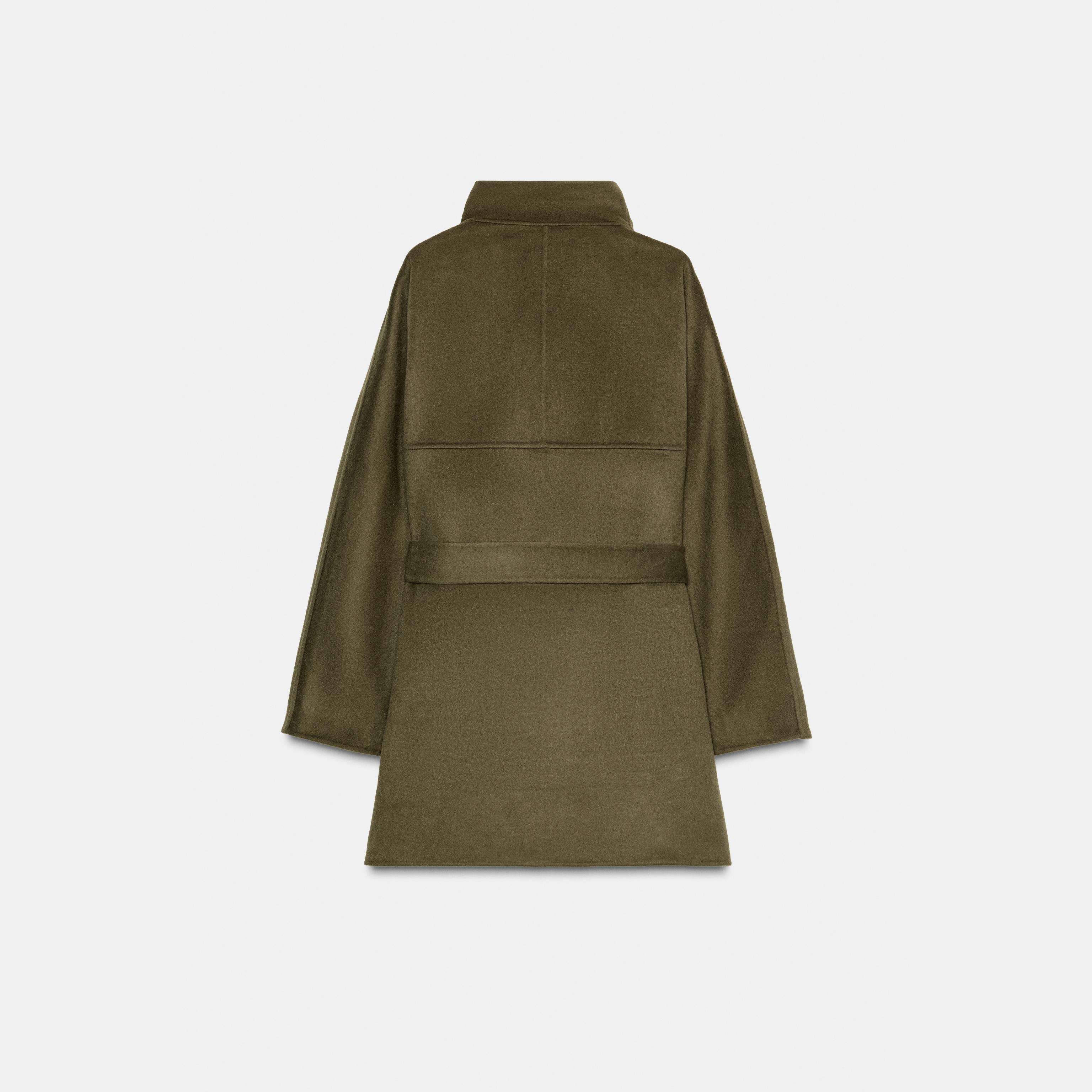 معطف نسائي طويل – لون حيادي (كاكي) – Khaki، من مزيج الصوف مع ياقة عالية (High-Neck Wool Blend Coat – ZW Collection)