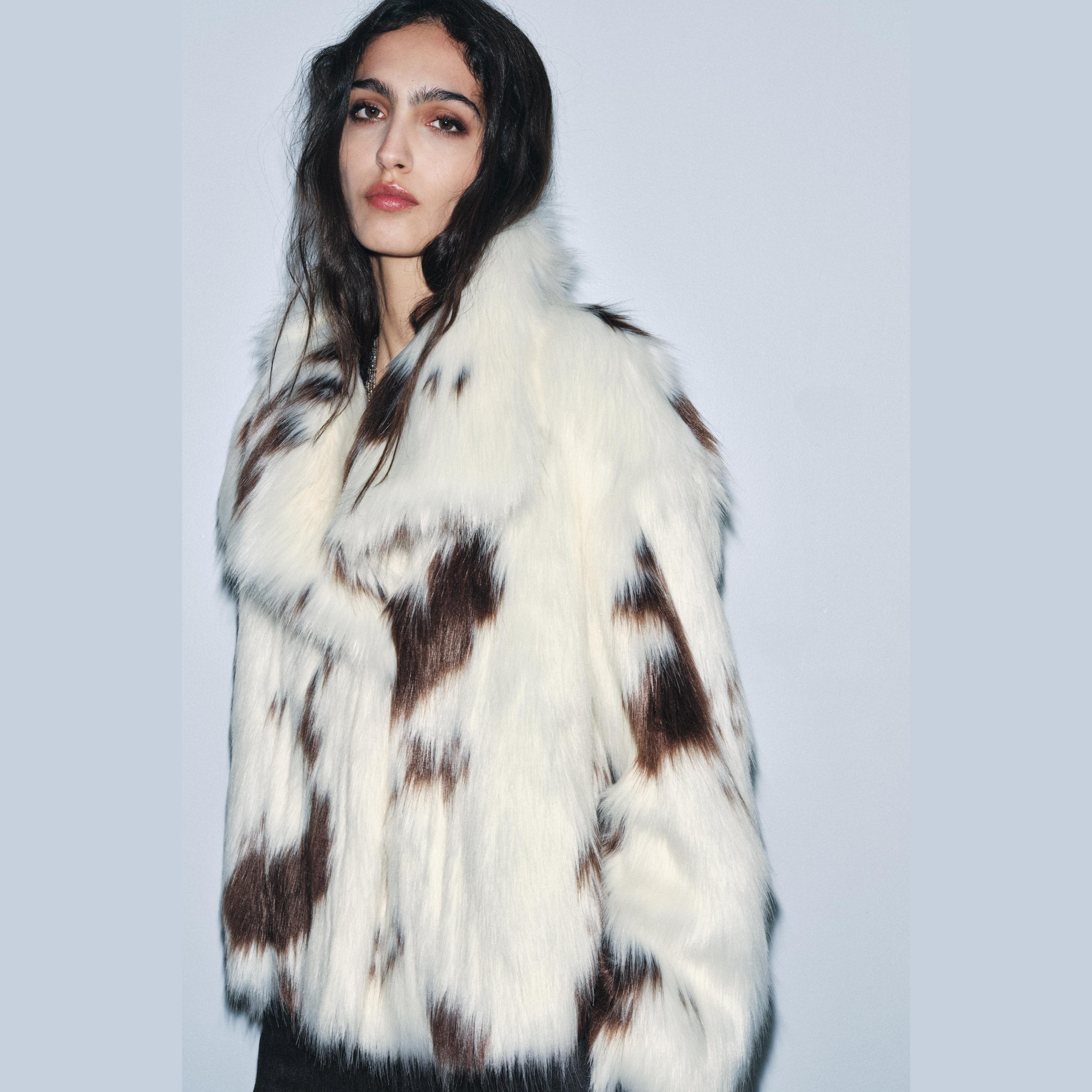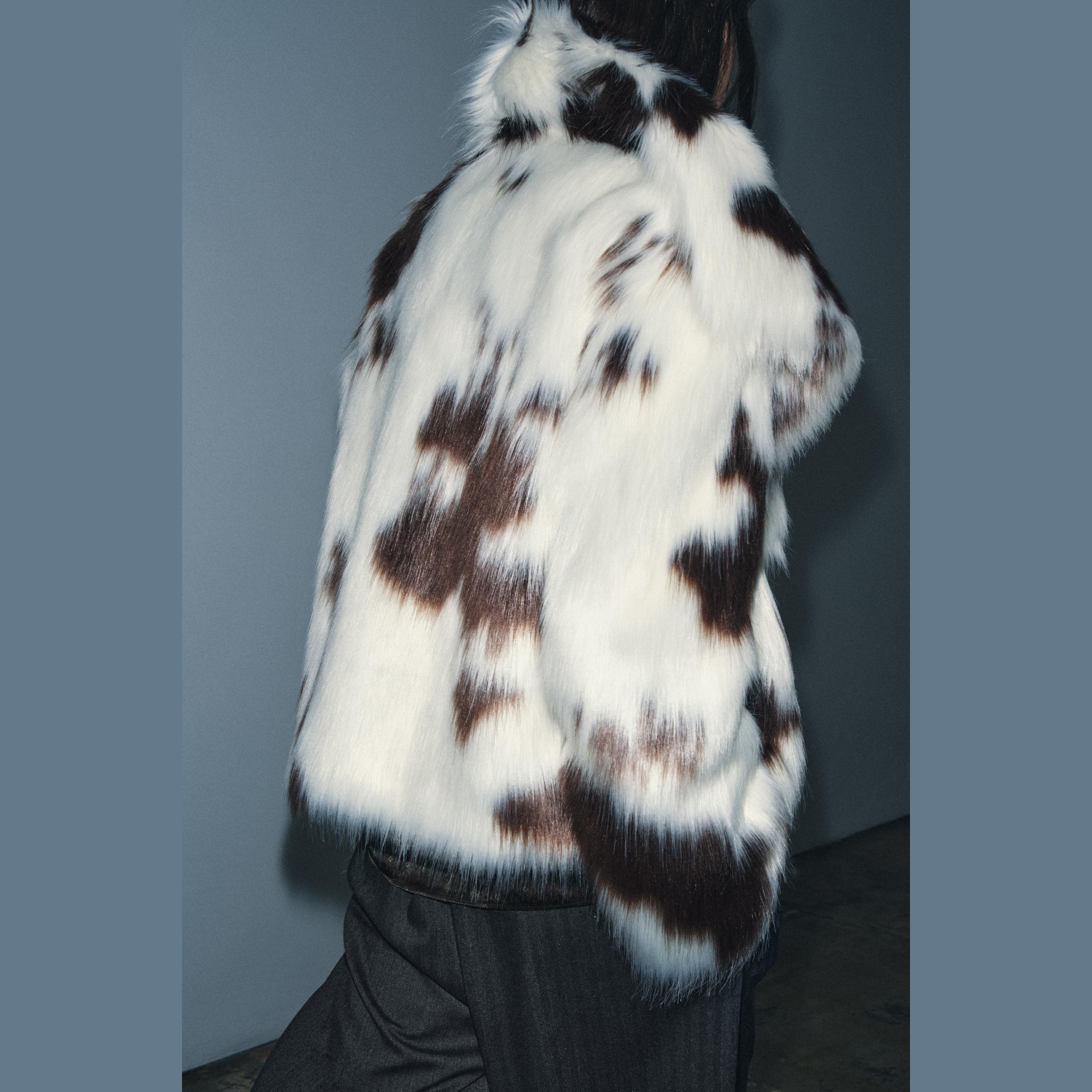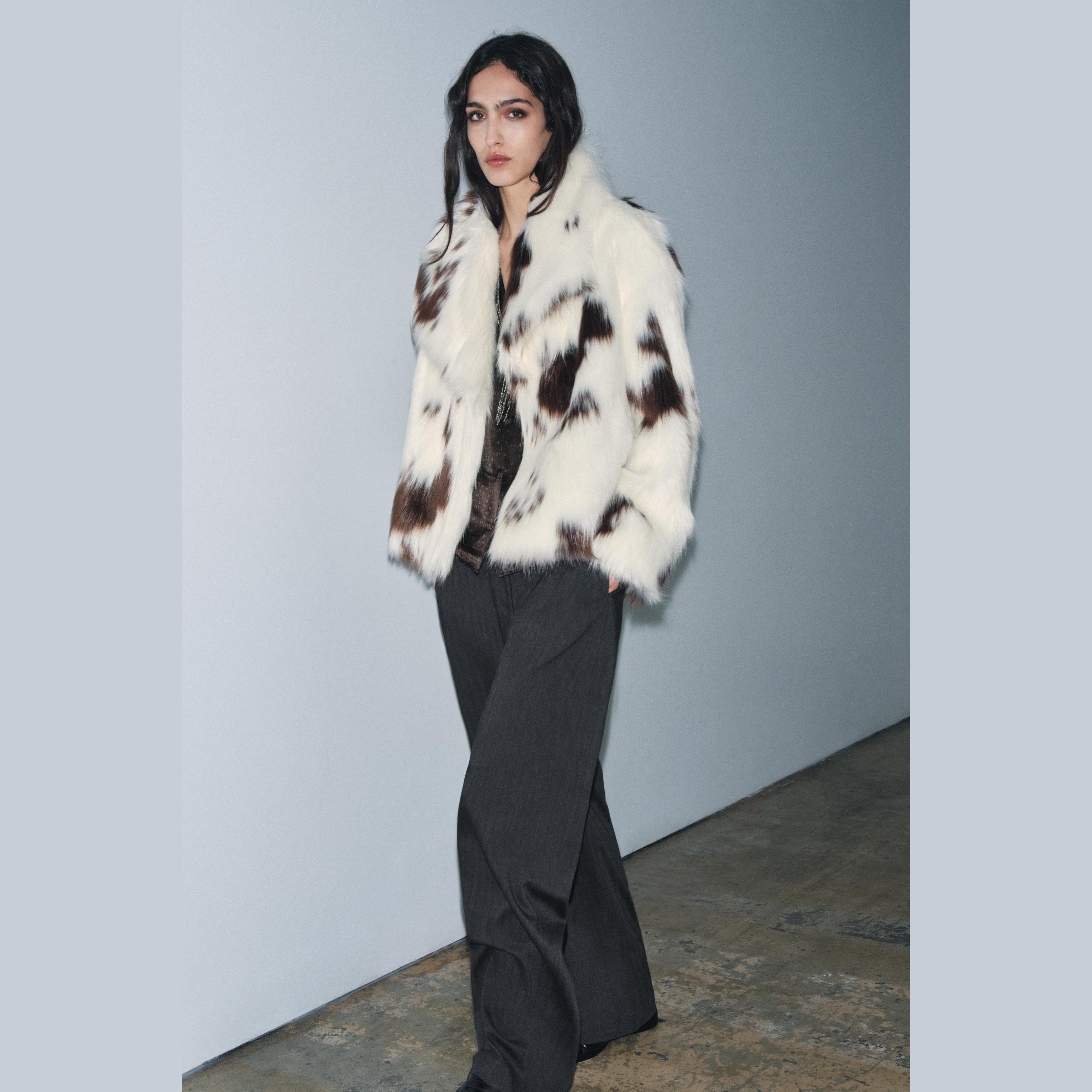 - التصميم: جاكيت قصير من الفرو الصناعي (Faux Fur Jacket – ZW Collection Limited Edition)