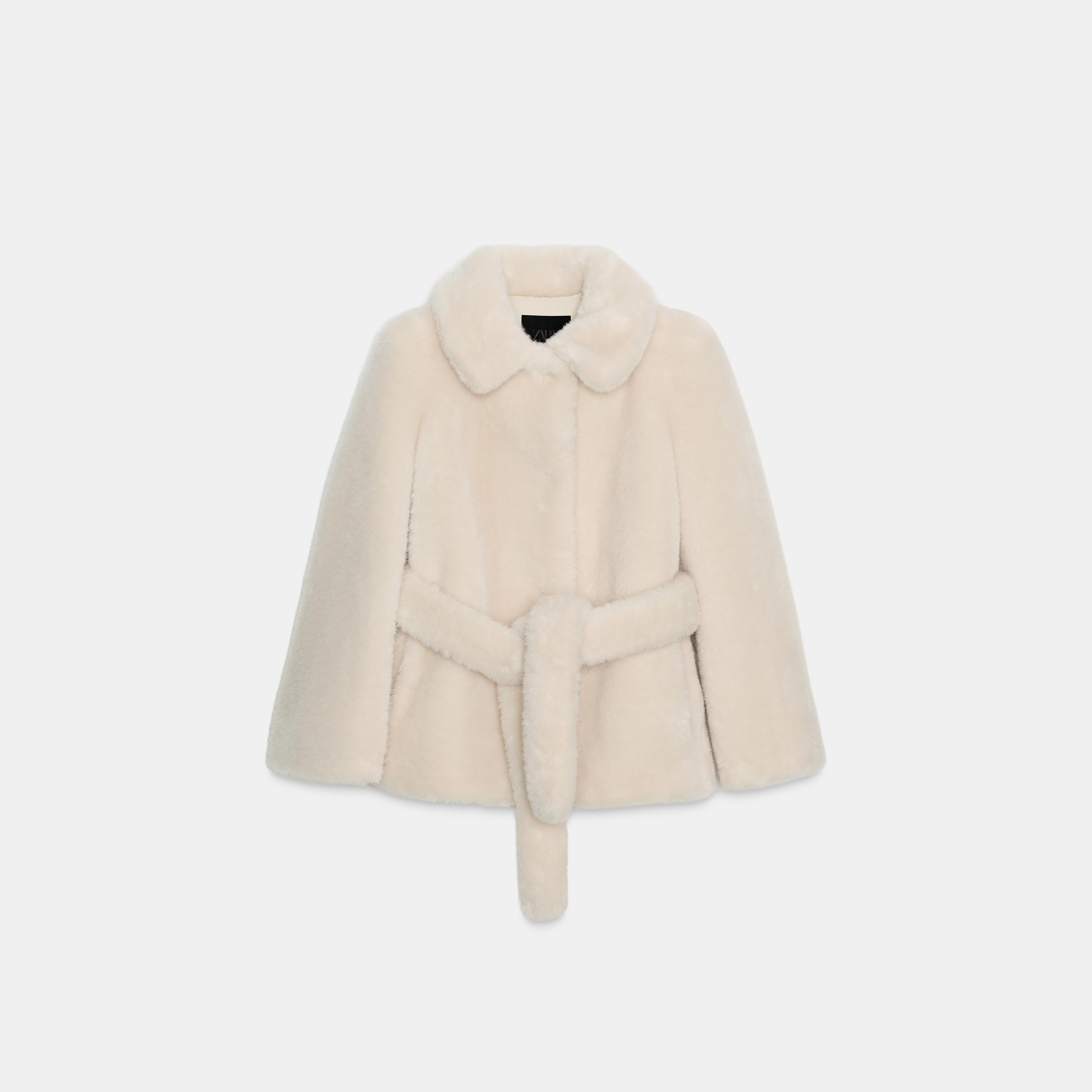 - التصميم: معطف قصير من الفرو الصناعي مع حزام (Faux Fur Belted Coat – ZW Collection)
