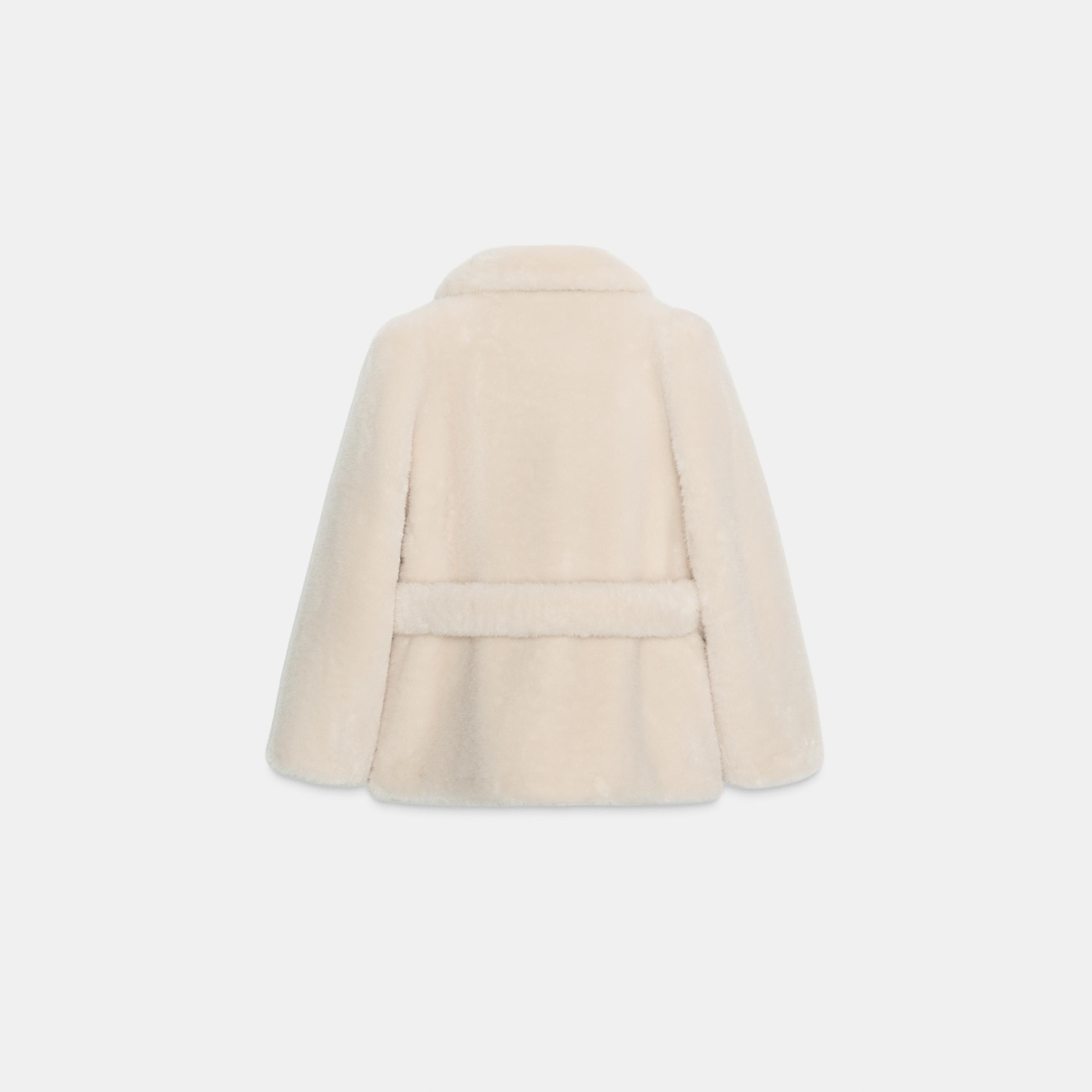معطف نسائي قصير – لون حيادي (إكروا) – Ecru، من الفرو الصناعي مع حزام (Faux Fur Belted Coat – ZW Collection)