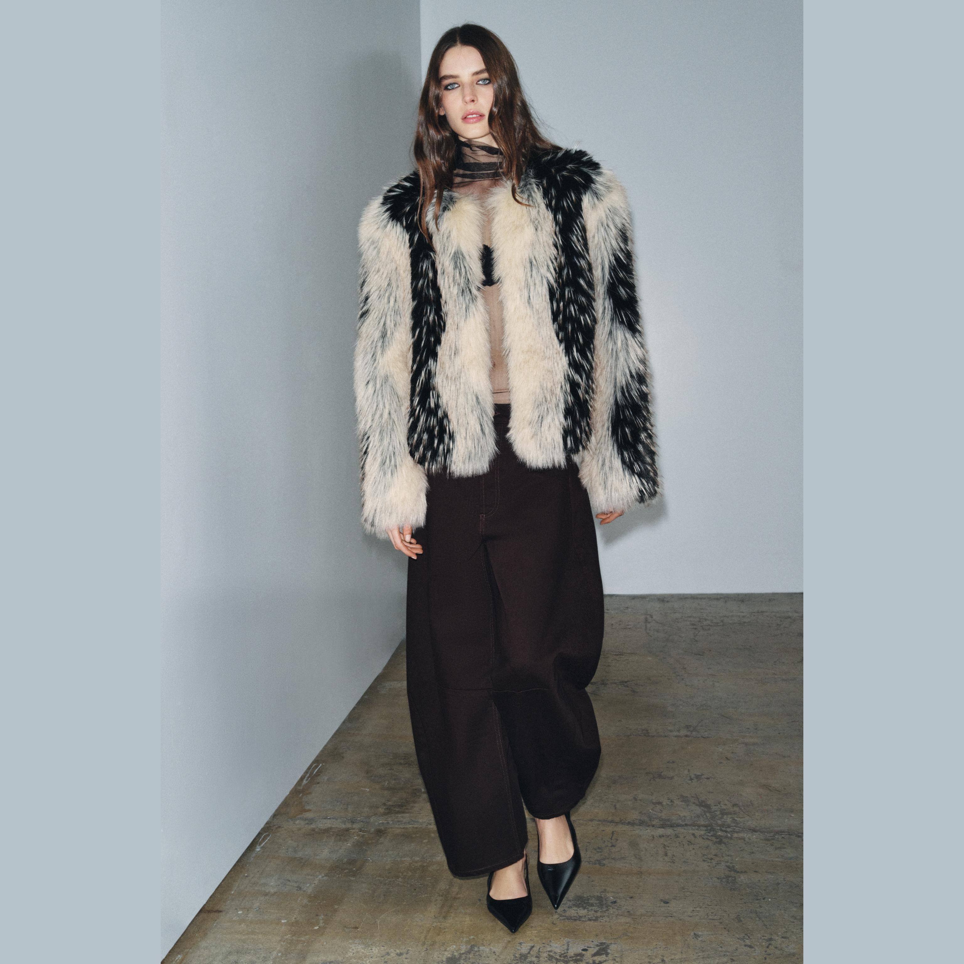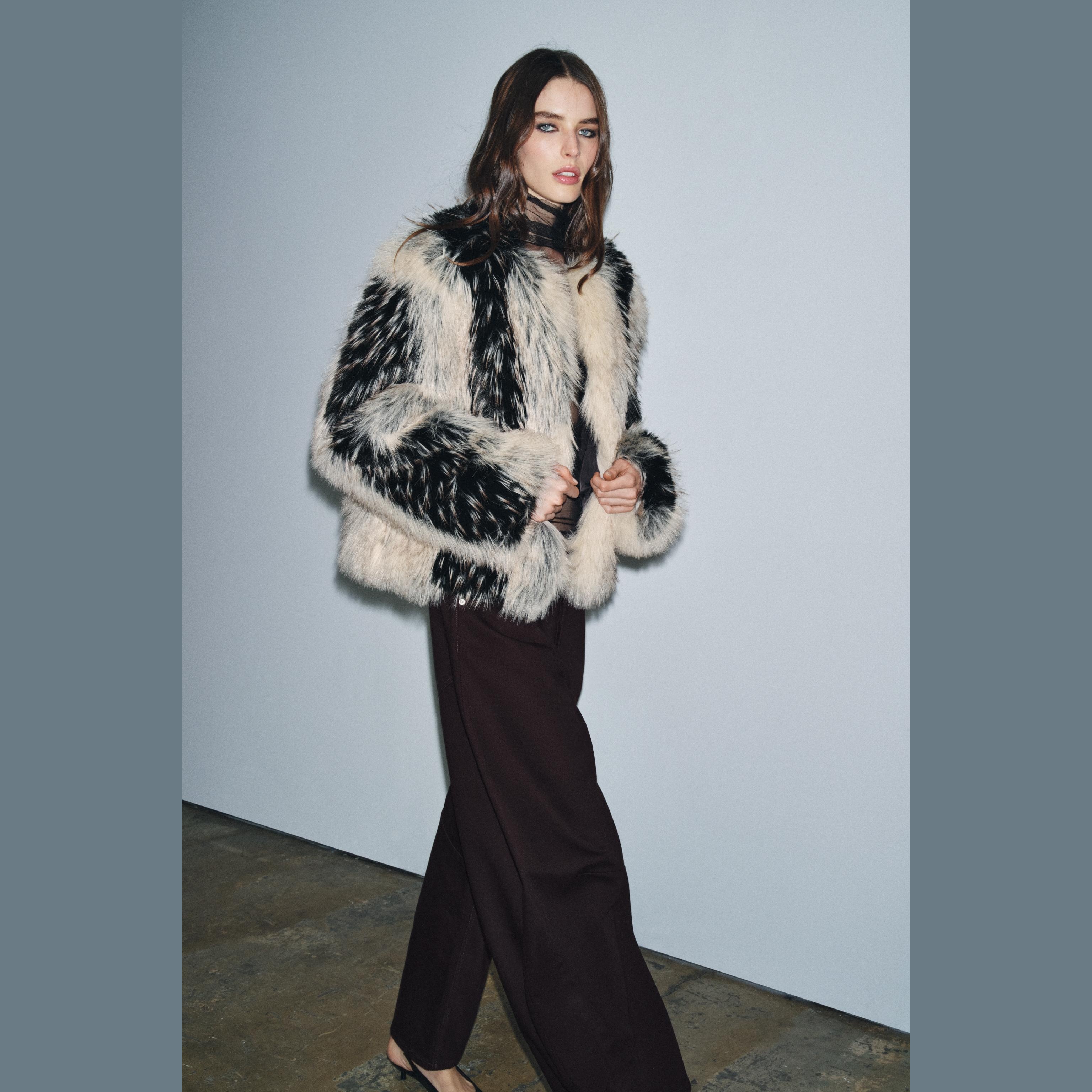 - التصميم: معطف قصير من الفرو الصناعي (Short Faux Fur Coat – ZW Collection)