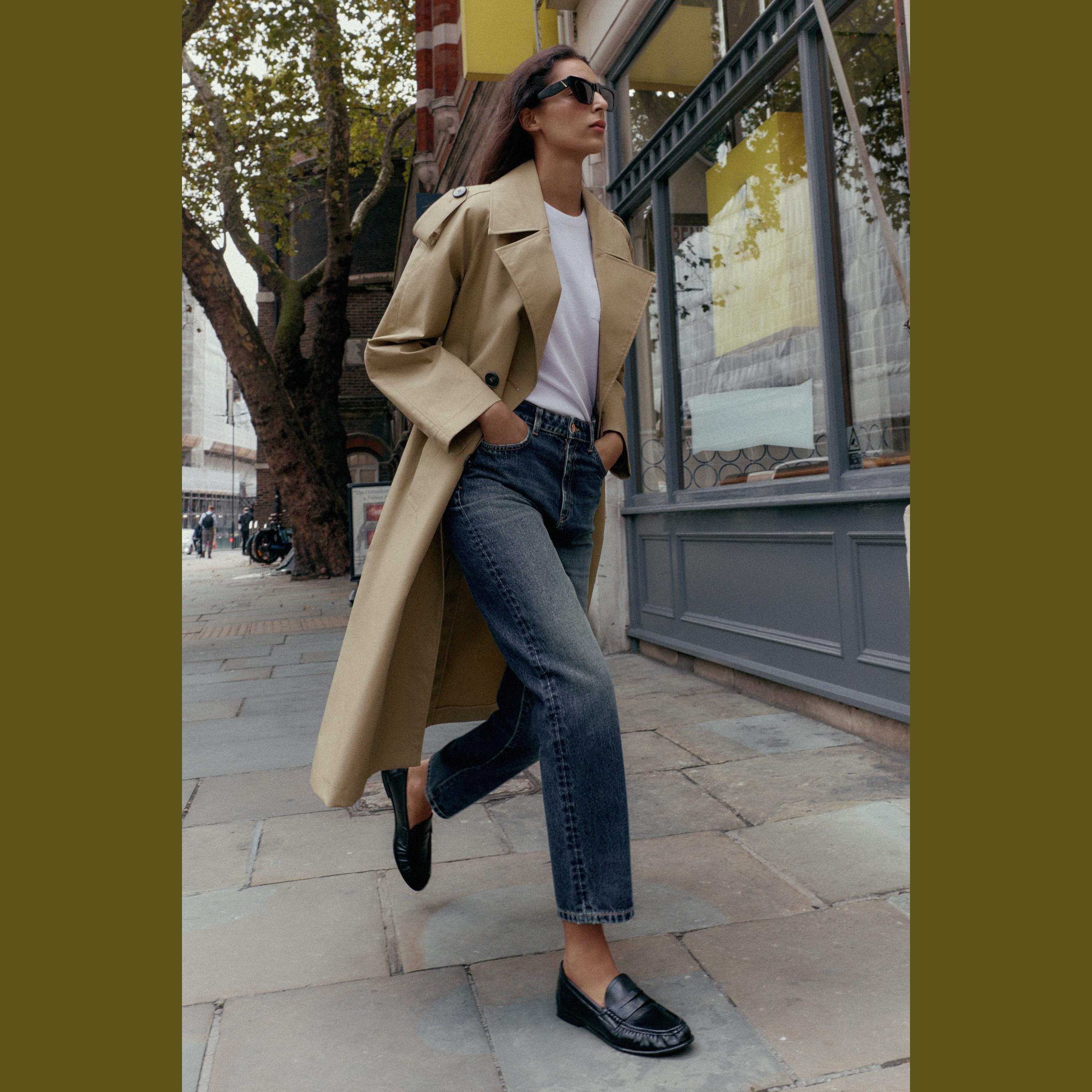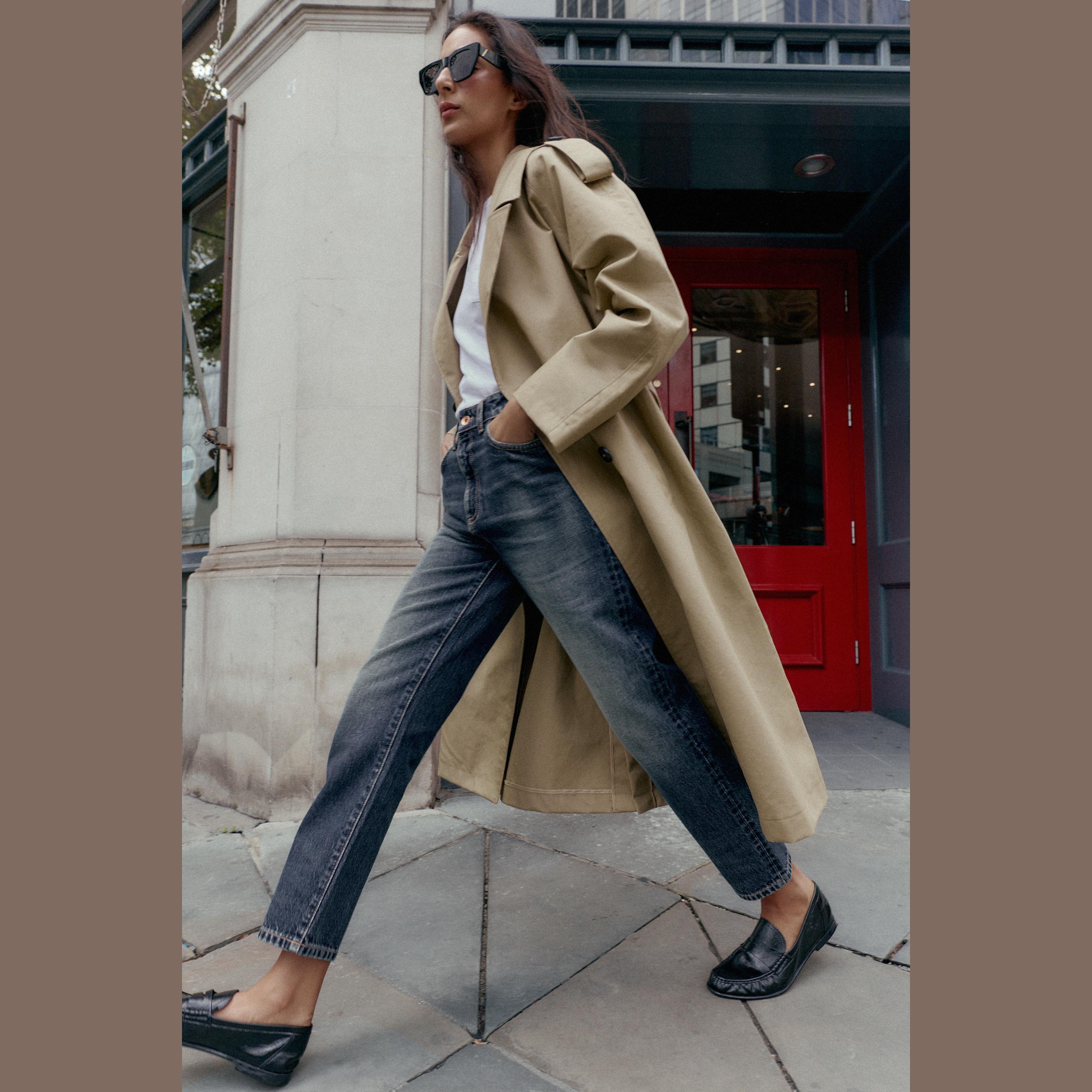 - التصميم: ترنش مع حزام (Trench Coat with Belt)