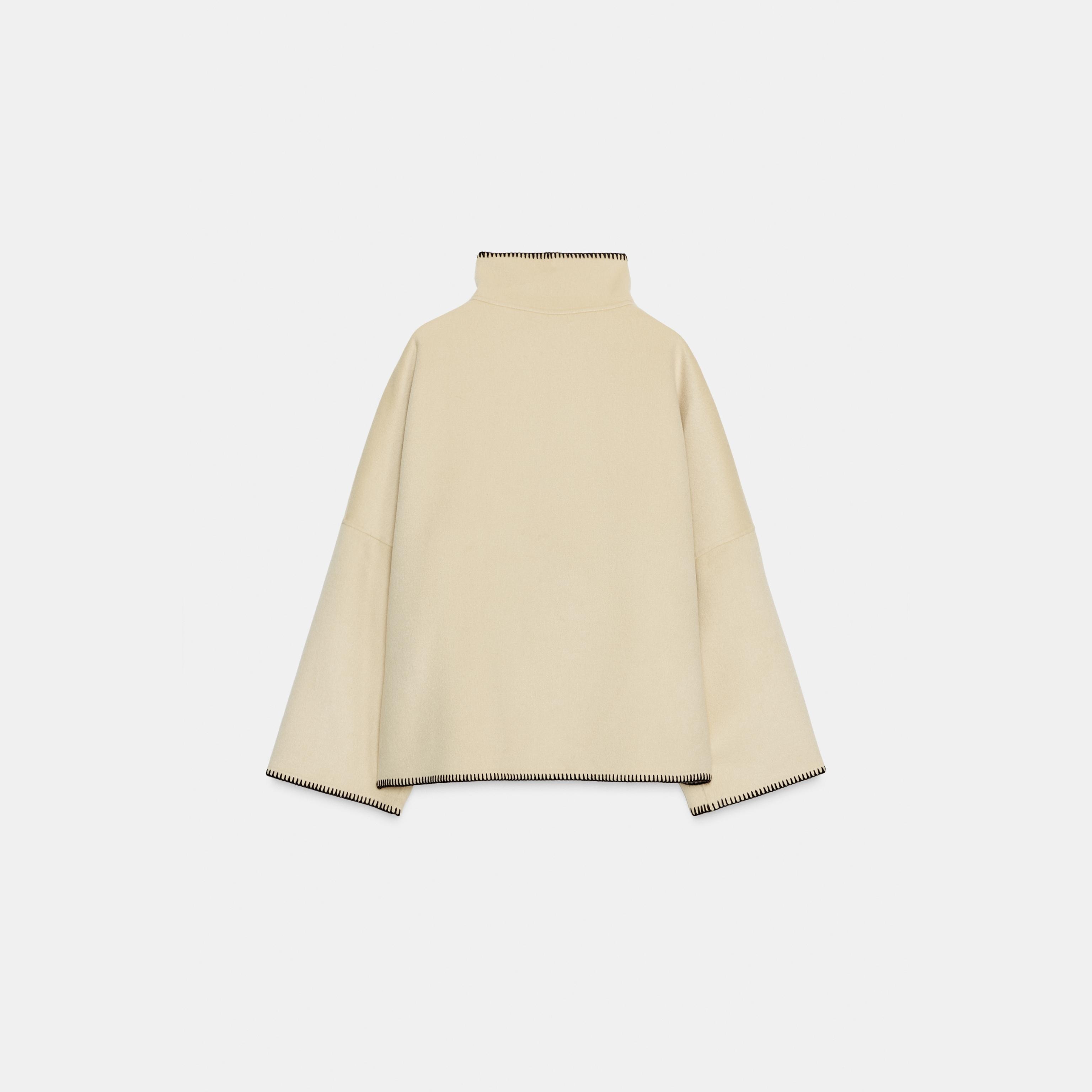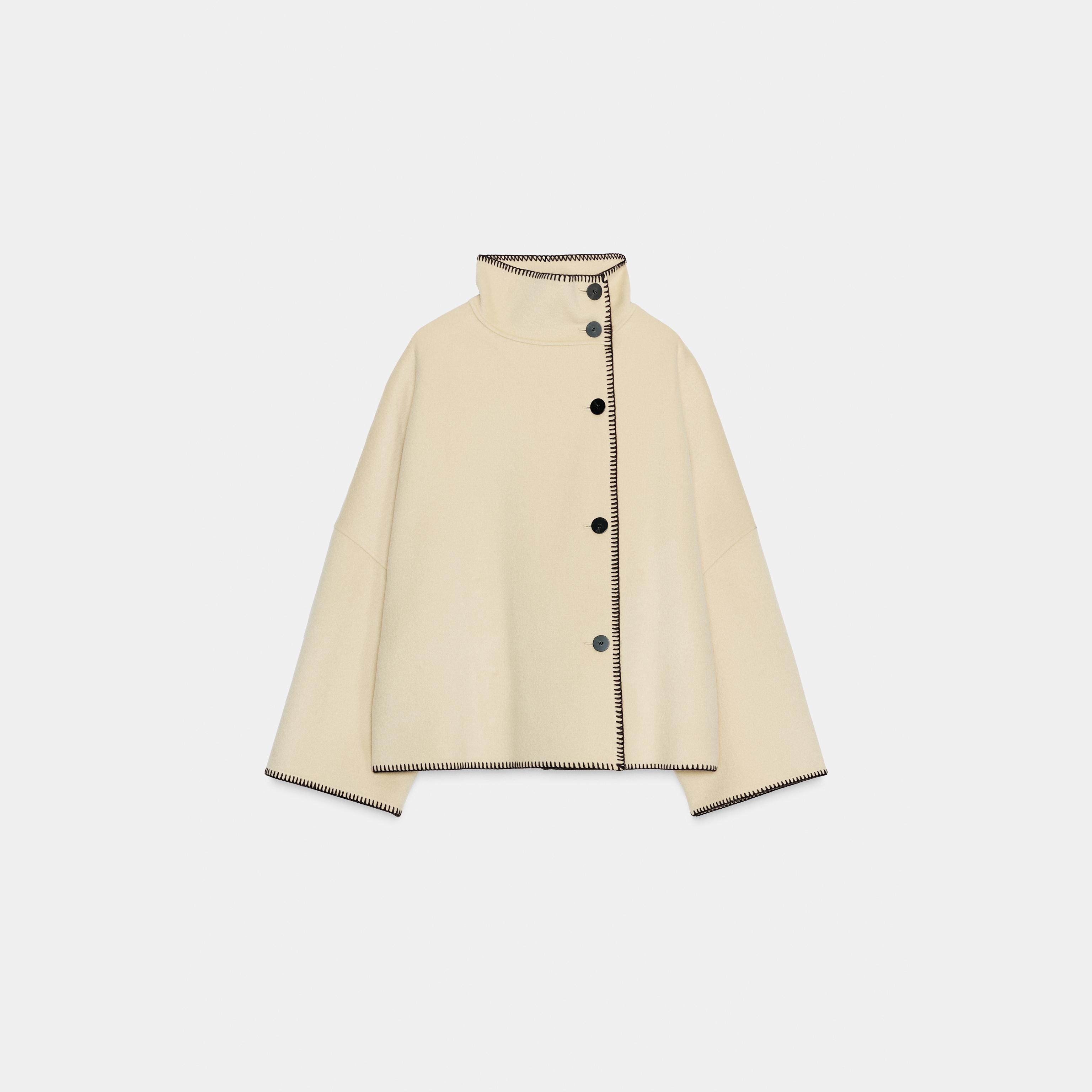 - التصميم: معطف قصير من الصوف (Cropped Wool Coat – ZW Collection)