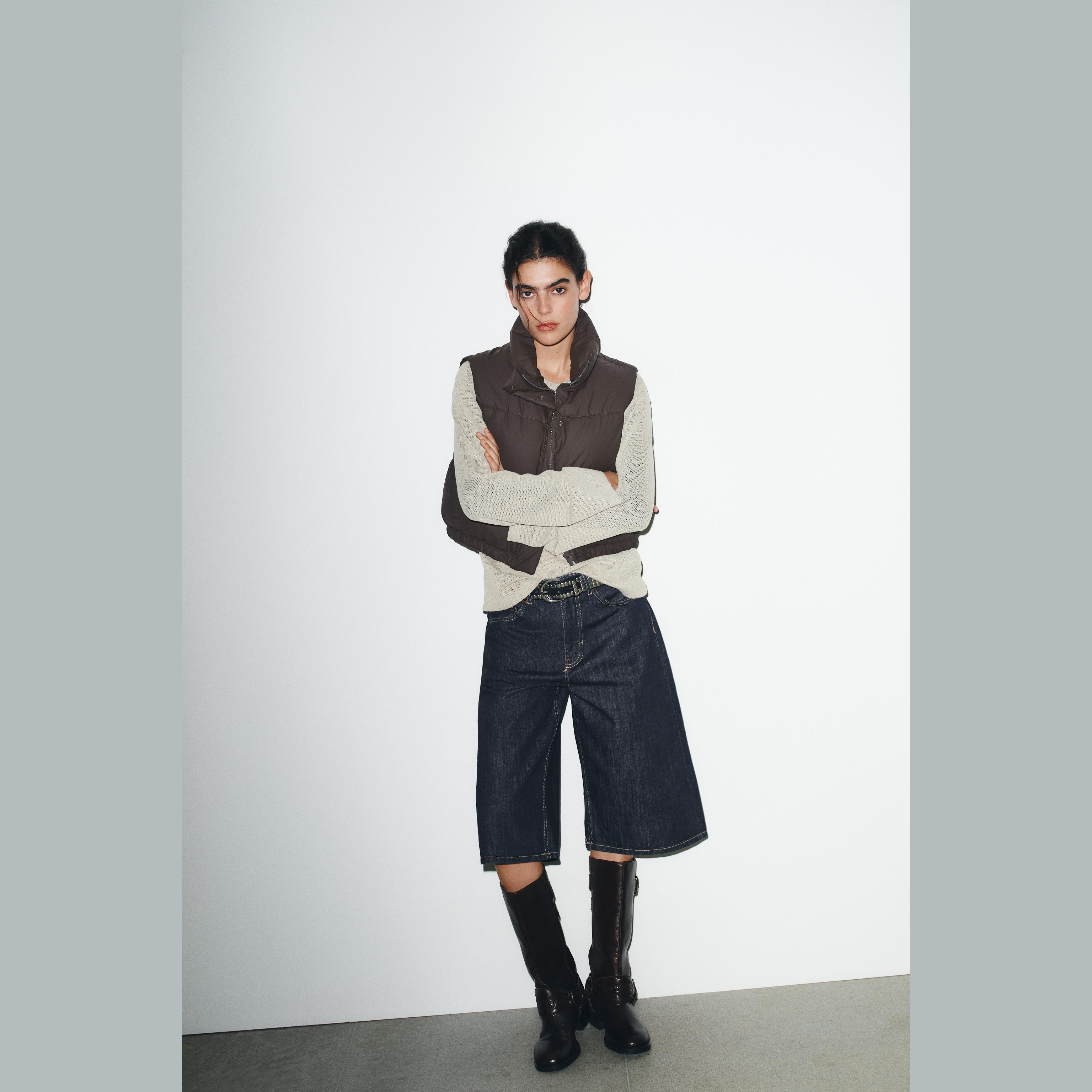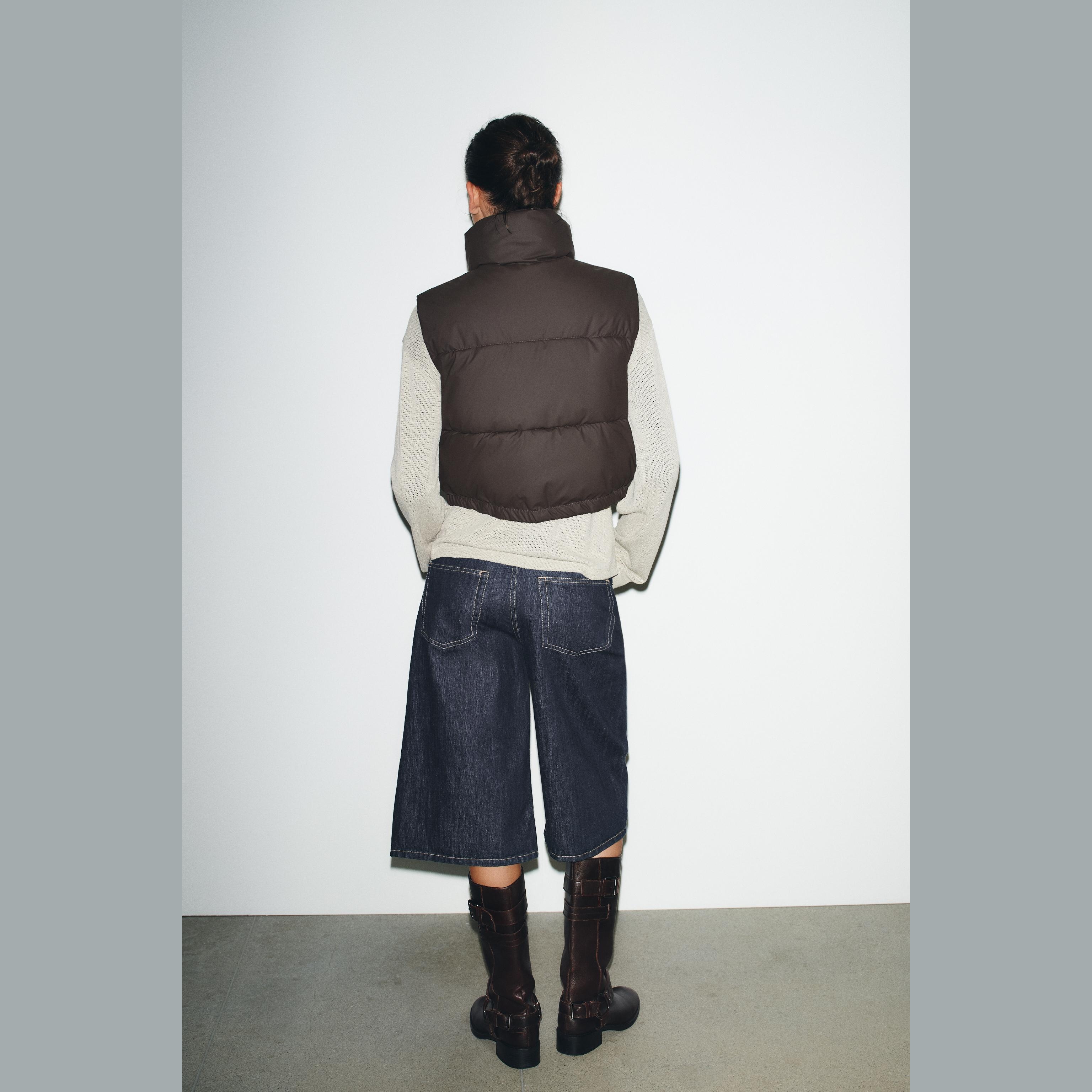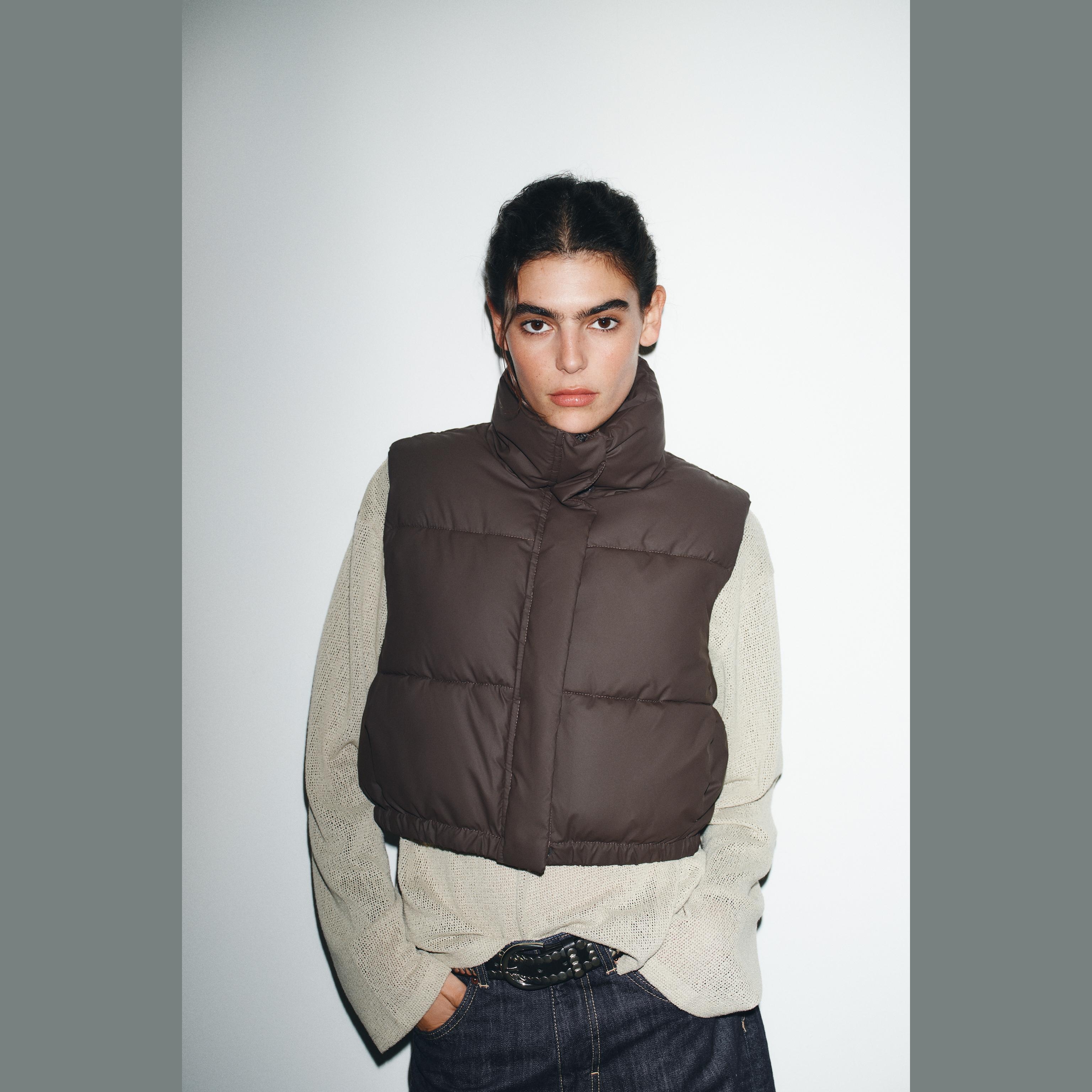 جيليه مبطن أنيق بلون بني داكن غني، مصنوع من خامة بوليستر مع طبقة مطاطية تمنح مظهرًا عصريًا وحماية إضافية. يتميز بياقة عالية بدون أكمام، مع جيوب جانبية عملية، وحاشية قابلة للتعديل بواسطة أربطة مطاطية مع سدادات، وإغلاق أمامي بسحاب وأزرار كبس. تصميم مثالي للإطلالات العملية والرياضية في المواسم الانتقالية.