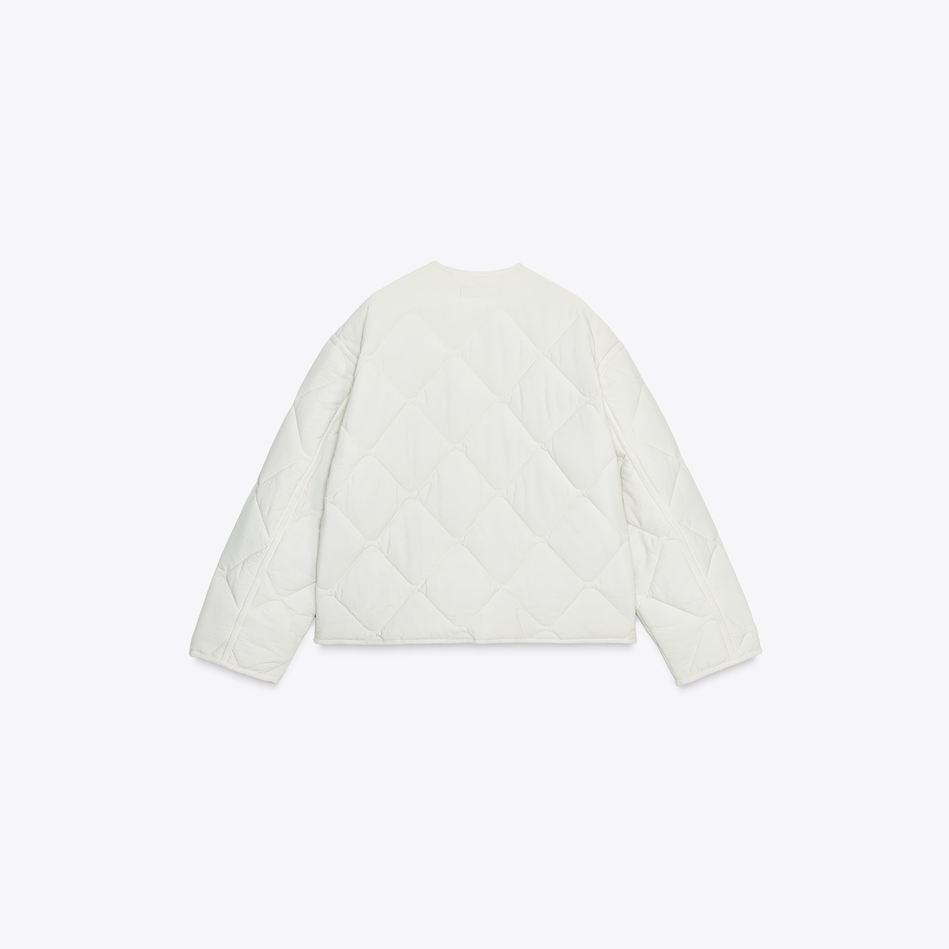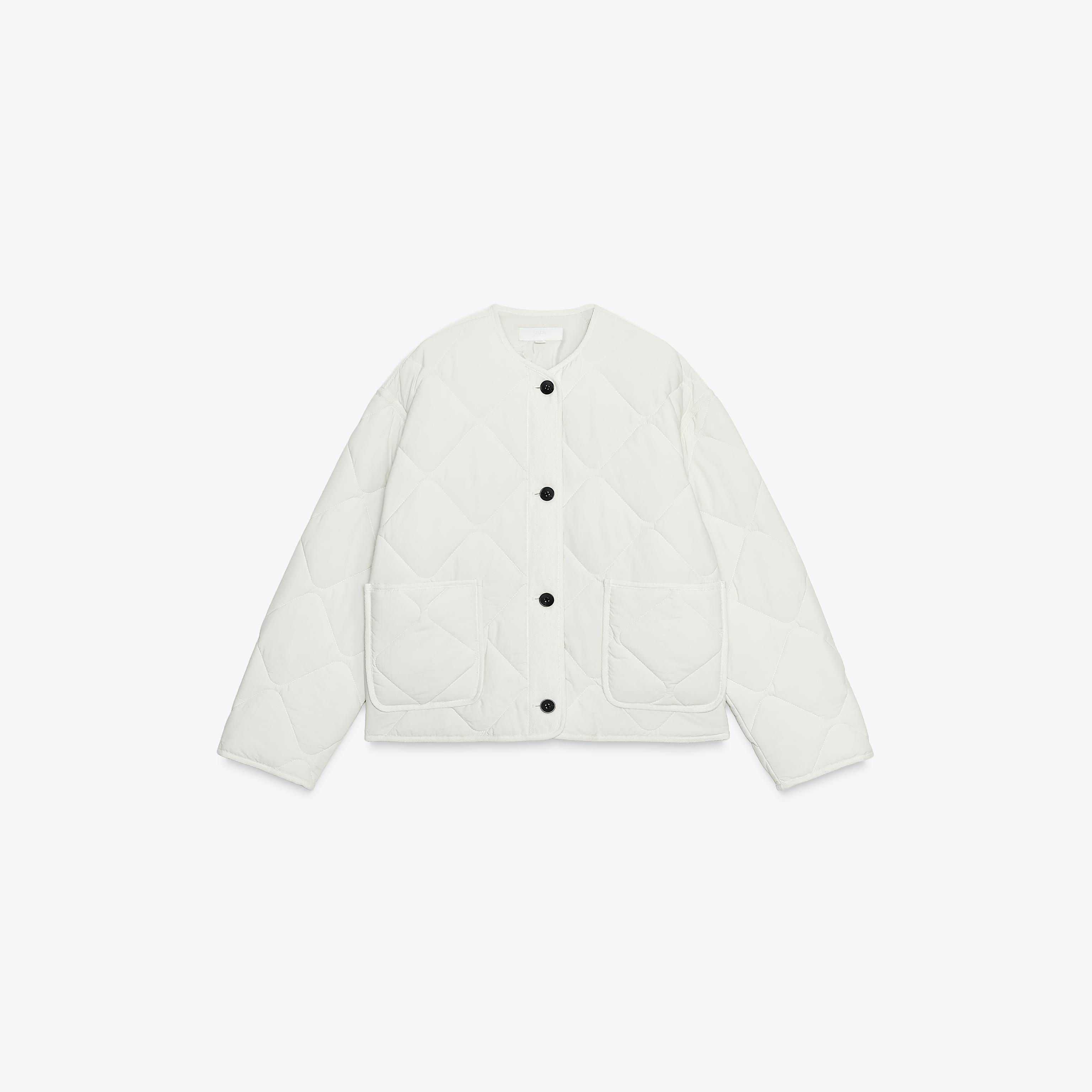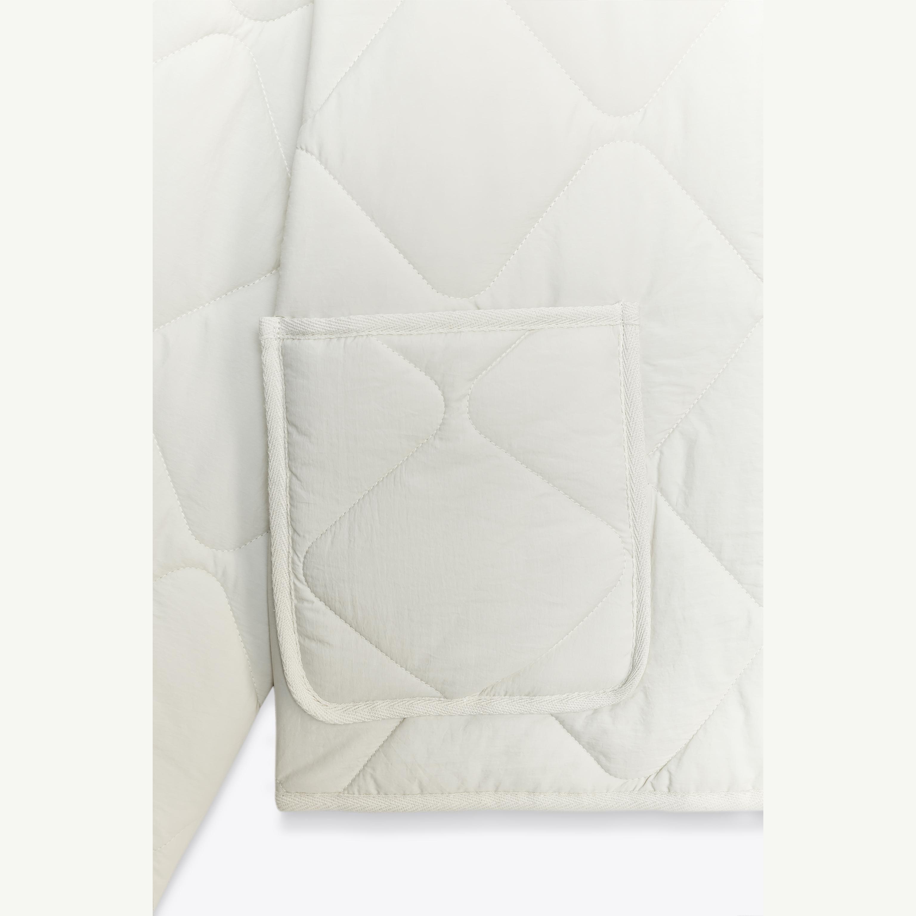 جاكيت نسائي مبطن – لون حيادي (إكروا) – Ecru، مع جيوب أمامية بارزة (Quilted Jacket with Patch Pockets)