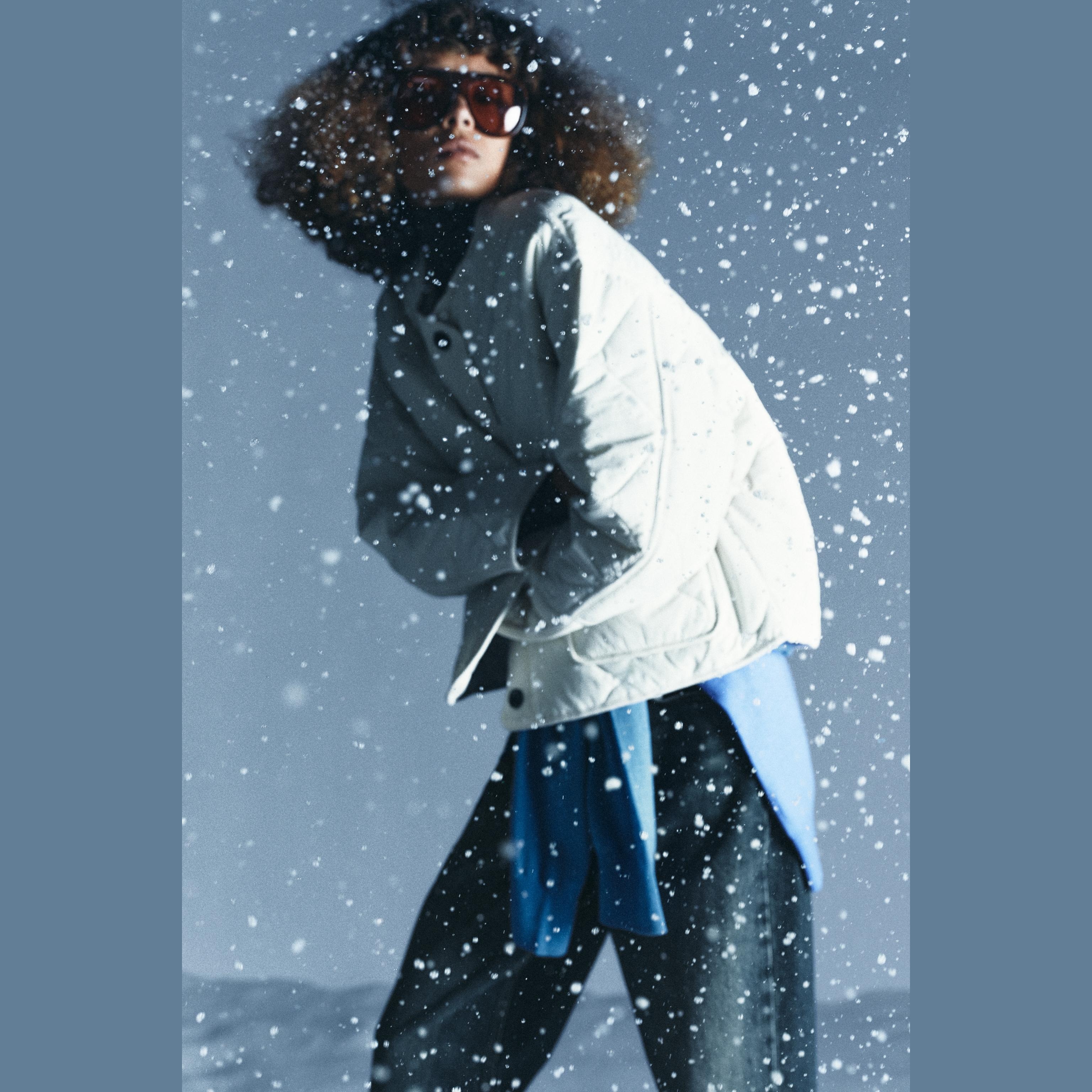 - التصميم: جاكيت مبطن مع جيوب أمامية بارزة (Quilted Jacket with Patch Pockets)