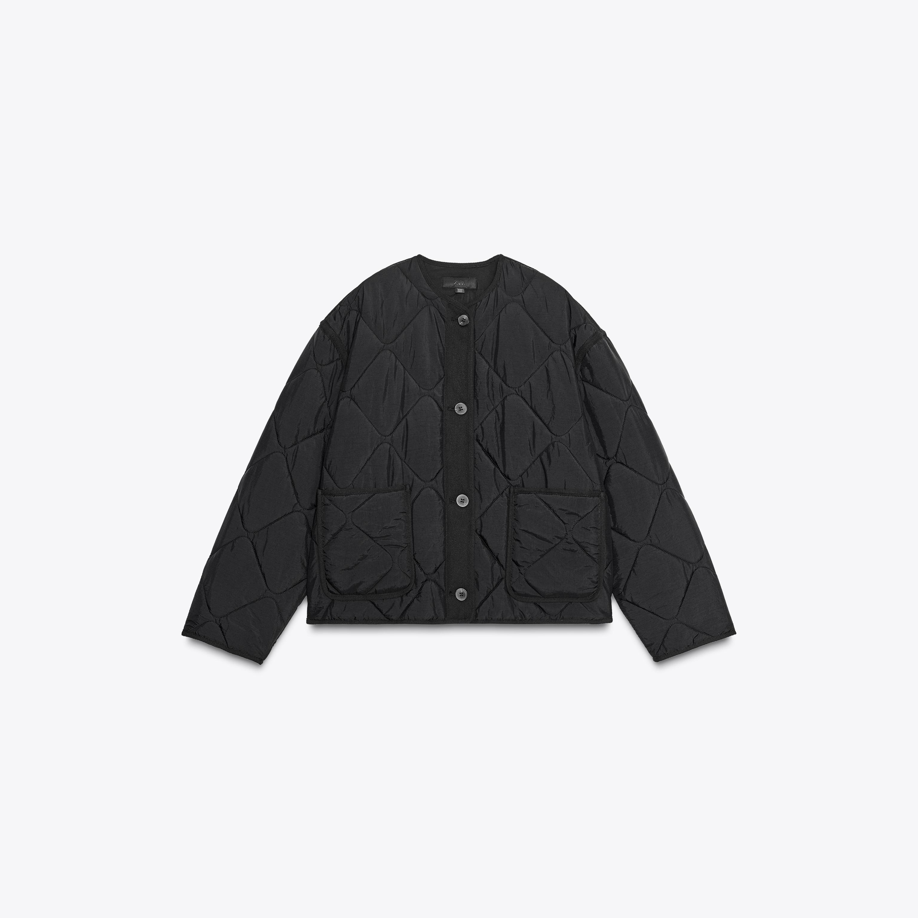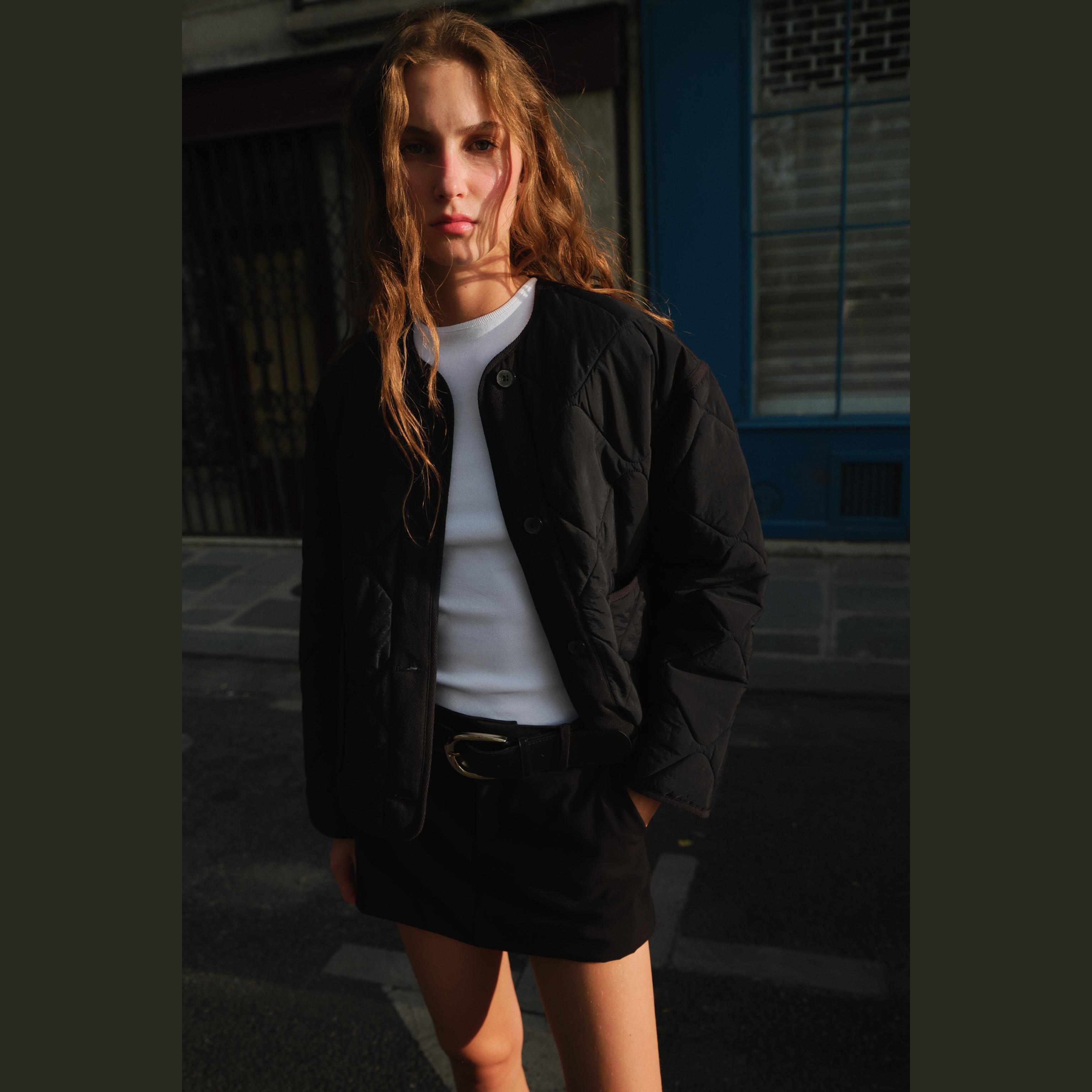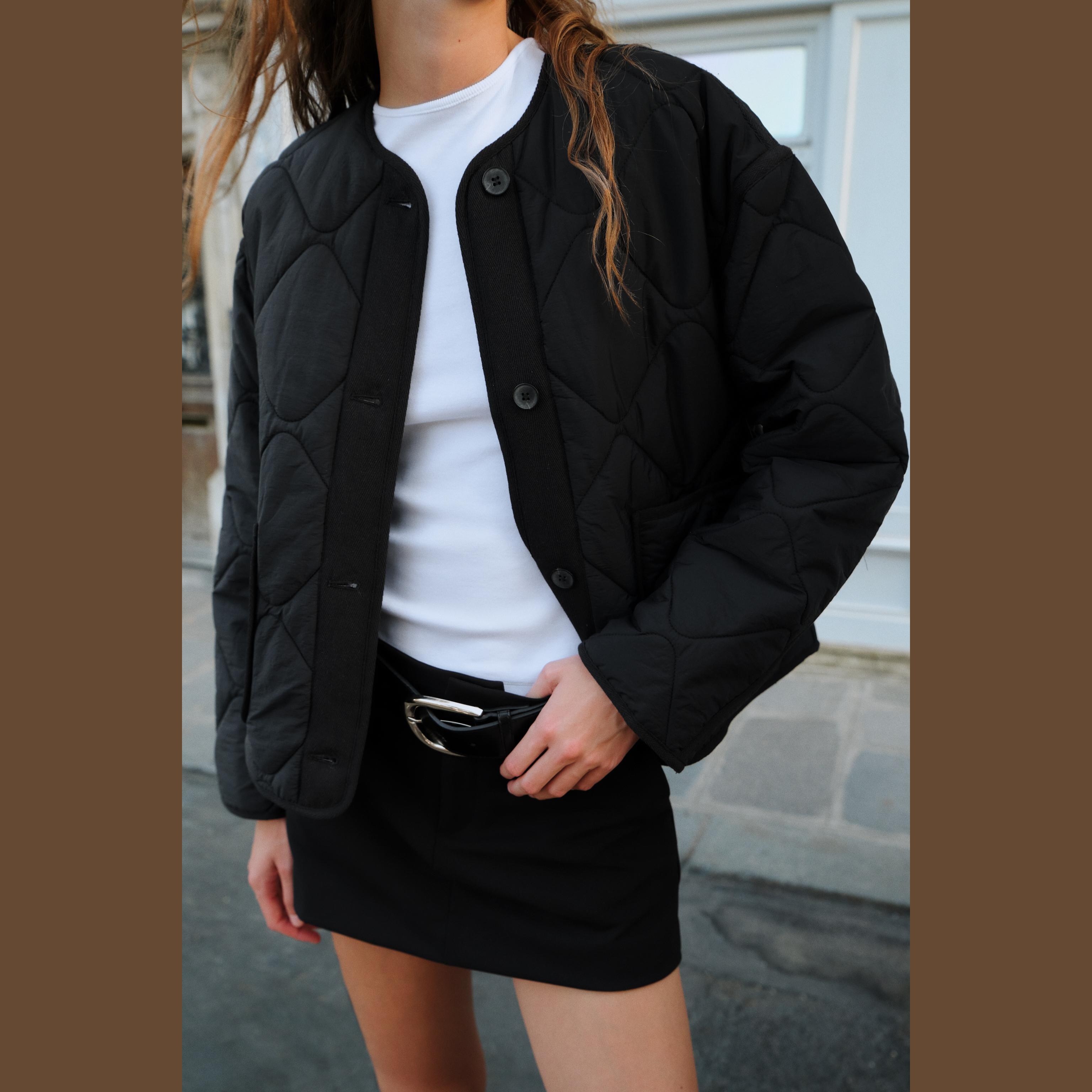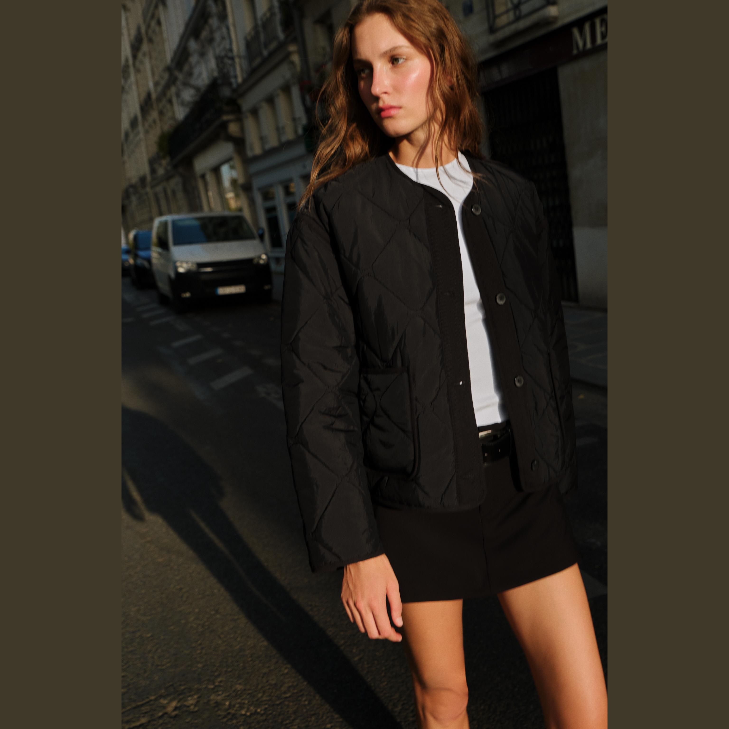 جاكيت نسائي مبطن – لون كلاسيكي (أسود) – Black، مع جيوب أمامية بارزة (Quilted Jacket with Patch Pockets)