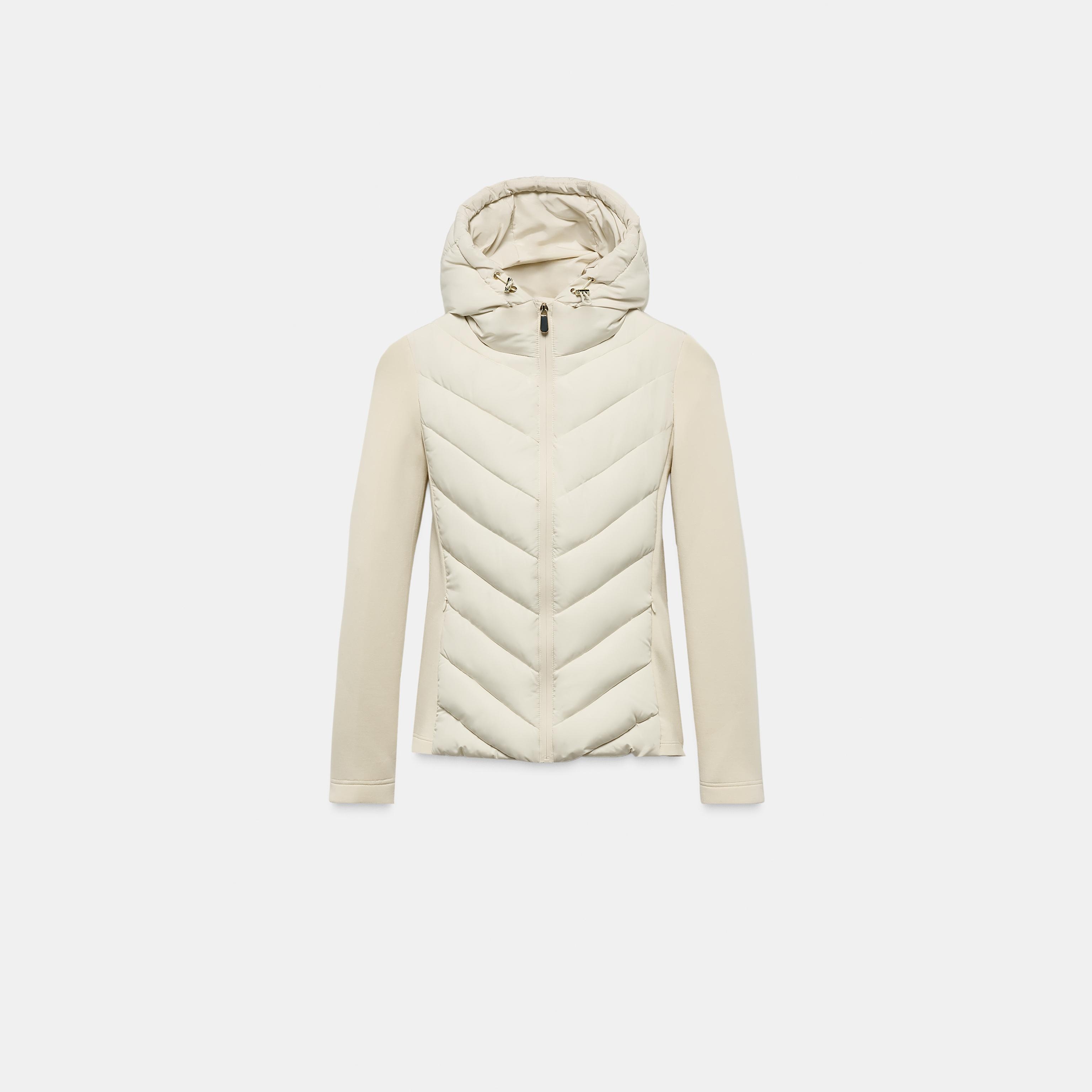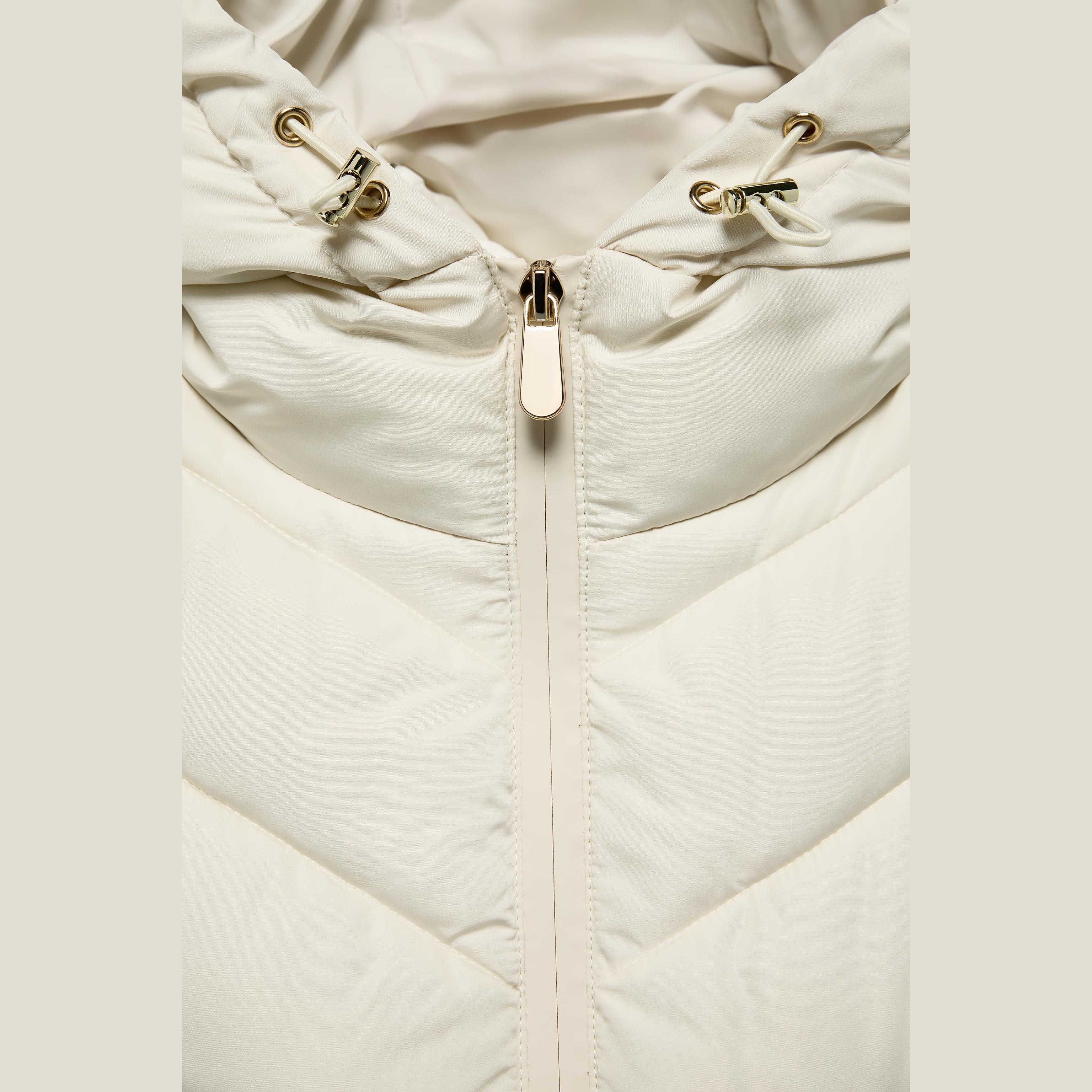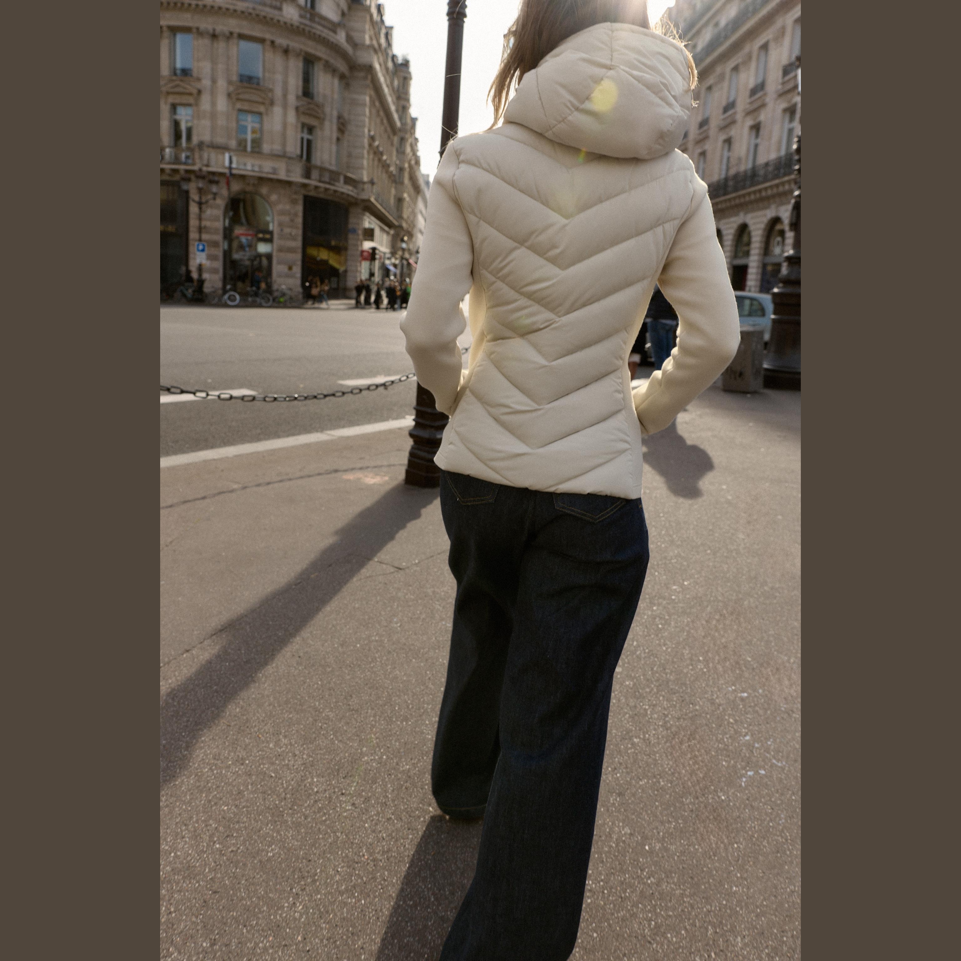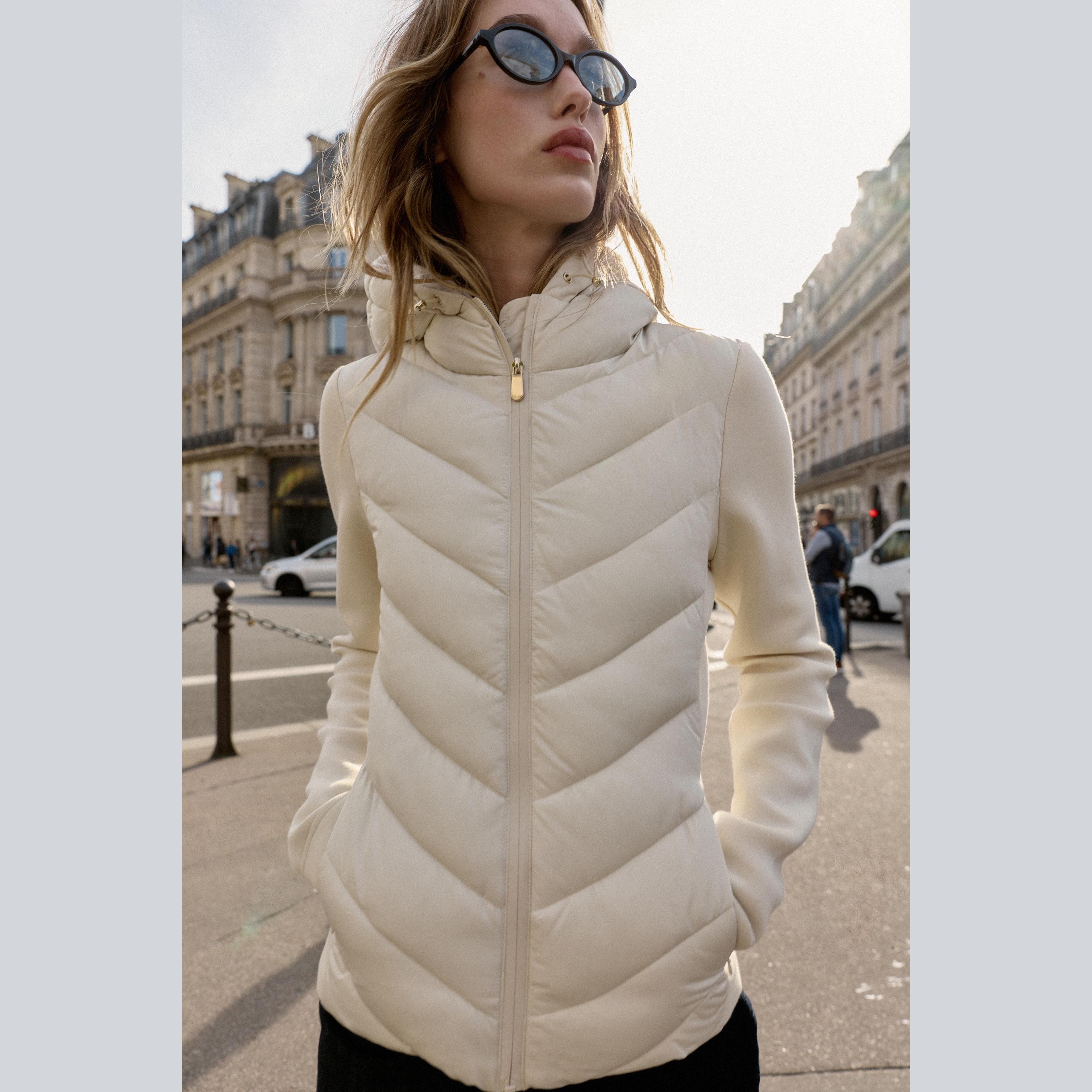 جاكيت نسائي مبطن – لون حيادي (إكروا) – Ecru، بتفاصيل متباينة (Contrast Puffer Jacket)
