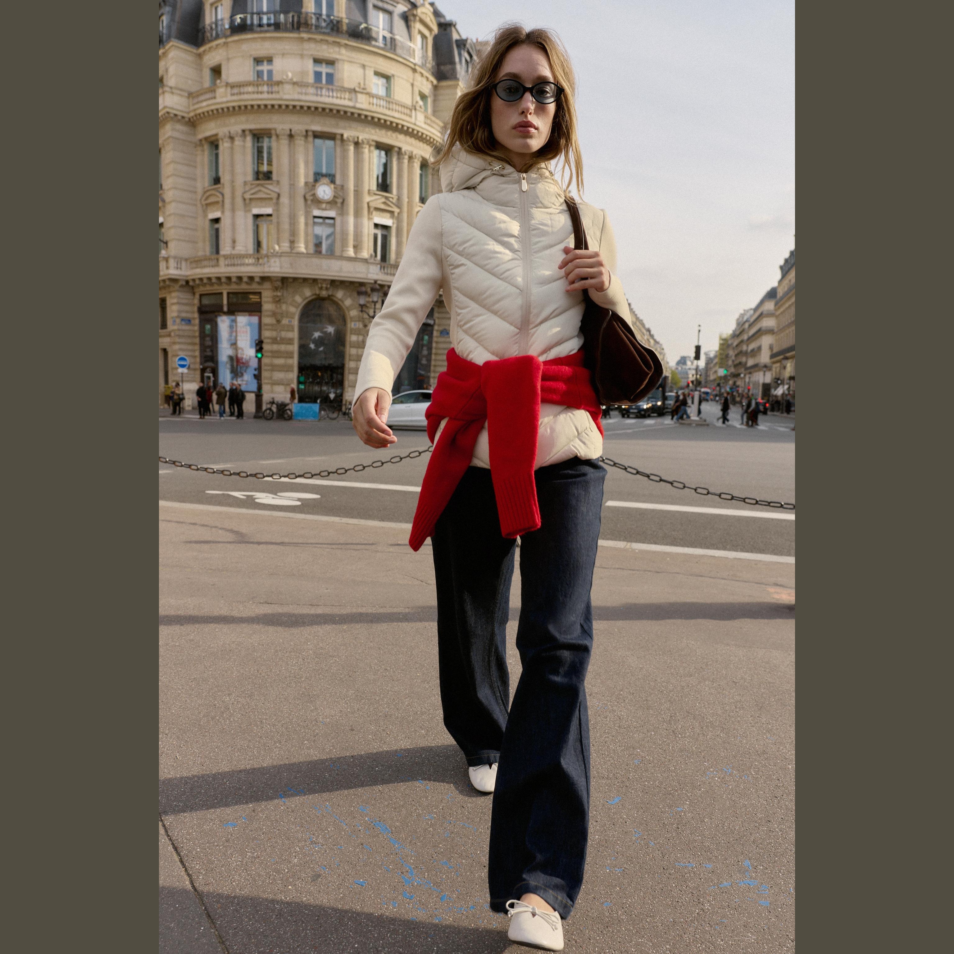 - التصميم: جاكيت مبطن بتفاصيل متباينة (Contrast Puffer Jacket)