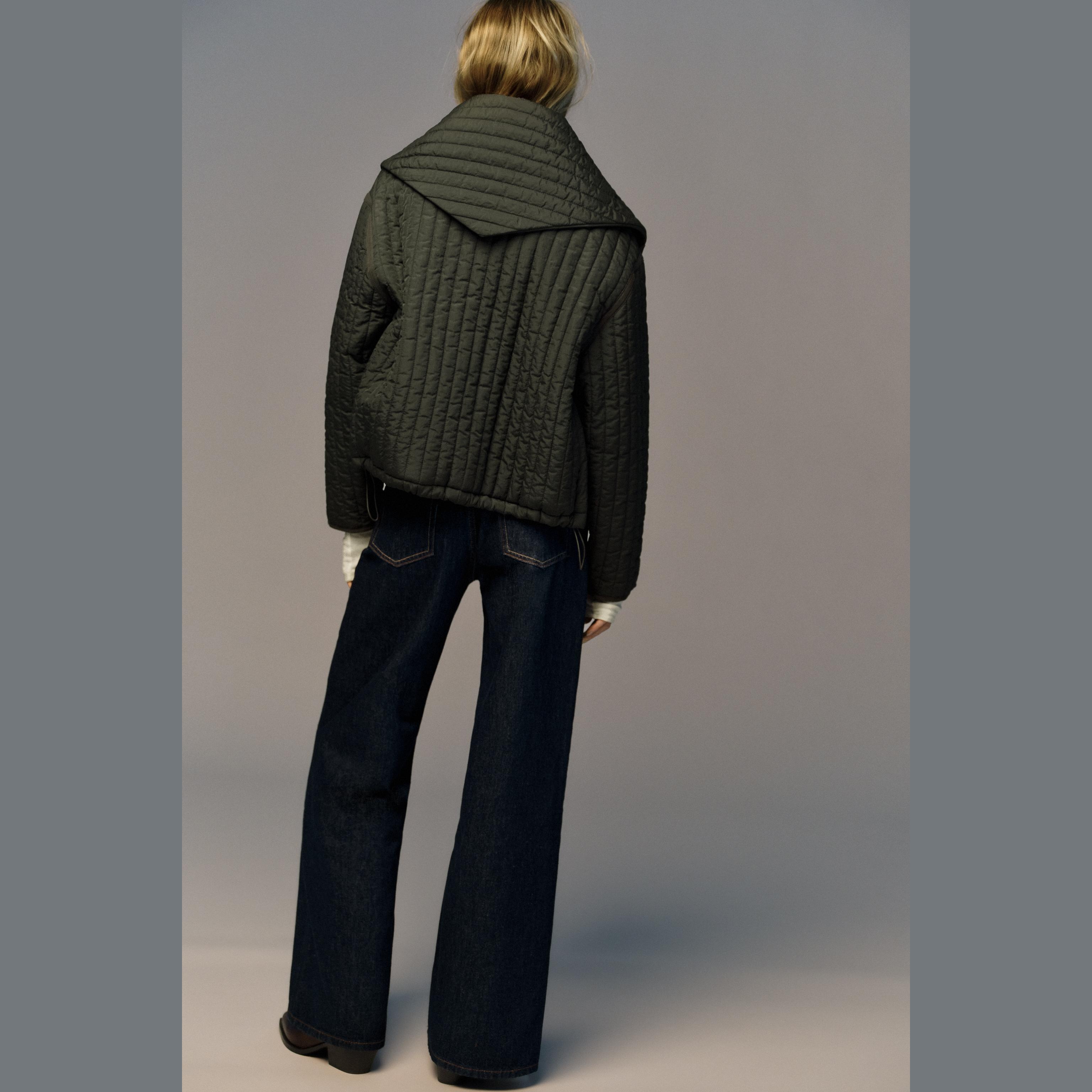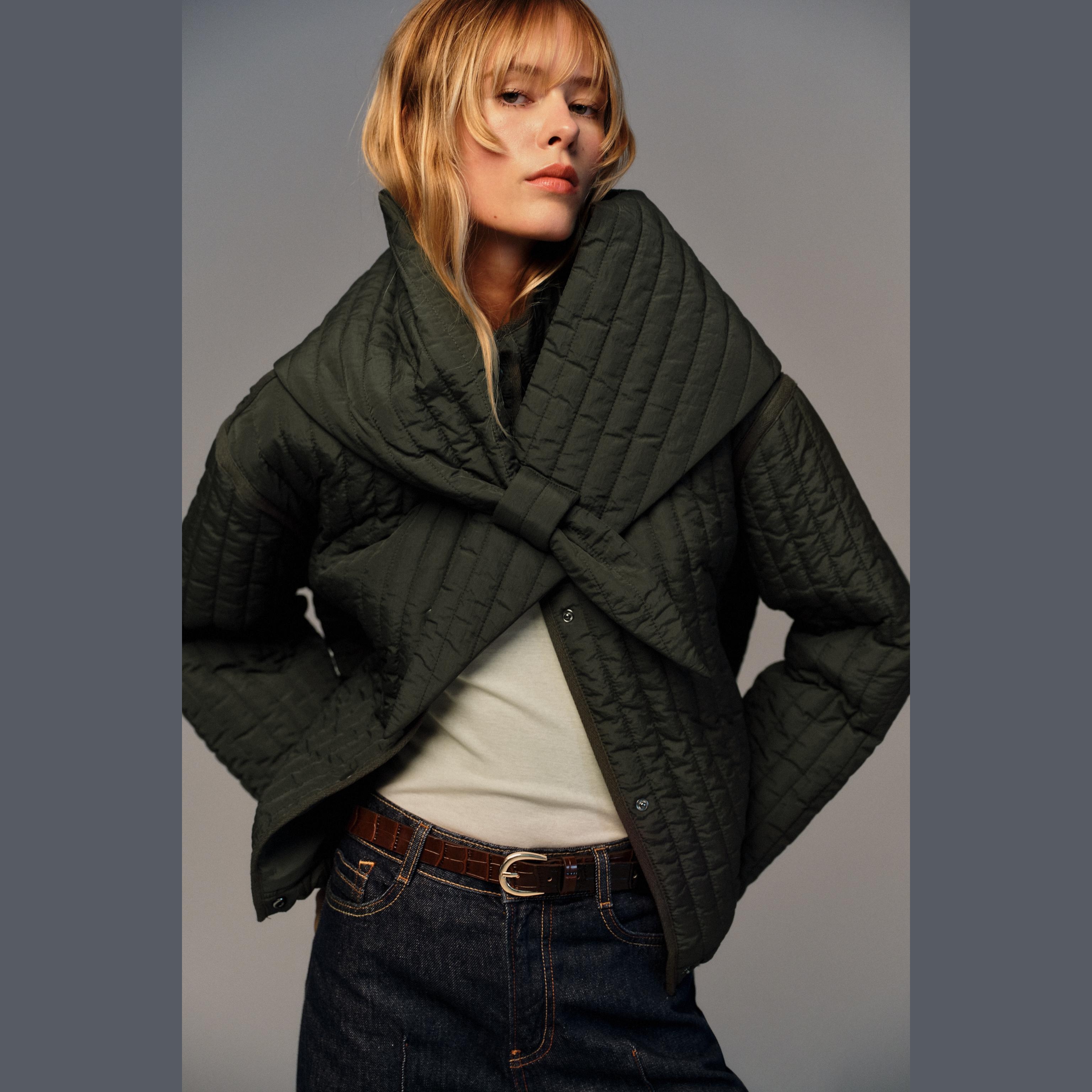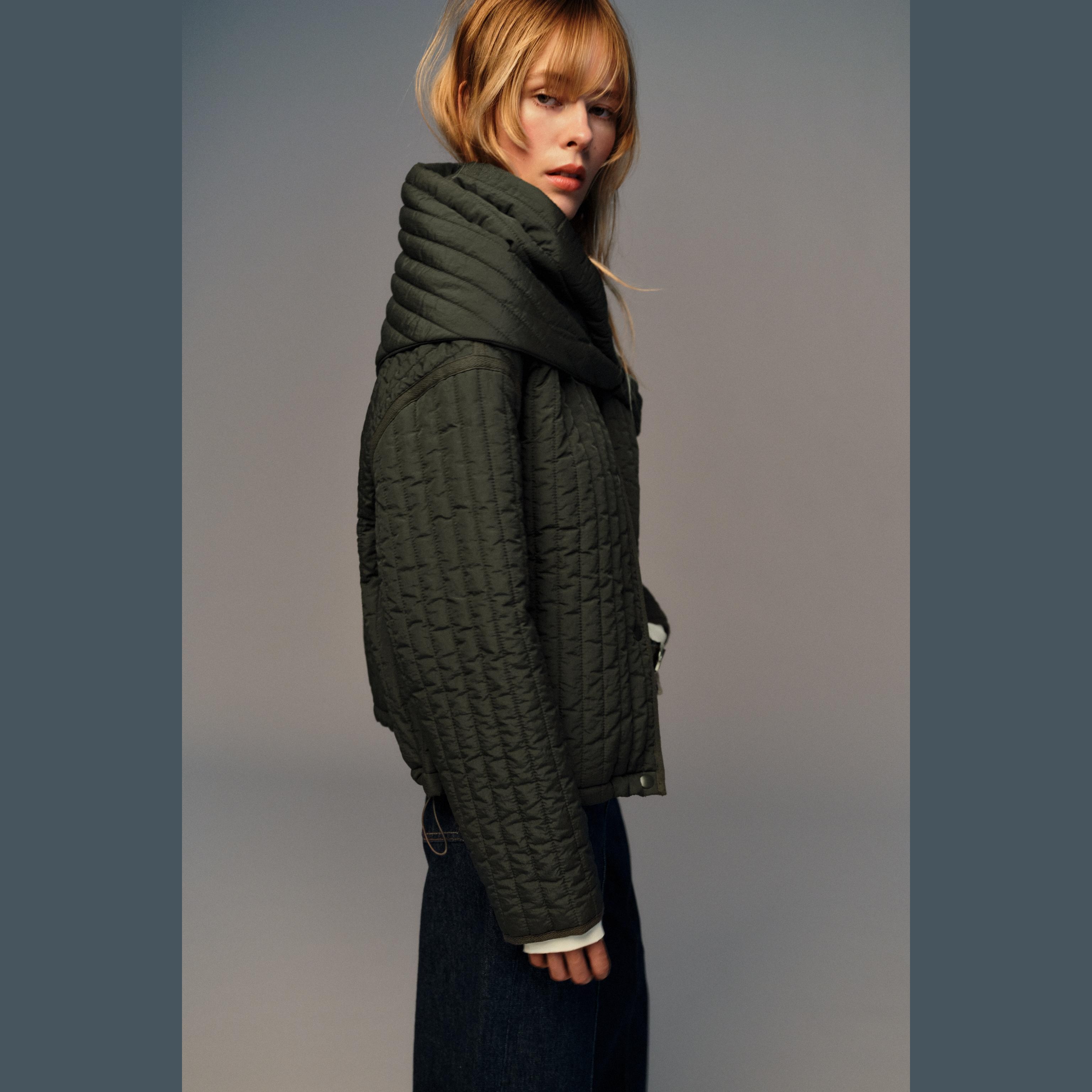 - التصميم: جاكيت مبطن مع وشاح قابل للفصل (Quilted Jacket with Detachable Scarf)