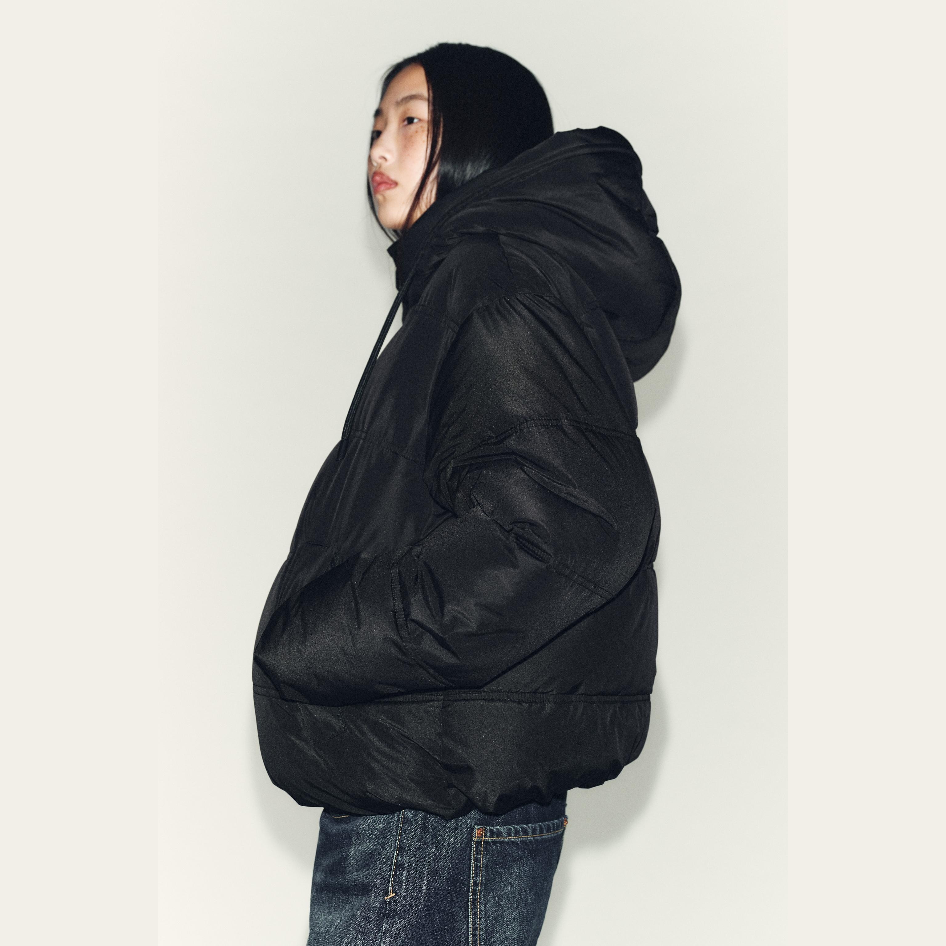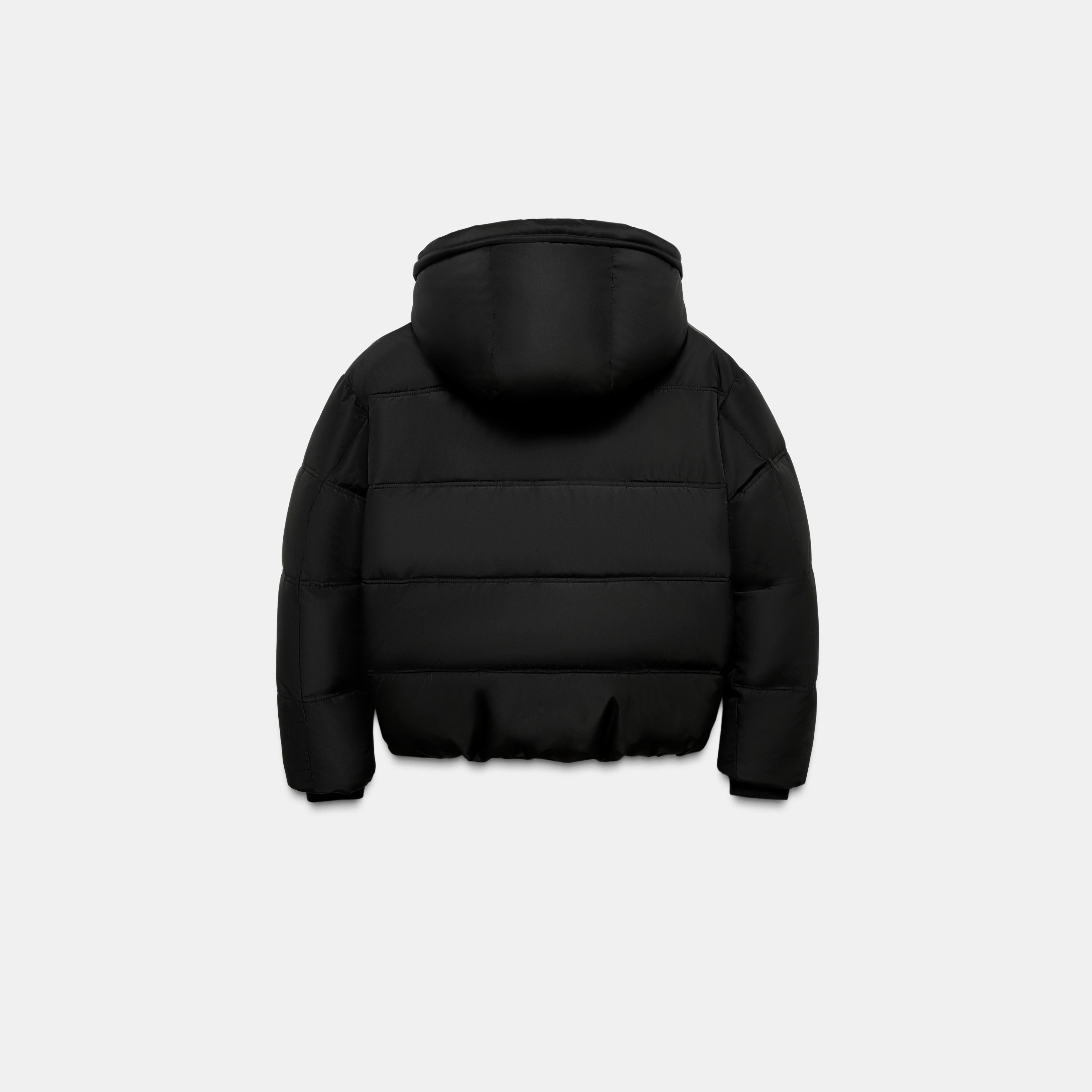 جاكيت أنوراك قصير عملي بلون أسود كلاسيكي، مصنوع من خامة بوليستر مقاومة للماء والرياح، مع بطانة مبطنة تمنح دفئًا وراحة في الارتداء. يتميز بياقة عالية مع غطاء رأس قابل للتعديل، وأكمام طويلة مع حواف مطاطية، مع جيوب أمامية بسحاب مبطنة بملمس فليسي، وحاشية قابلة للتعديل بواسطة أربطة جانبية، وإغلاق أمامي بسحاب معدني. مناسب للإطلالات اليومية والأنشطة الخارجية في المواسم الباردة.