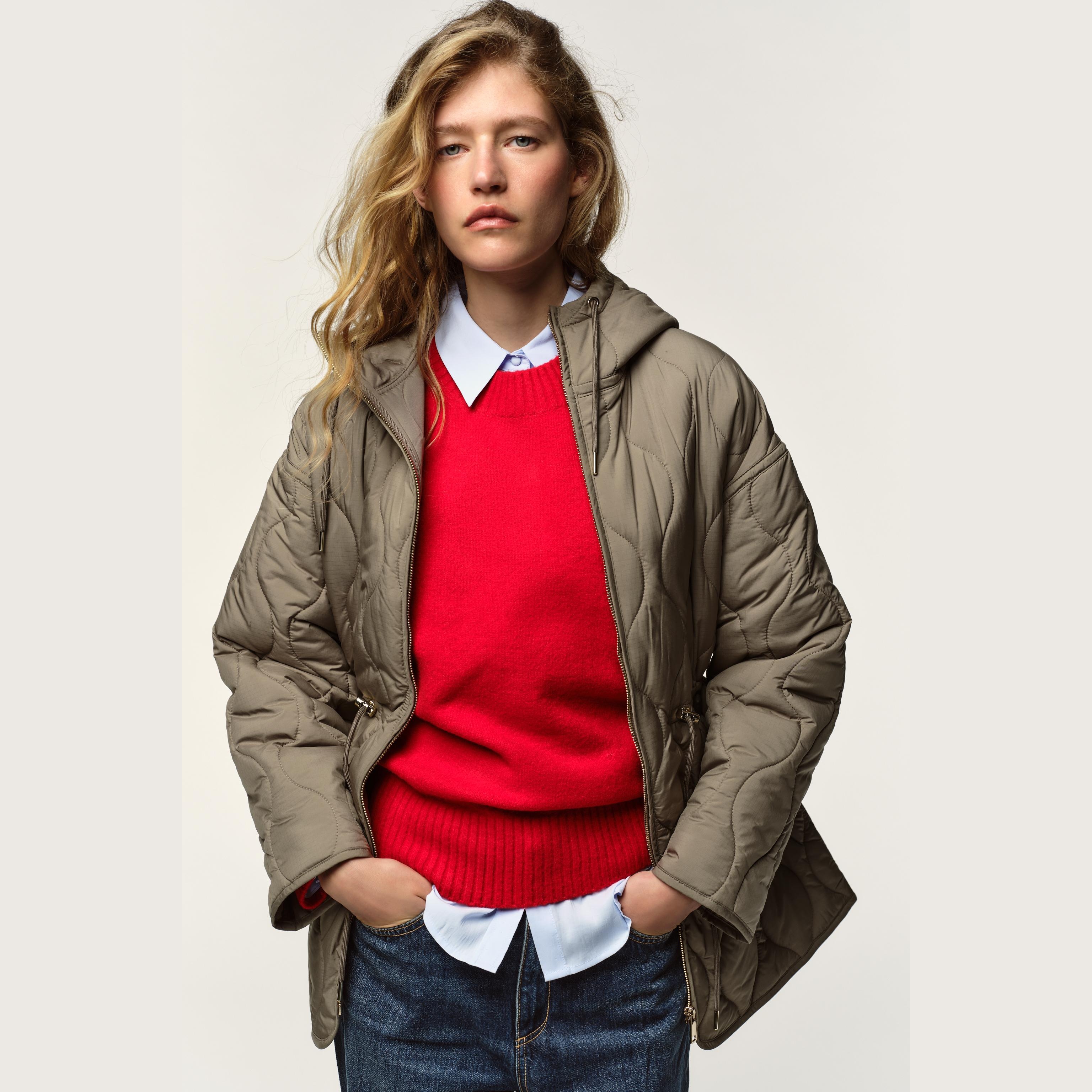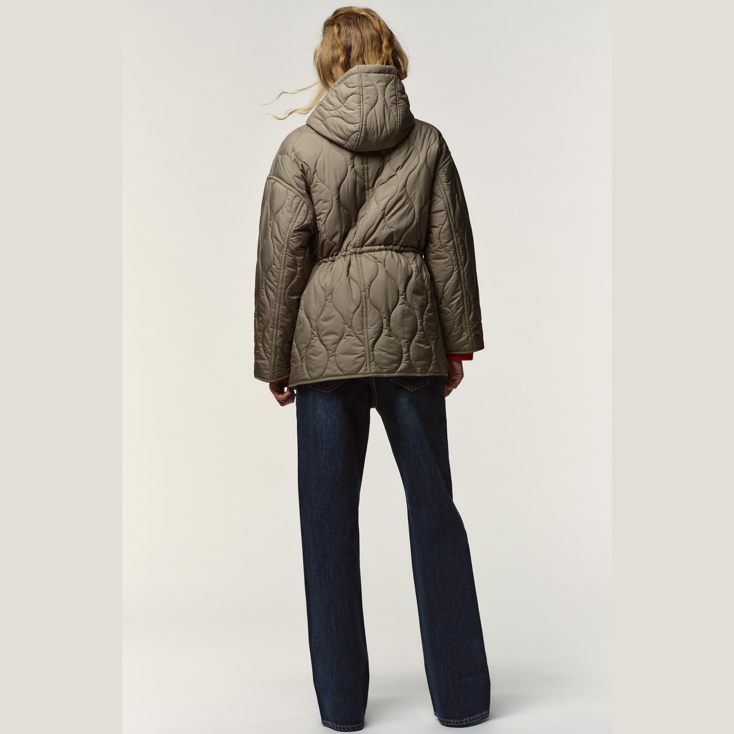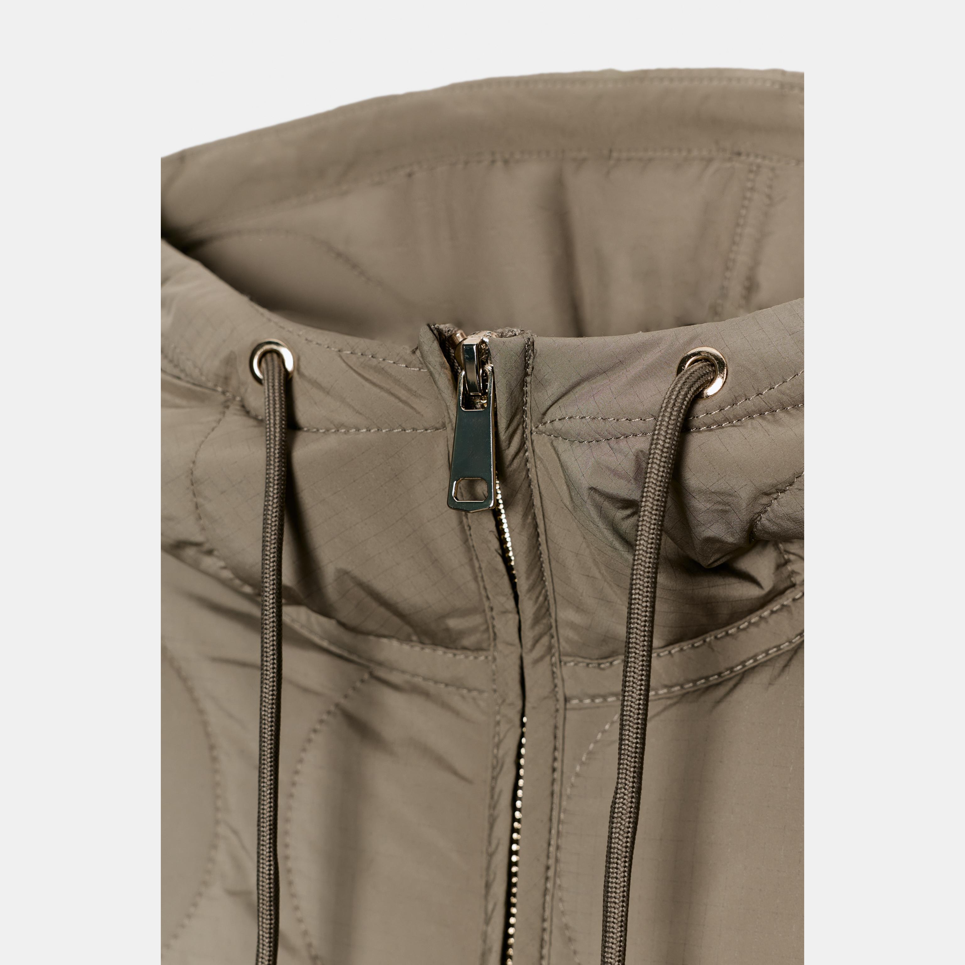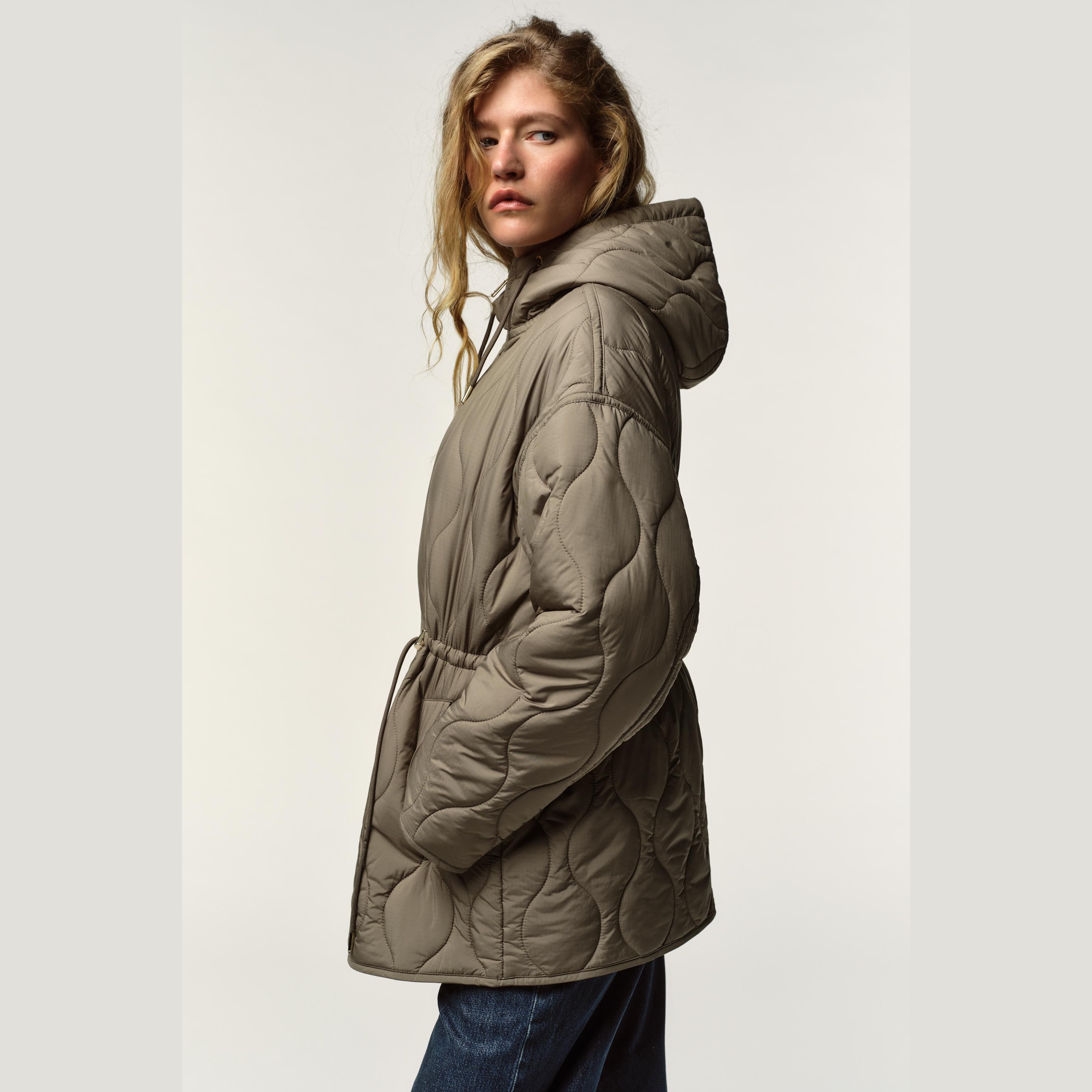 جاكيت نسائي مبطن – لون حيادي (كاكي) – Khaki، مقاوم للماء مع غطاء رأس (Water-Repellent Quilted Jacket with Hoodie)