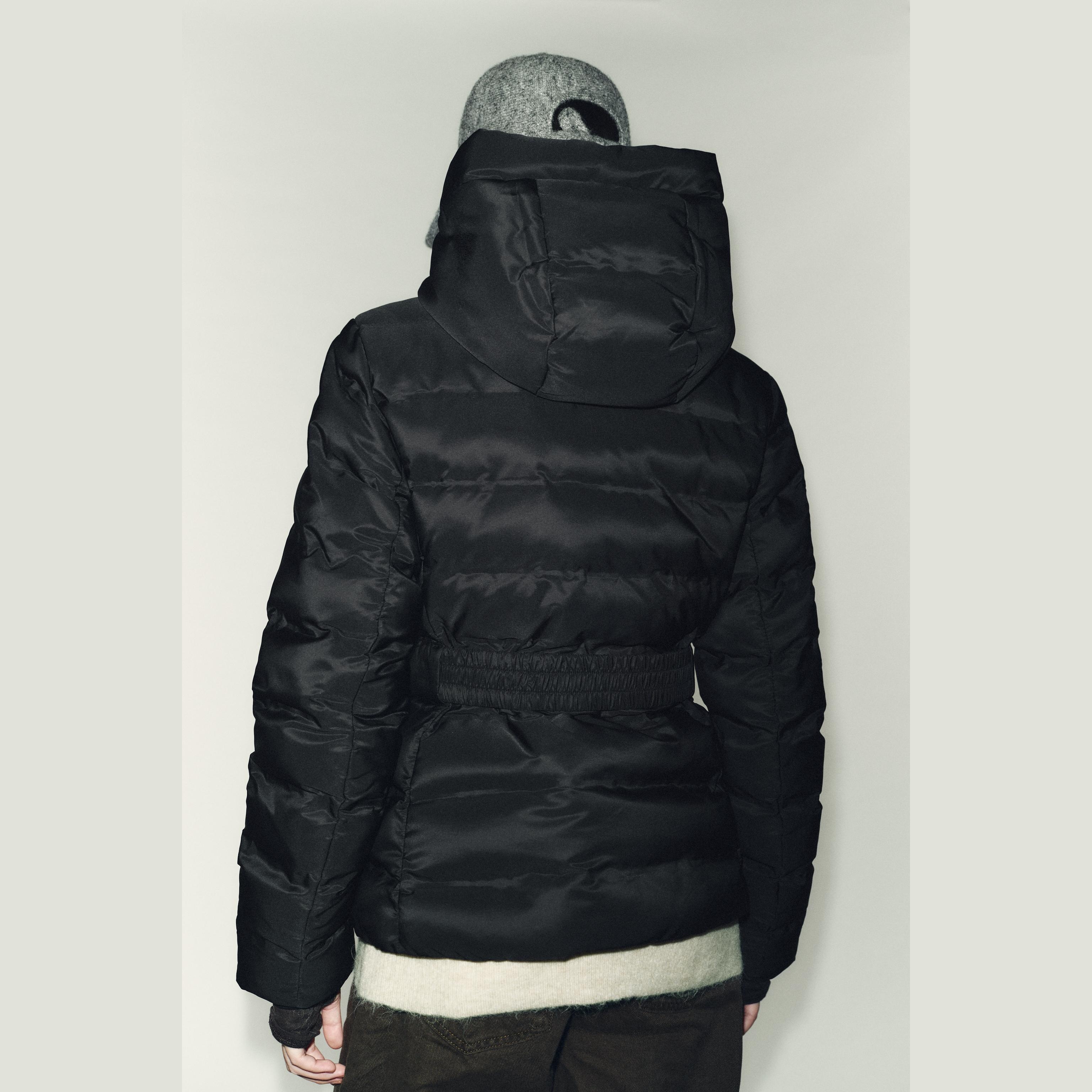 جاكيت أنوراك قصير أنيق بلون أسود كلاسيكي، مصنوع من خامة بوليستر مقاومة للماء والرياح، مع بطانة مبطنة تمنح دفئًا وراحة في الارتداء. يتميز بقصة محددة (Fitted) تمنح مظهرًا عصريًا، بياقة عالية مع غطاء رأس قابل للتعديل، وأكمام طويلة مع حواف مطاطية، مع جيوب أمامية عملية، وحاشية مستقيمة قابلة للتعديل، وإغلاق أمامي بسحاب معدني وأزرار كبس مخفية. مثالي للإطلالات اليومية والأنشطة الخارجية في المواسم الباردة.