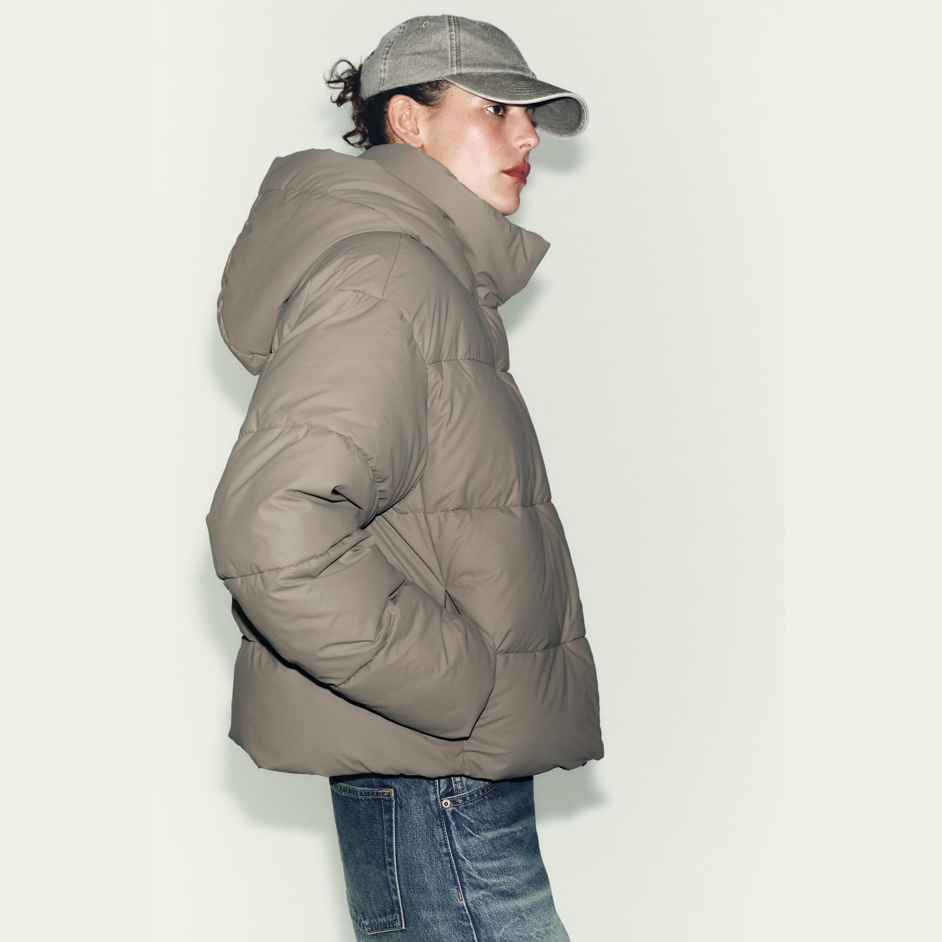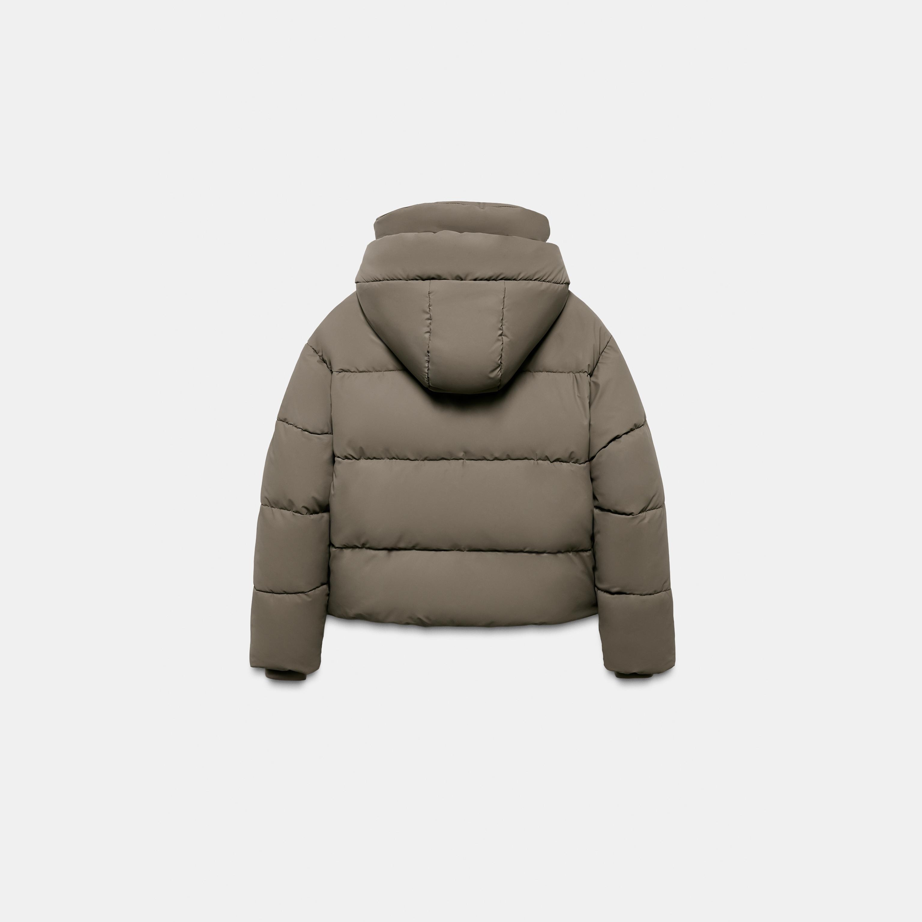 جاكيت قصير مبطن أنيق بلون بني/تاوب غني، مصنوع من خامة بوليستر مع طبقة مطاطية (Rubberised Coating) تمنح مظهرًا عصريًا وحماية إضافية ضد الرياح. يتميز بياقة عالية مع غطاء رأس، وأكمام طويلة، مع جيوب أمامية عملية، وحاشية قابلة للتعديل بواسطة أربطة جانبية، وإغلاق أمامي بسحاب حراري مع أزرار مغناطيسية. تصميم مثالي للإطلالات اليومية في المواسم الباردة.