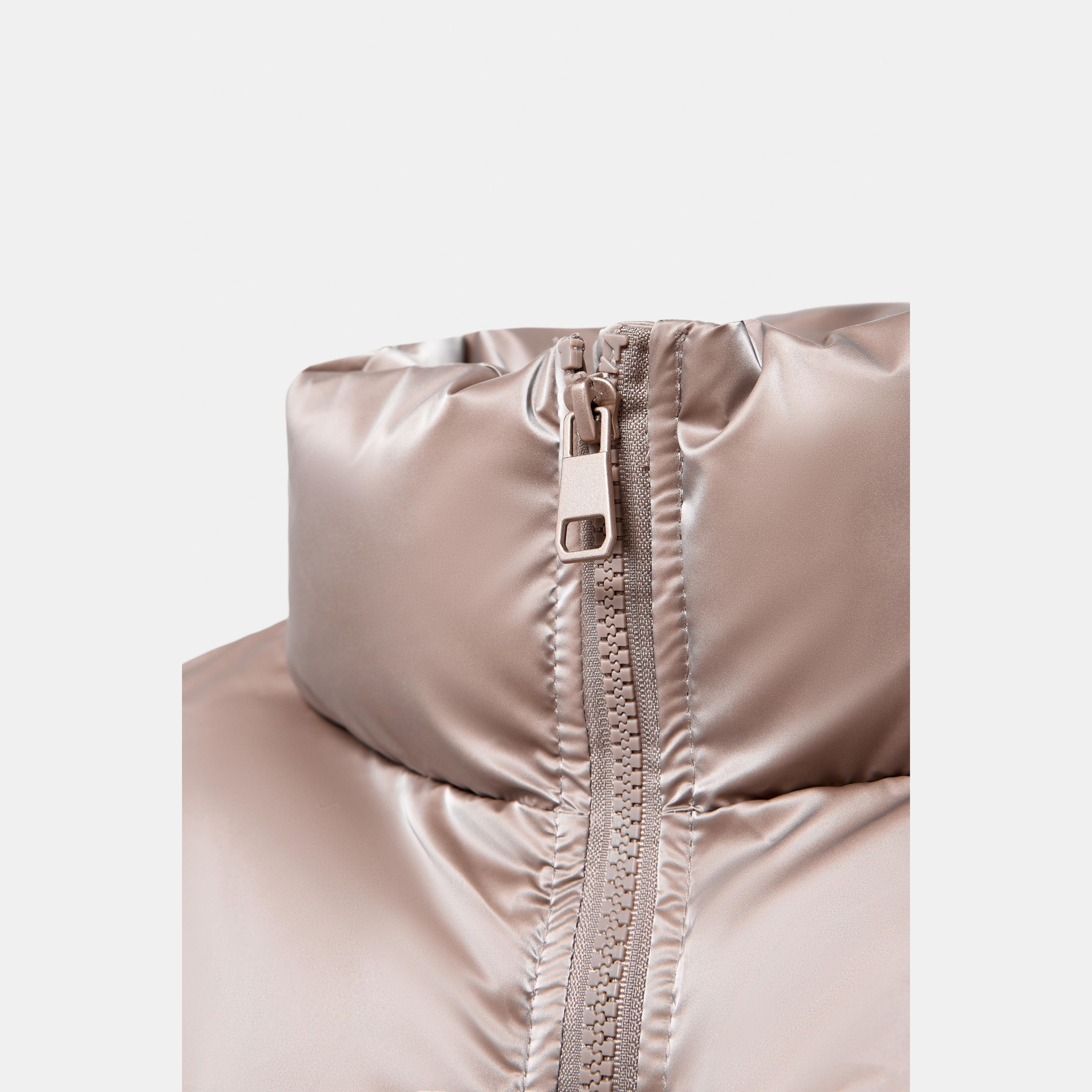 جاكيت أنوراك مبطن – لون حيادي (إكروا) – Ecru، بتأثير لامع مقاوم للماء والرياح (Shiny-Effect Water-Repellent Windproof Anorak)