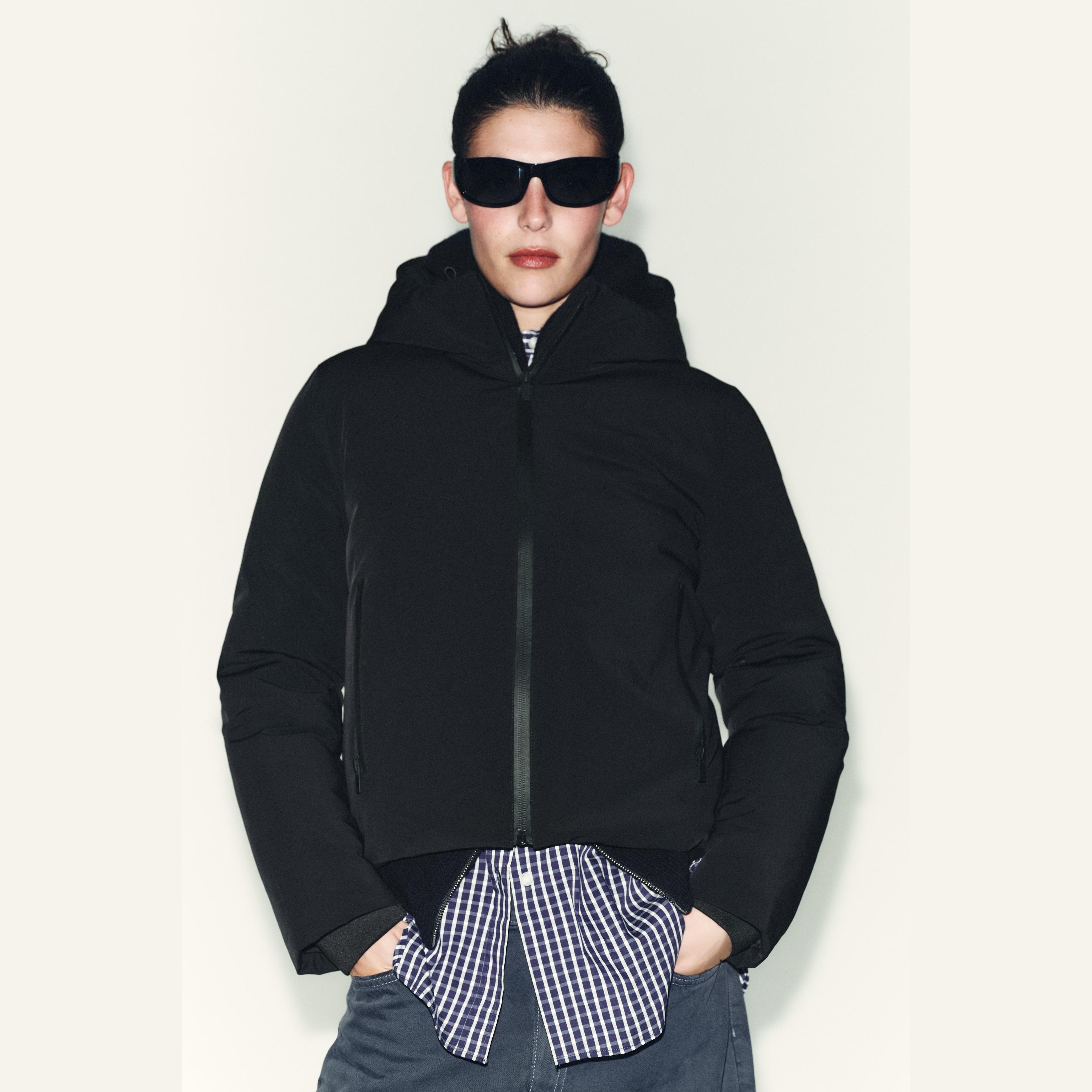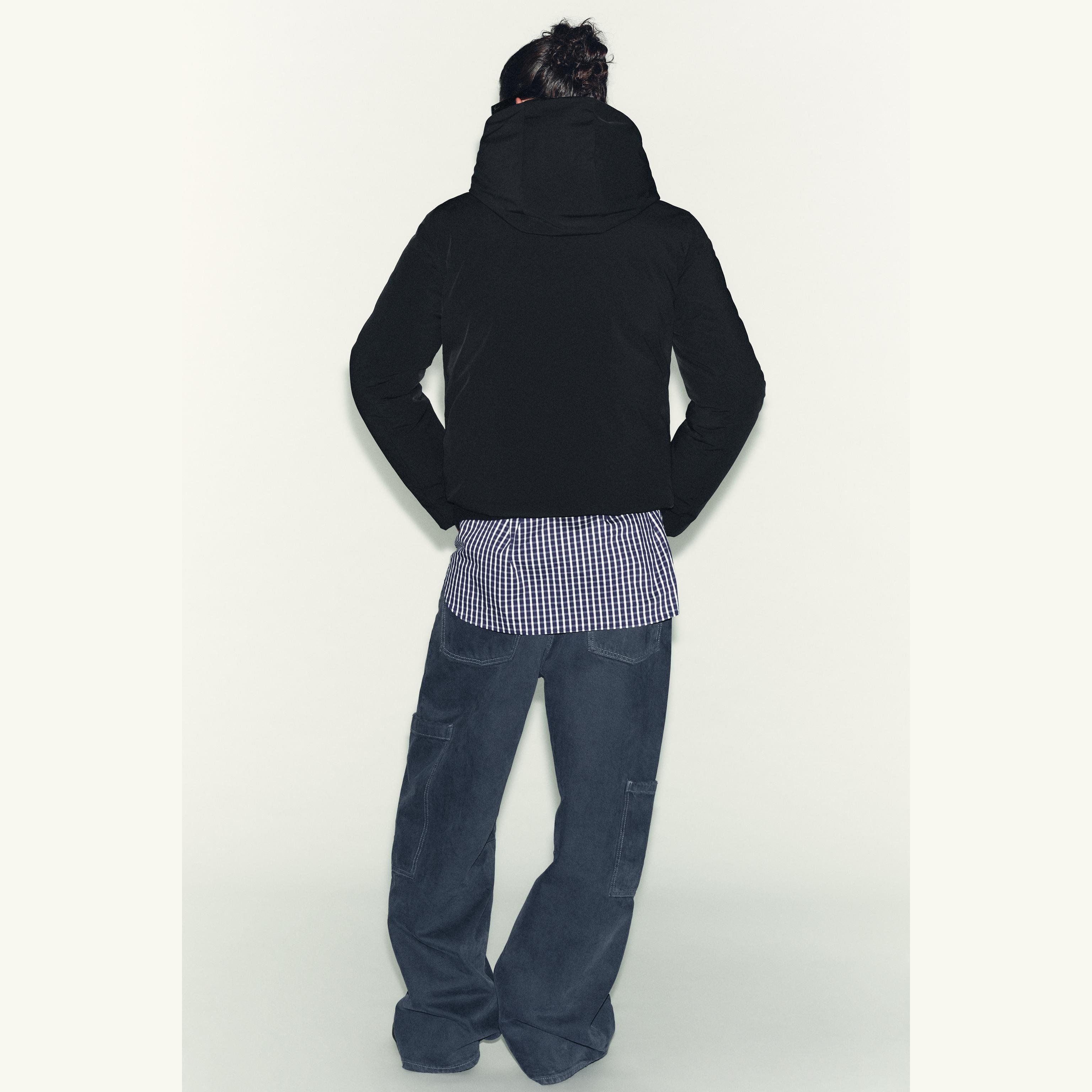 جاكيت أنوراك عملي بلون أسود كلاسيكي، مصنوع من خامة بوليستر مقاومة للماء والرياح، مع بطانة مبطنة تمنح دفئًا وراحة في الارتداء. يتميز بياقة عالية مع غطاء رأس قابل للتعديل، وأكمام طويلة مع حواف مطاطية داخلية، مع جيوب أمامية عملية، وحاشية مستقيمة قابلة للتعديل، وإغلاق أمامي بسحاب حراري. مثالي للإطلالات اليومية والأنشطة الخارجية في المواسم الباردة.