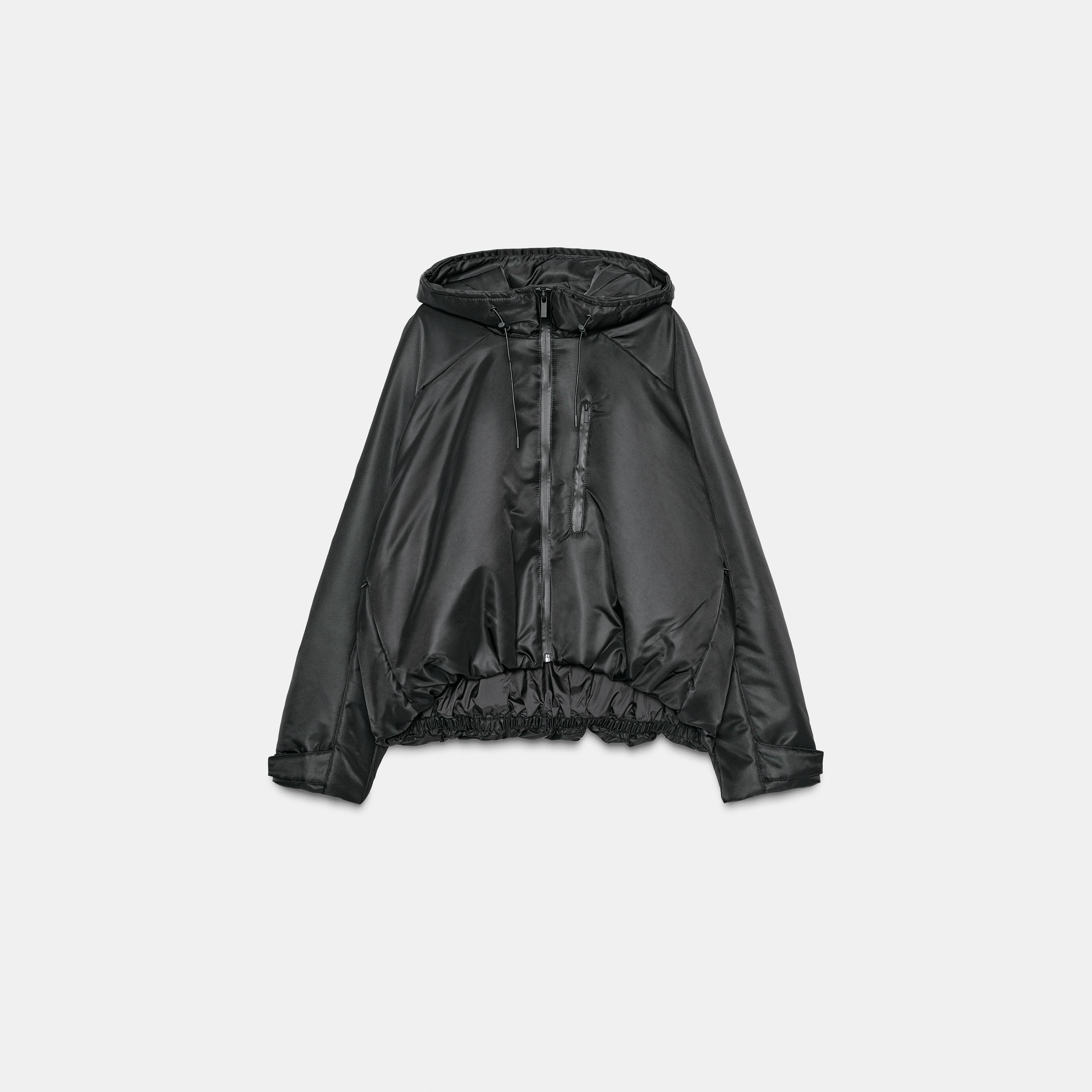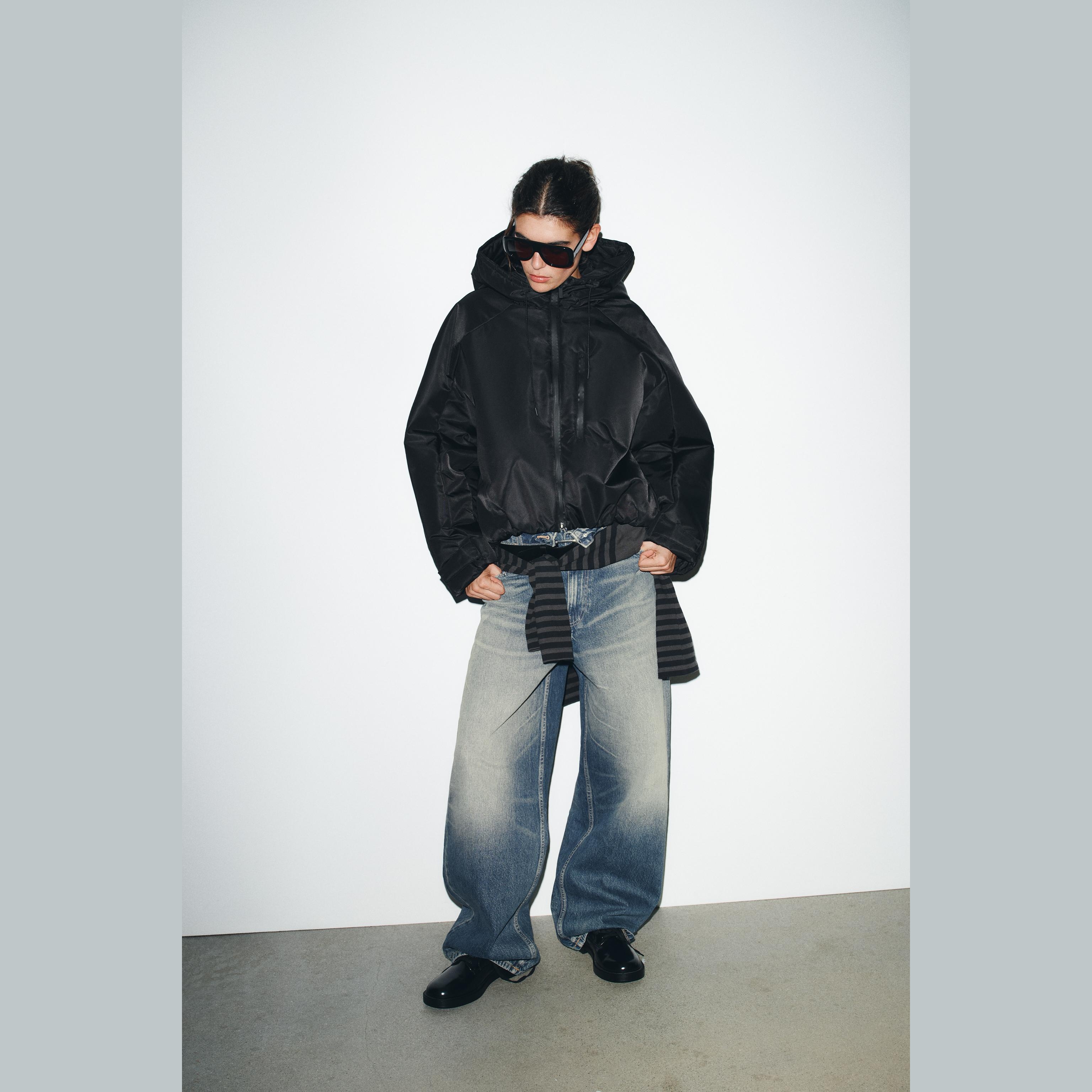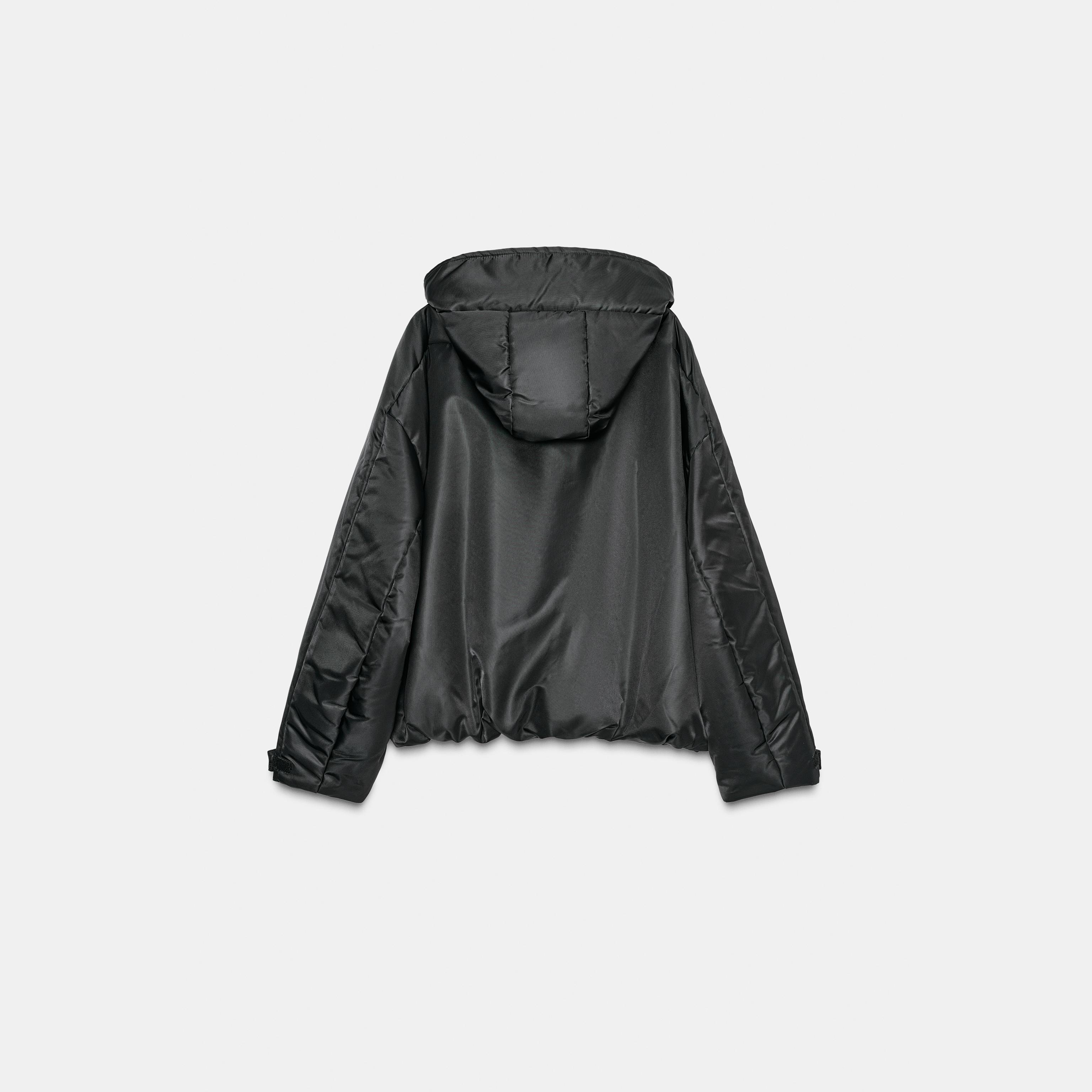 جاكيت مبطن قصير أنيق بلون أسود كلاسيكي، مصنوع من خامة بوليستر مقاومة للماء والرياح، مع بطانة مبطنة تمنح دفئًا وراحة في الارتداء. يتميز بياقة عالية مع غطاء رأس عملي، وأكمام طويلة مع حواف مطاطية، مع جيوب أمامية بسحاب، وحاشية مستقيمة قابلة للتعديل، وإغلاق أمامي بسحاب معدني. تصميم مثالي للإطلالات اليومية والأنشطة الخارجية في المواسم الباردة.