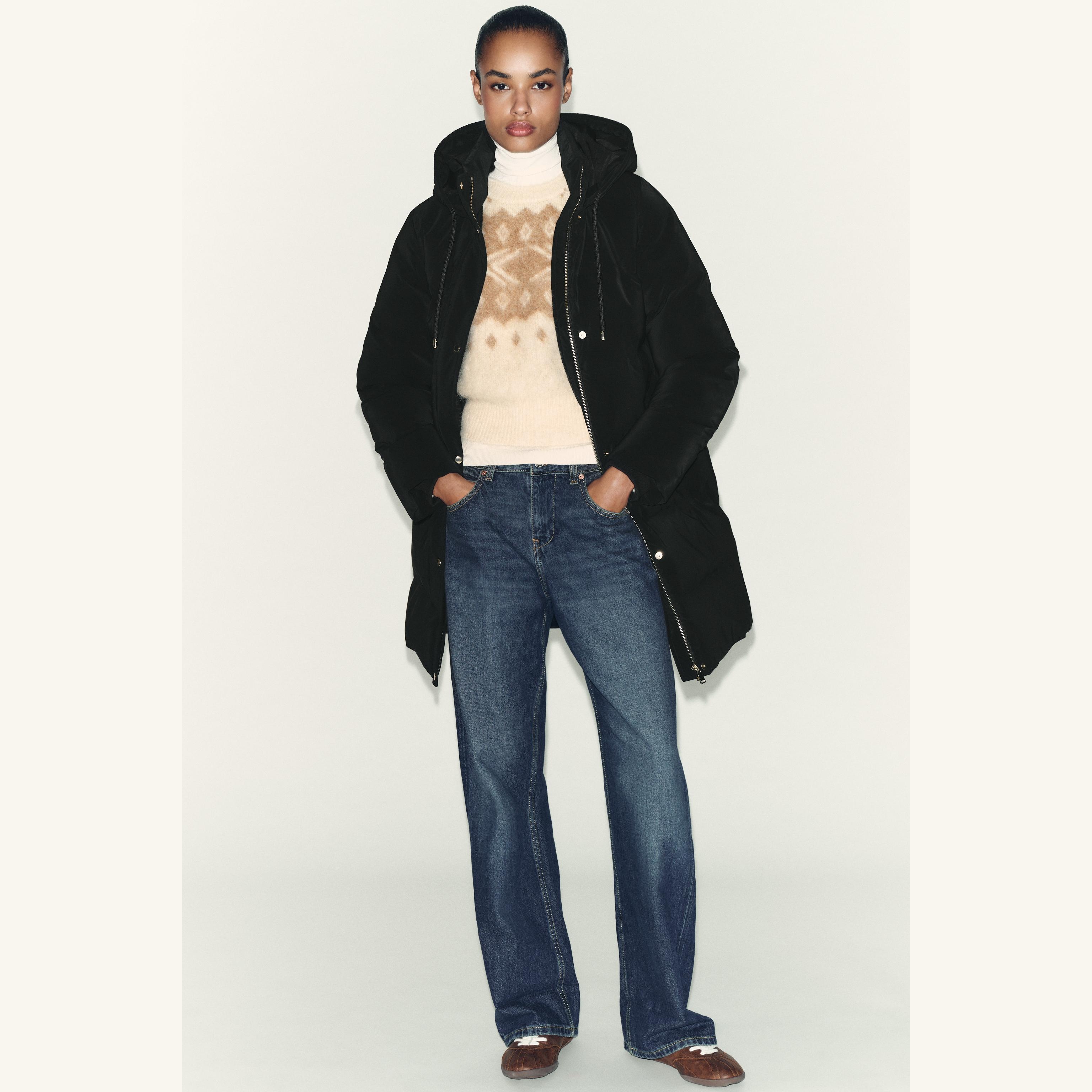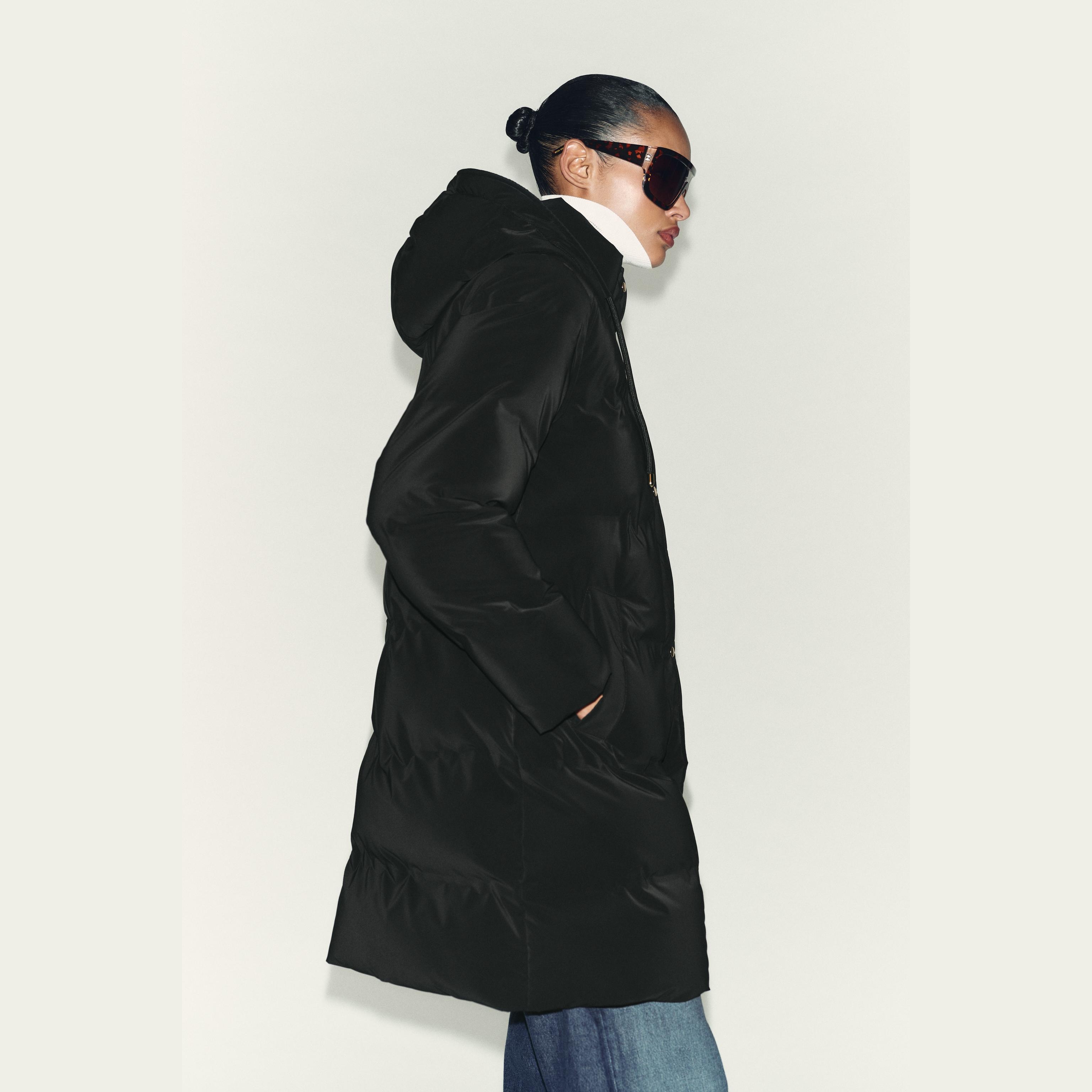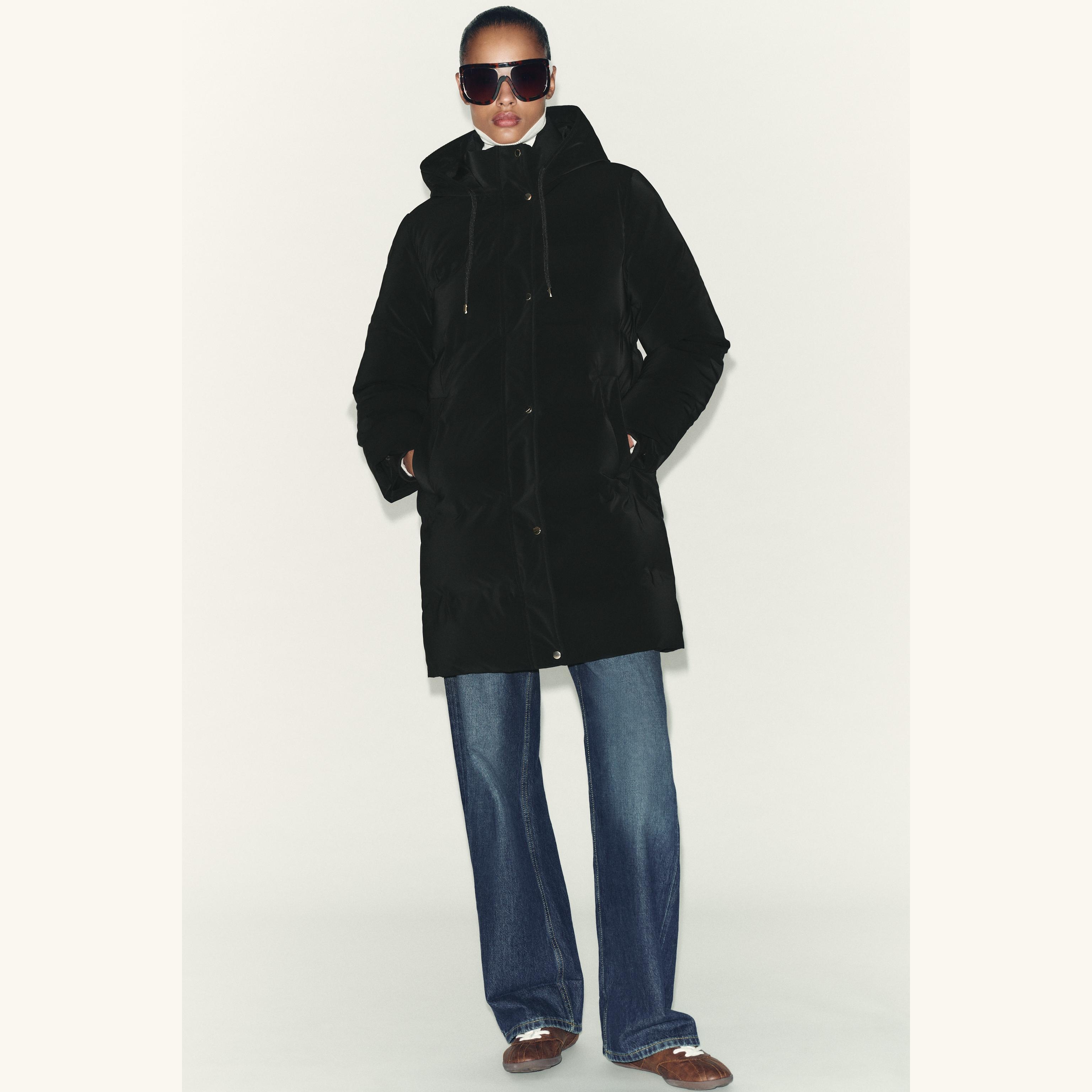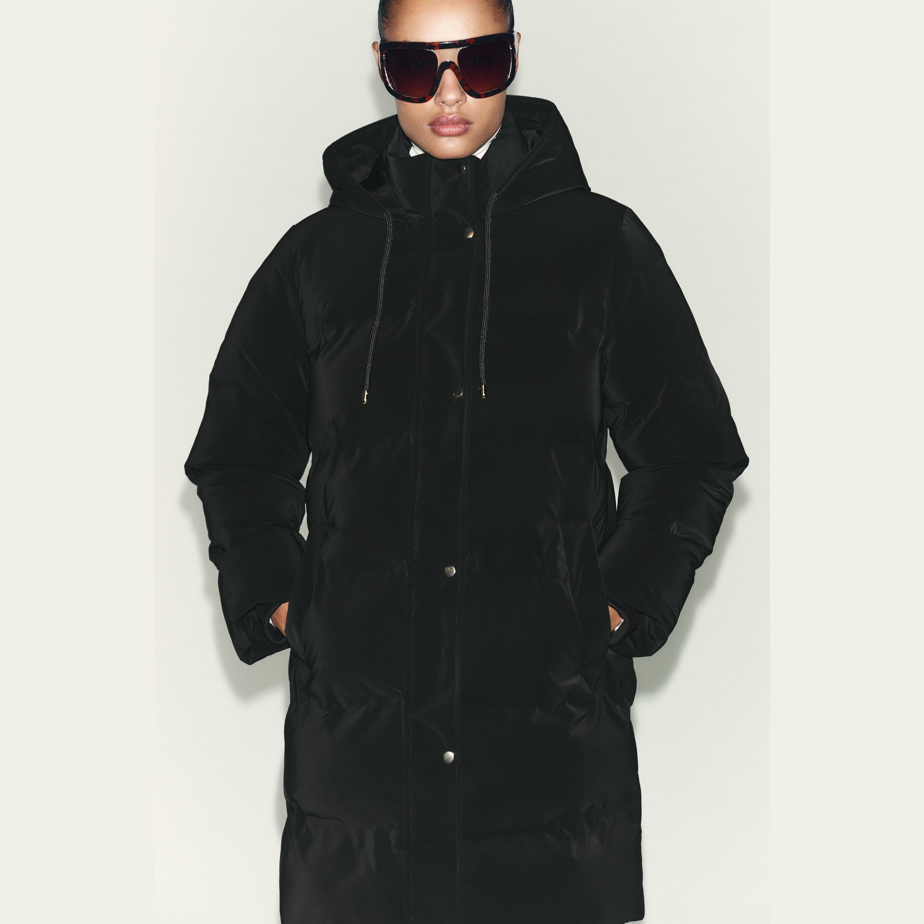 جاكيت أنوراك نصف طويل عملي بلون أسود كلاسيكي، مصنوع من خامة بوليستر مع طبقة مطاطية (Rubberised Coating) تمنح مظهرًا عصريًا وحماية إضافية ضد الرياح. يتميز بياقة عالية مع غطاء رأس قابل للتعديل، وأكمام طويلة مع بطانة داخلية عند المعصم، مع جيوب أمامية مبطنة بملمس فليسي، وحاشية مستقيمة قابلة للتعديل، وإغلاق أمامي بسحاب معدني وأزرار كبس مخفية. يوفر دفئًا وراحة في الطقس البارد، مع تصميم أنيق يناسب الإطلالات اليومية والأنشطة الخارجية.