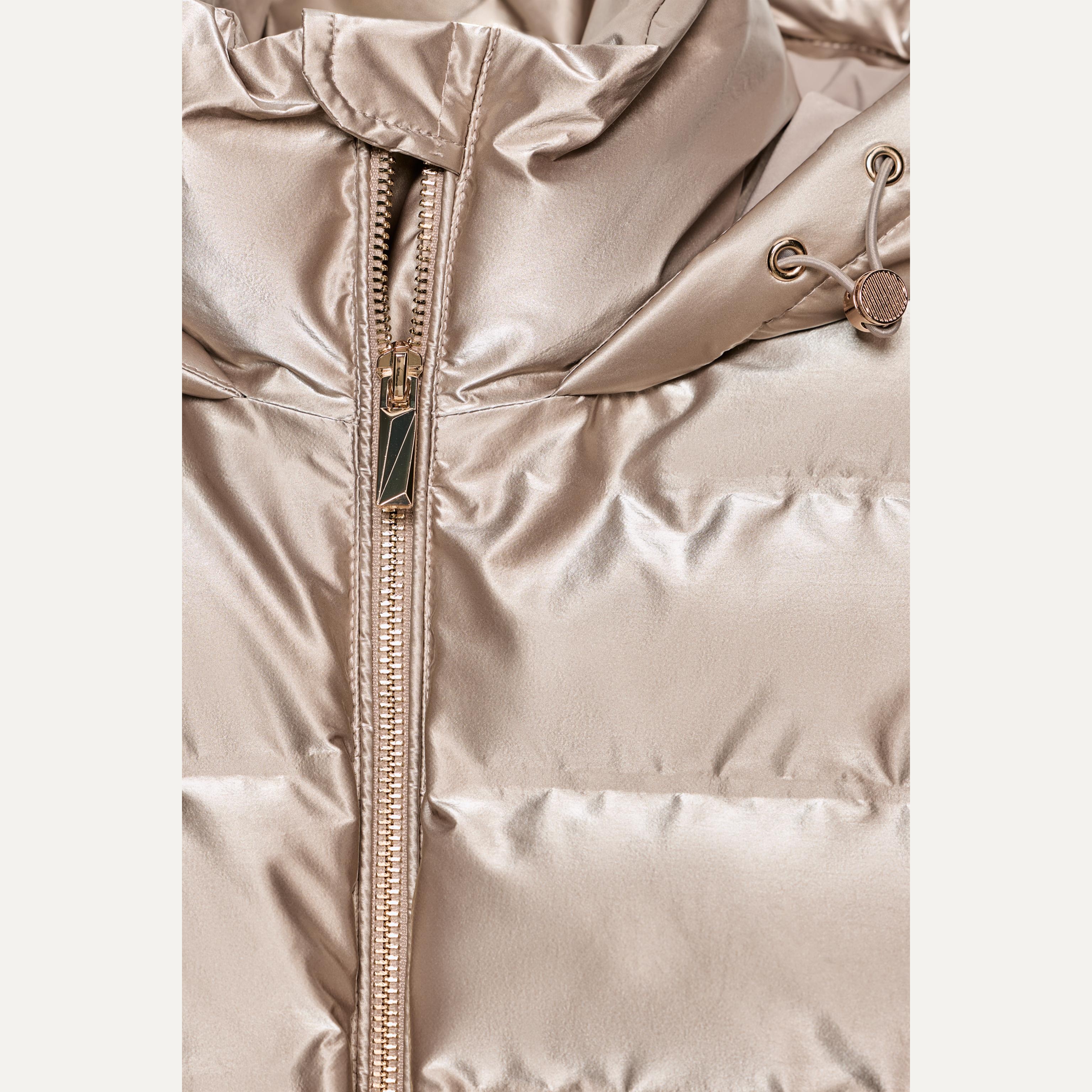 جاكيت أنوراك قصير أنيق بقصّة ضيقة بلون بيج طبيعي، مصنوع من خامة بوليستر مقاومة للرياح، مع بطانة مبطنة تمنح دفئًا وراحة في الارتداء. يتميز بياقة عالية مع غطاء رأس عملي قابل للتعديل، وأكمام طويلة مع بطانة داخلية عند المعصم، مع جيوب أمامية بسحاب، وحاشية مستقيمة قابلة للتعديل، وإغلاق أمامي بسحاب معدني. تصميم عصري يناسب الإطلالات اليومية والأنشطة الخارجية في المواسم الباردة.