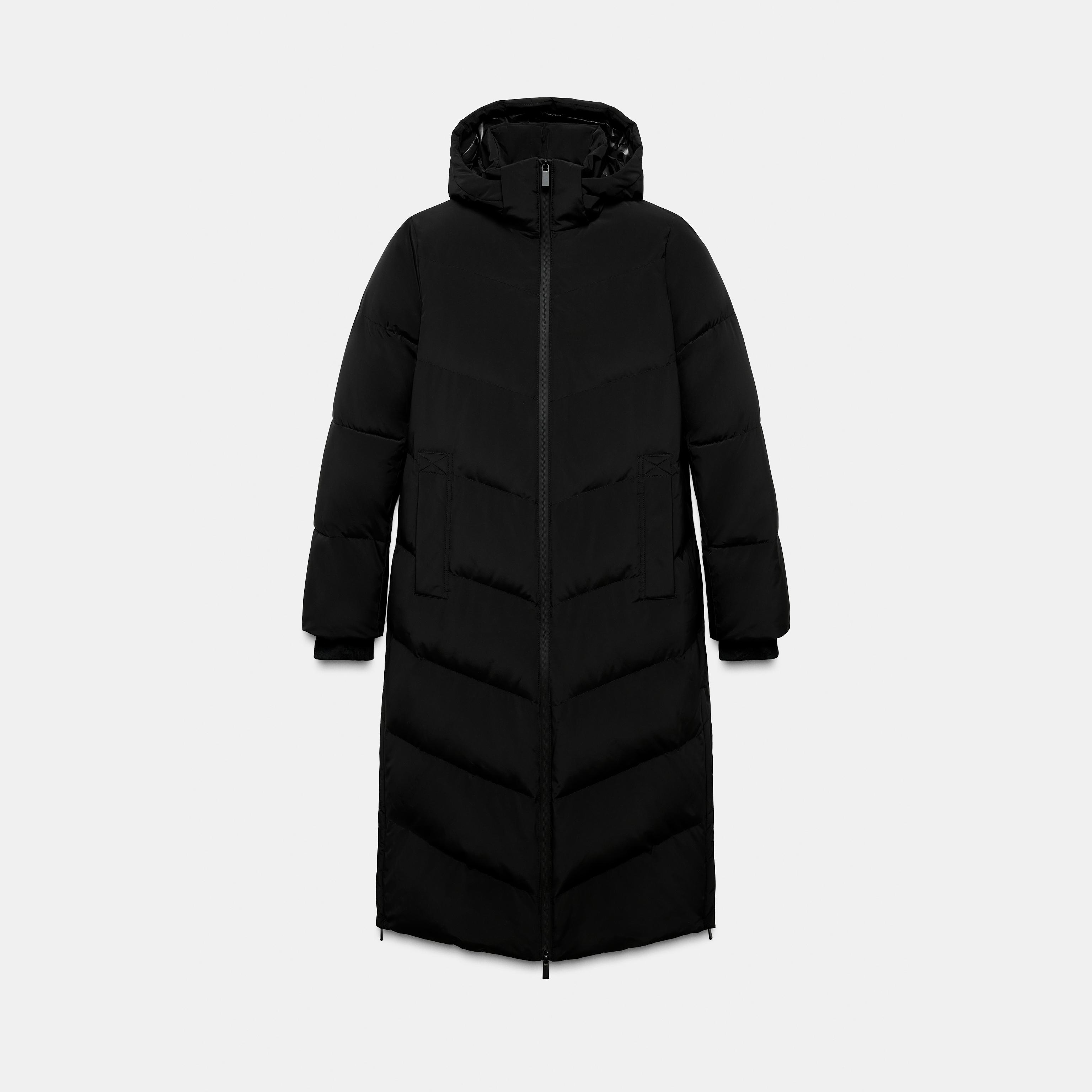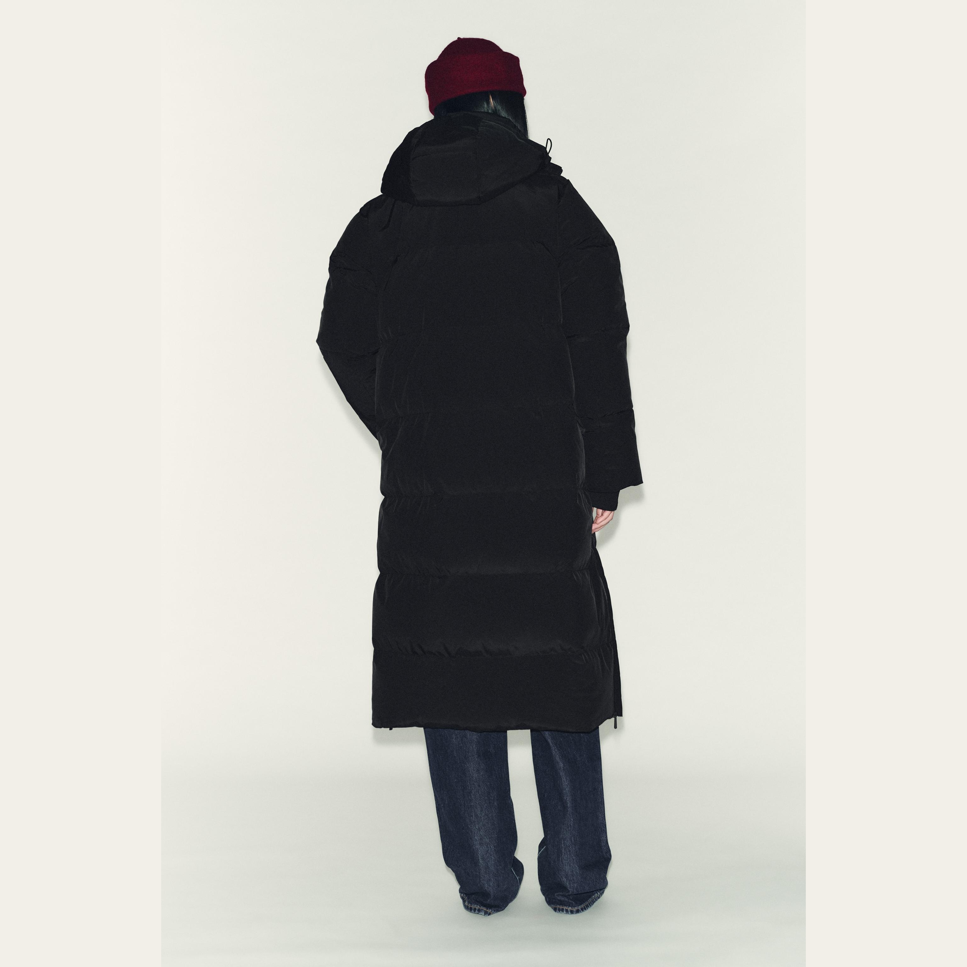 جاكيت مبطن طويل بغطاء رأس – لون كلاسيكي (أسود) – Black، مقاوم للماء والرياح (Long Water-Repellent & Windproof Hooded Down Puffer Jacket)