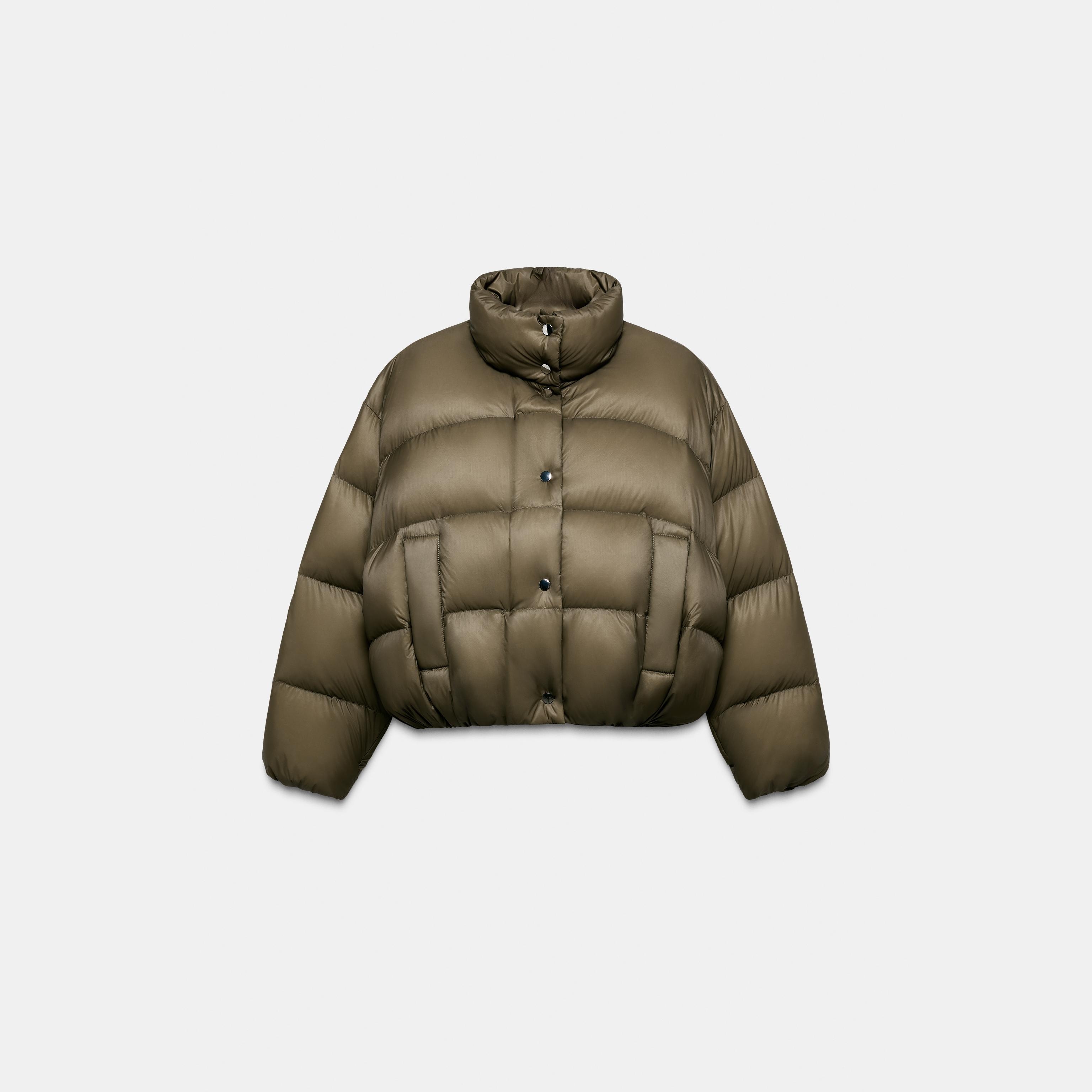 جاكيت مبطن قصير – لون طبيعي (كاكي) – Khaki، مقاوم للماء والرياح (Short Water-Repellent & Windproof Puffer Jacket)