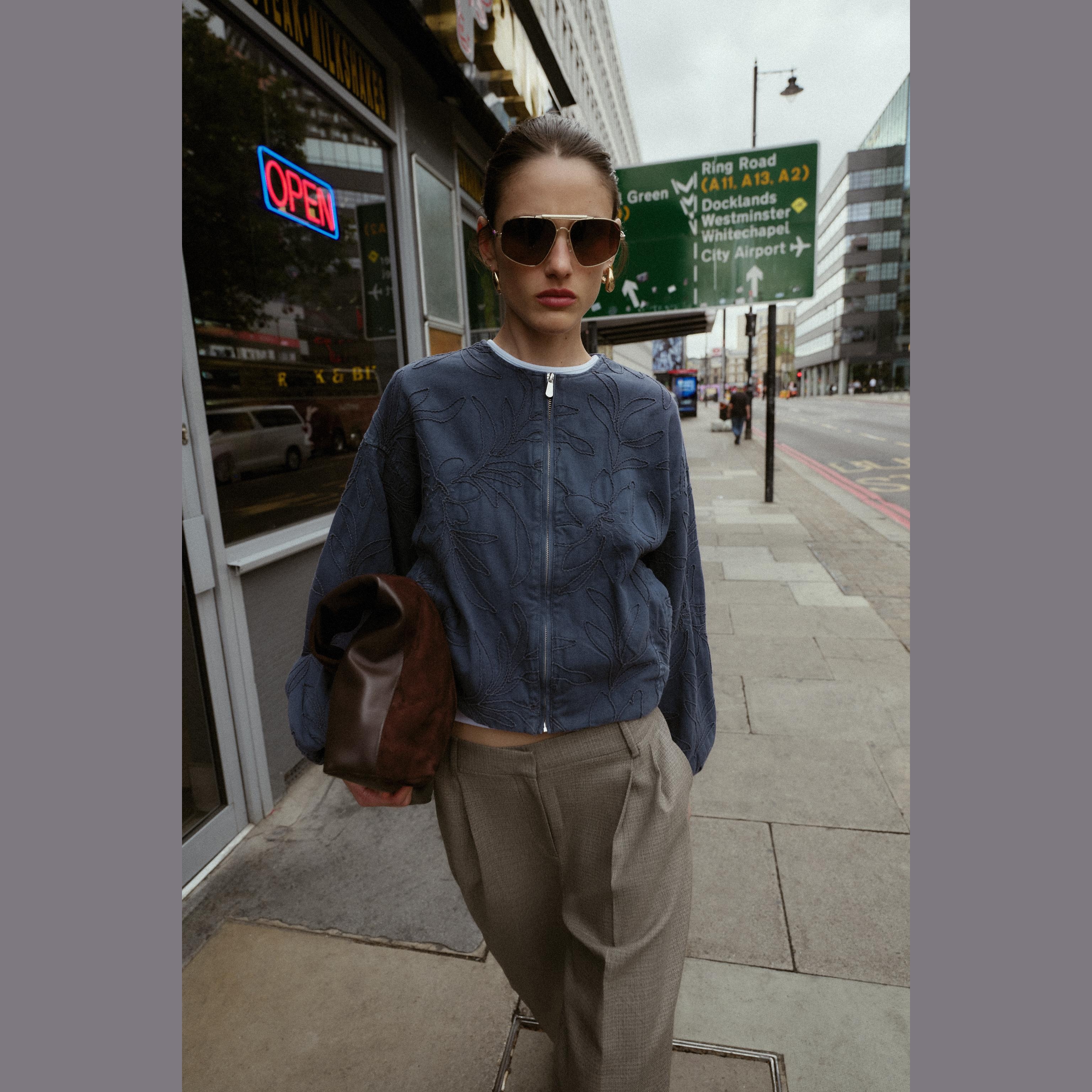 - تصميم بومبر كلاسيكي مع لمسة حديثة بالتطريزات