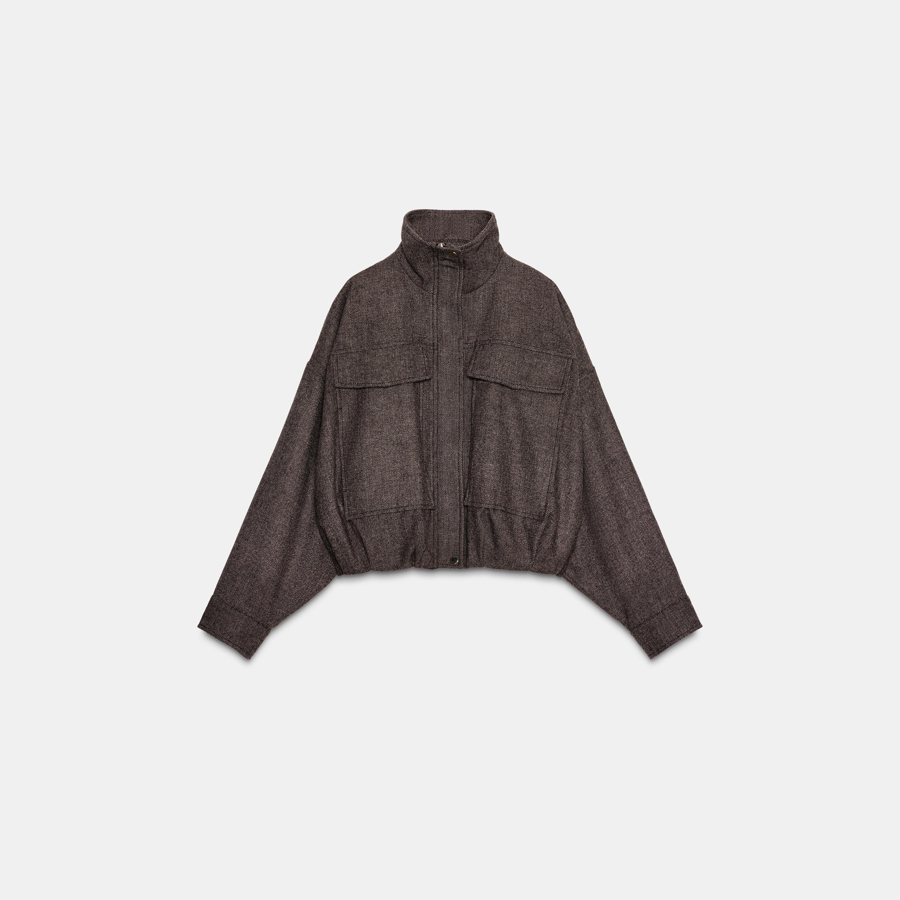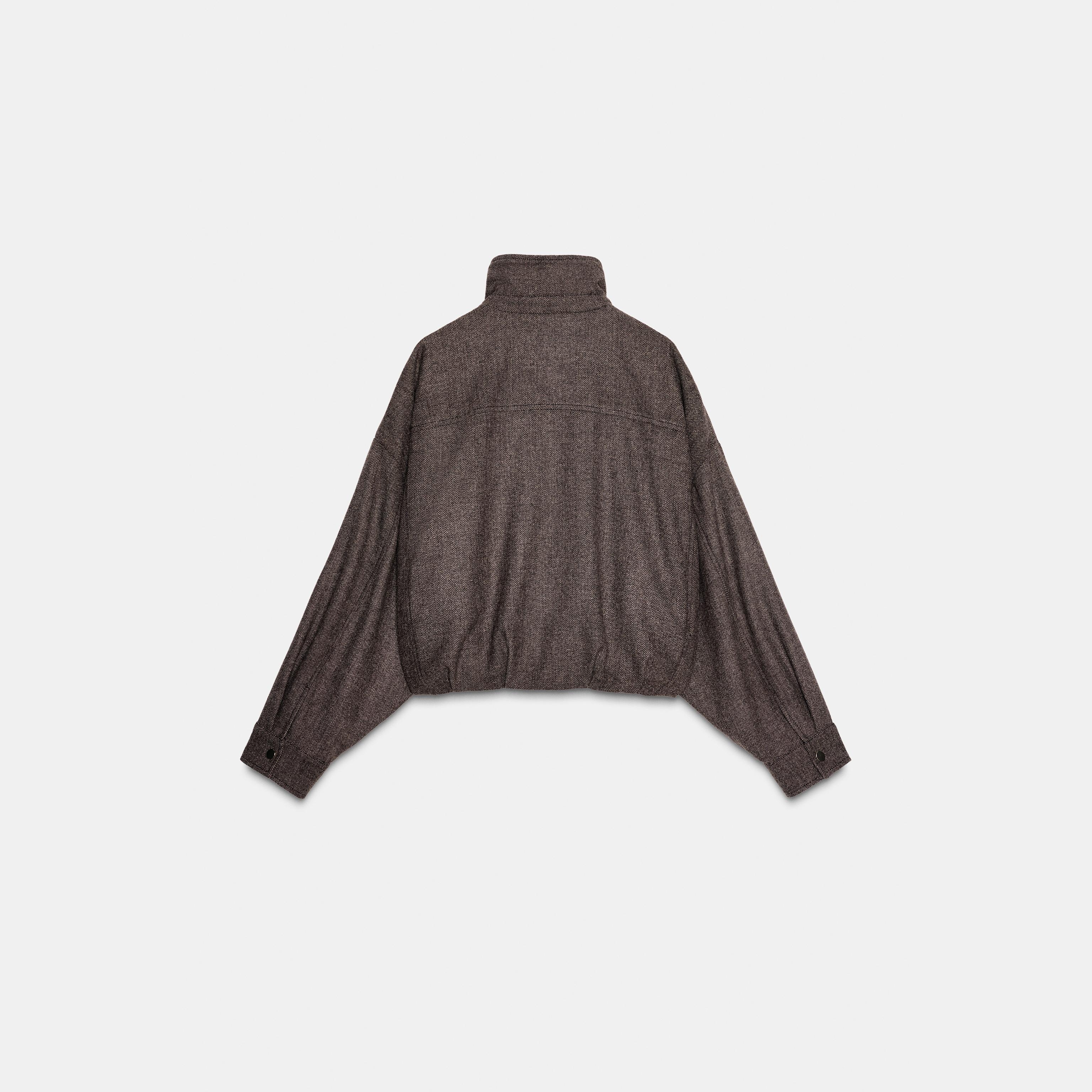 جاكيت بومبر بالون بنقشة هيرينغبون – لون طبيعي (بني) – Brown (Herringbone Balloon Bomber Jacket)