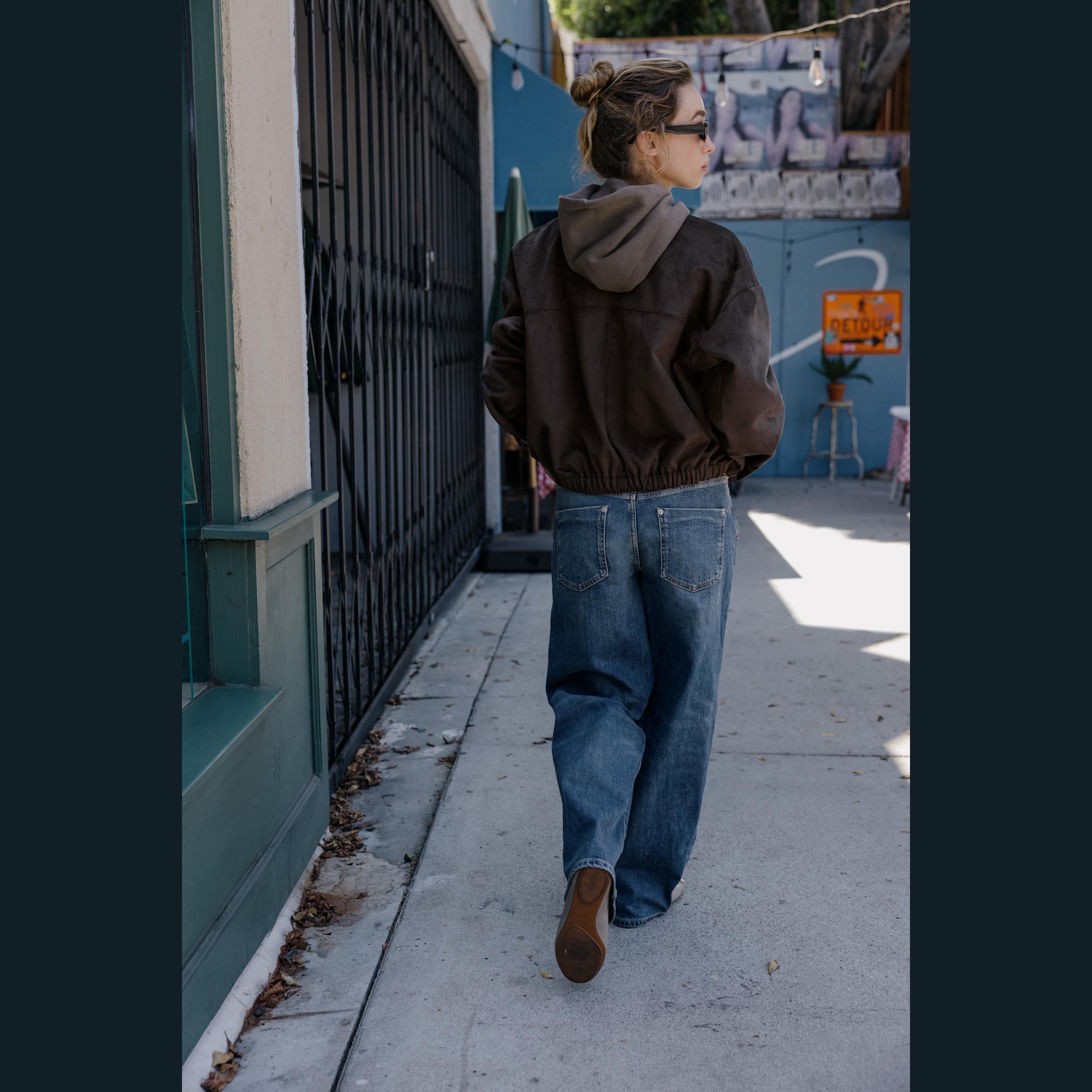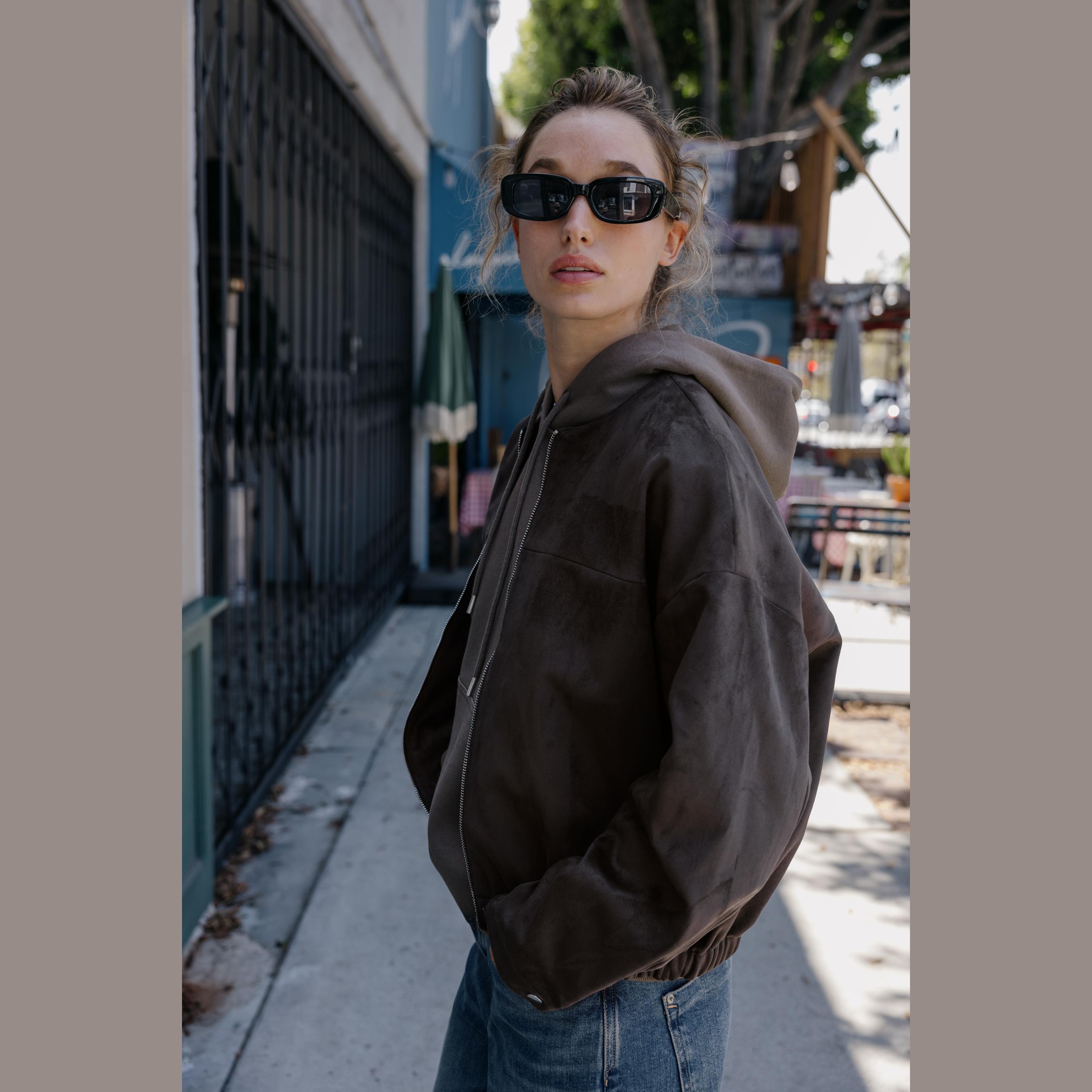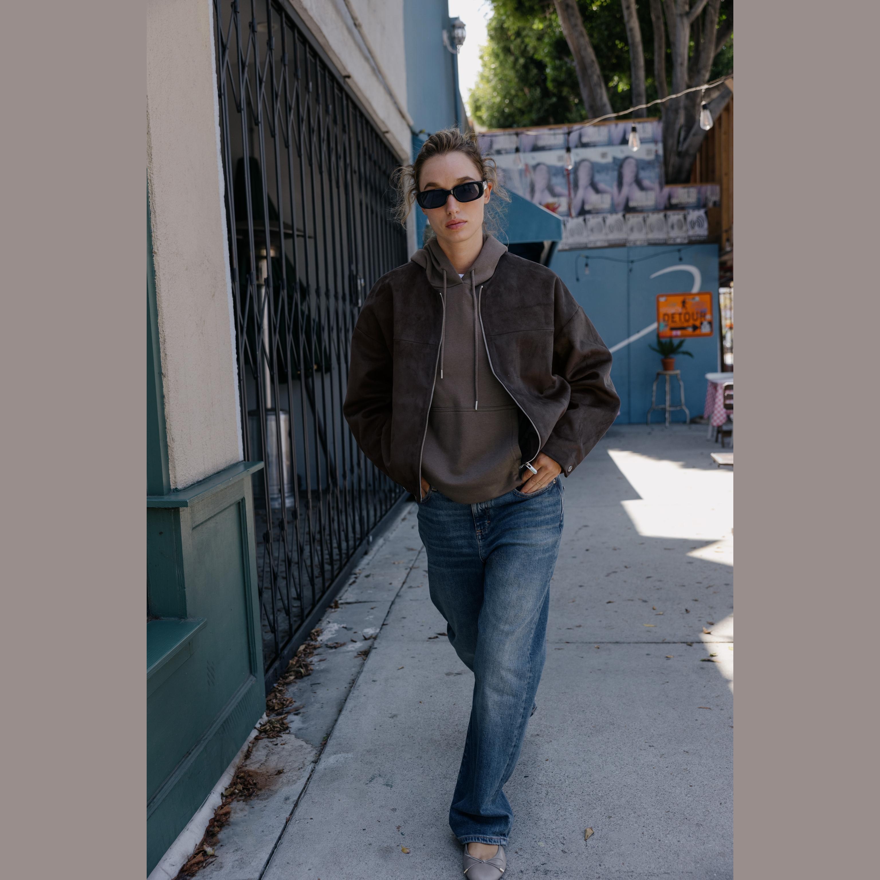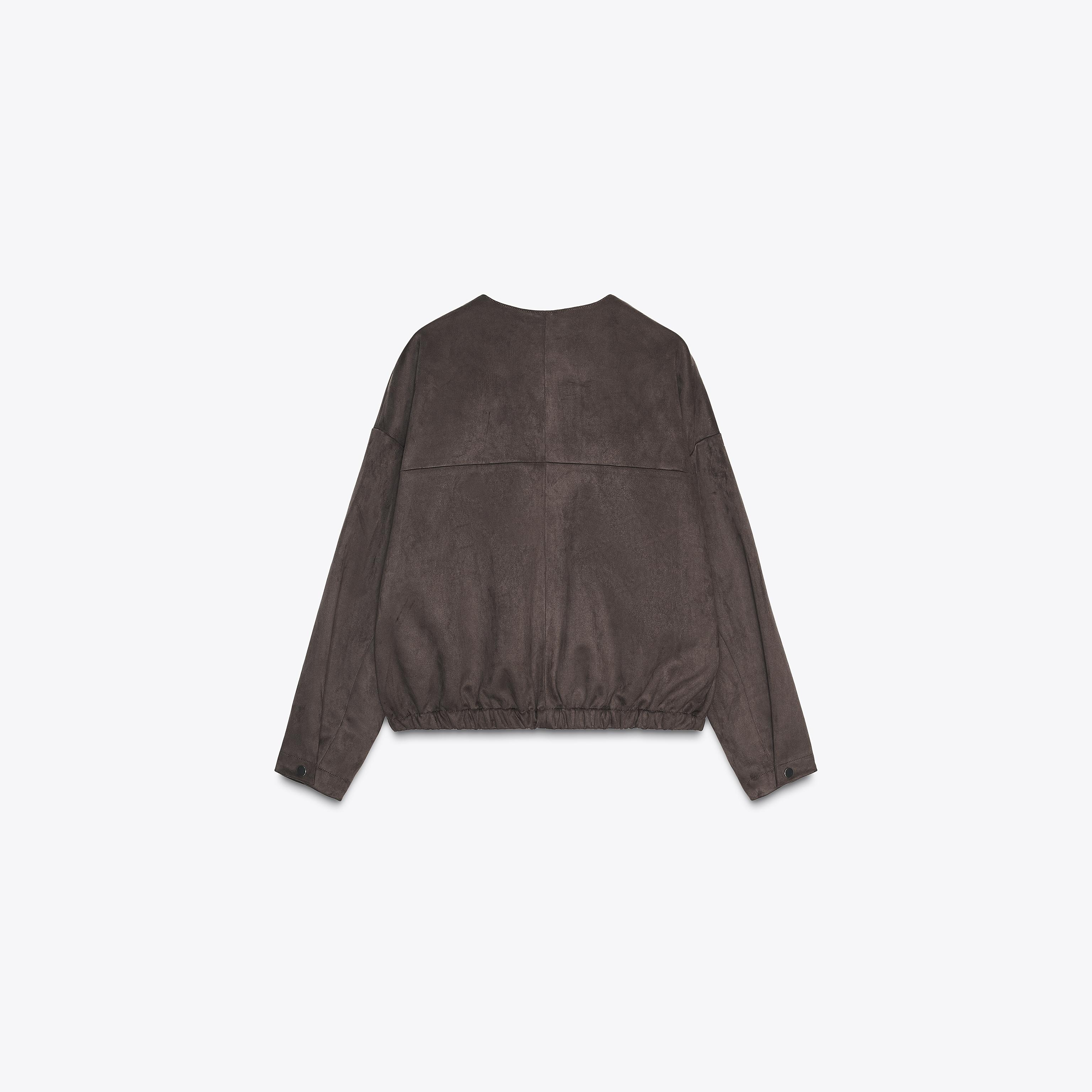 جاكيت بومبر من الجلد الصناعي – لون طبيعي (شوكولاته) – Chocolate (Faux Suede Bomber Jacket)