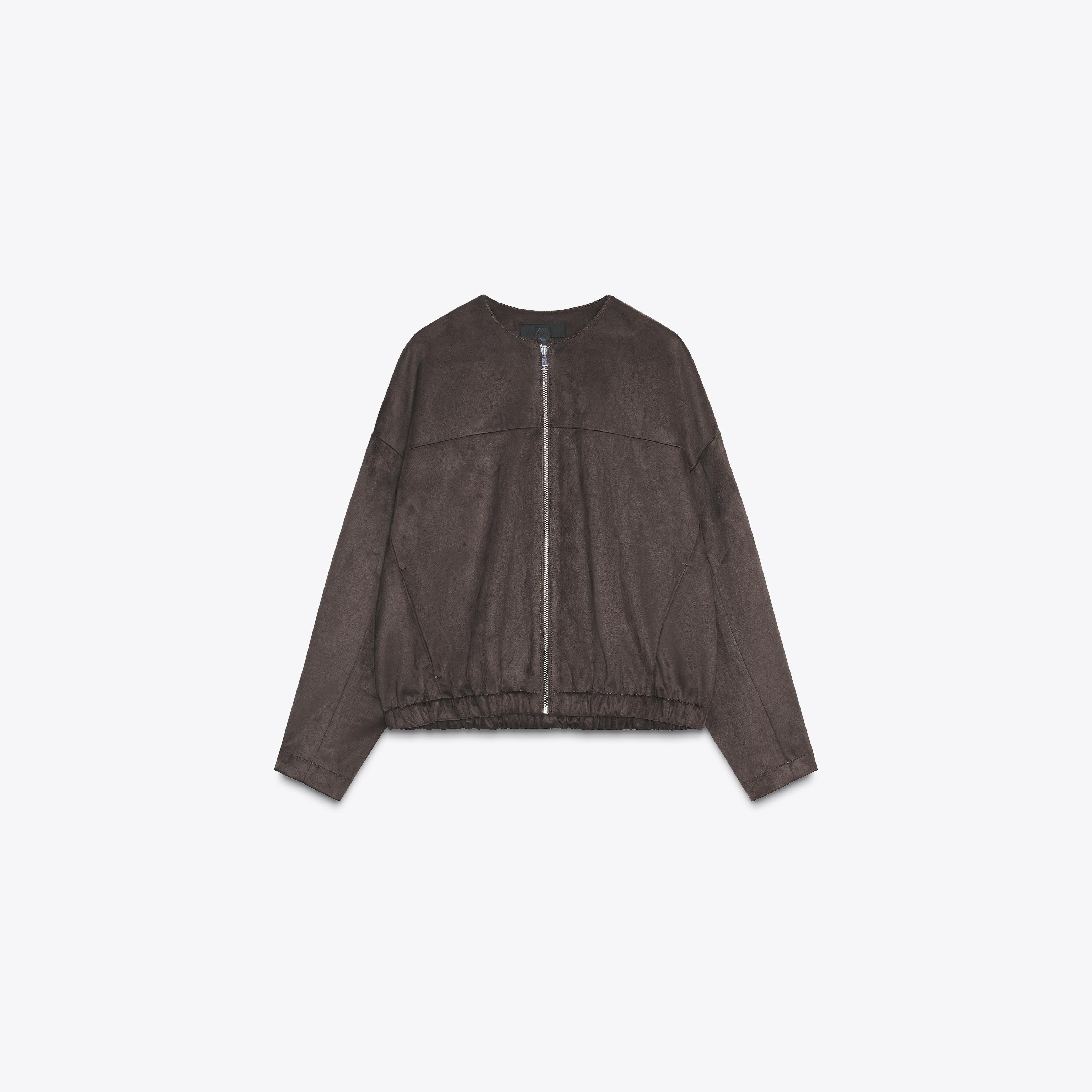 - التصميم: جاكيت بومبر من الجلد الصناعي (Faux Suede Bomber Jacket)