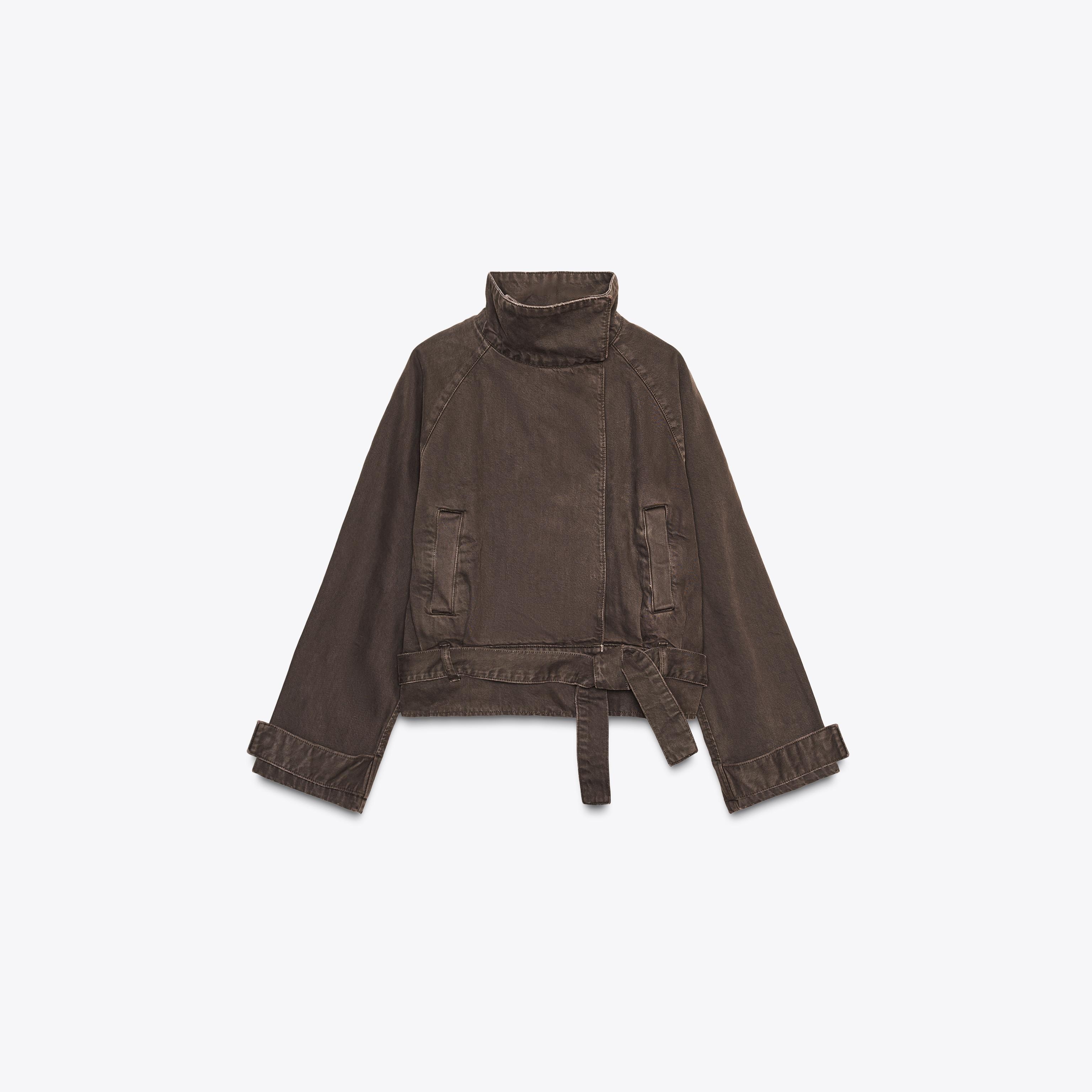 جاكيت قطني مع حزام – لون طبيعي (بني) – Brown (Belted Cotton Jacket)
