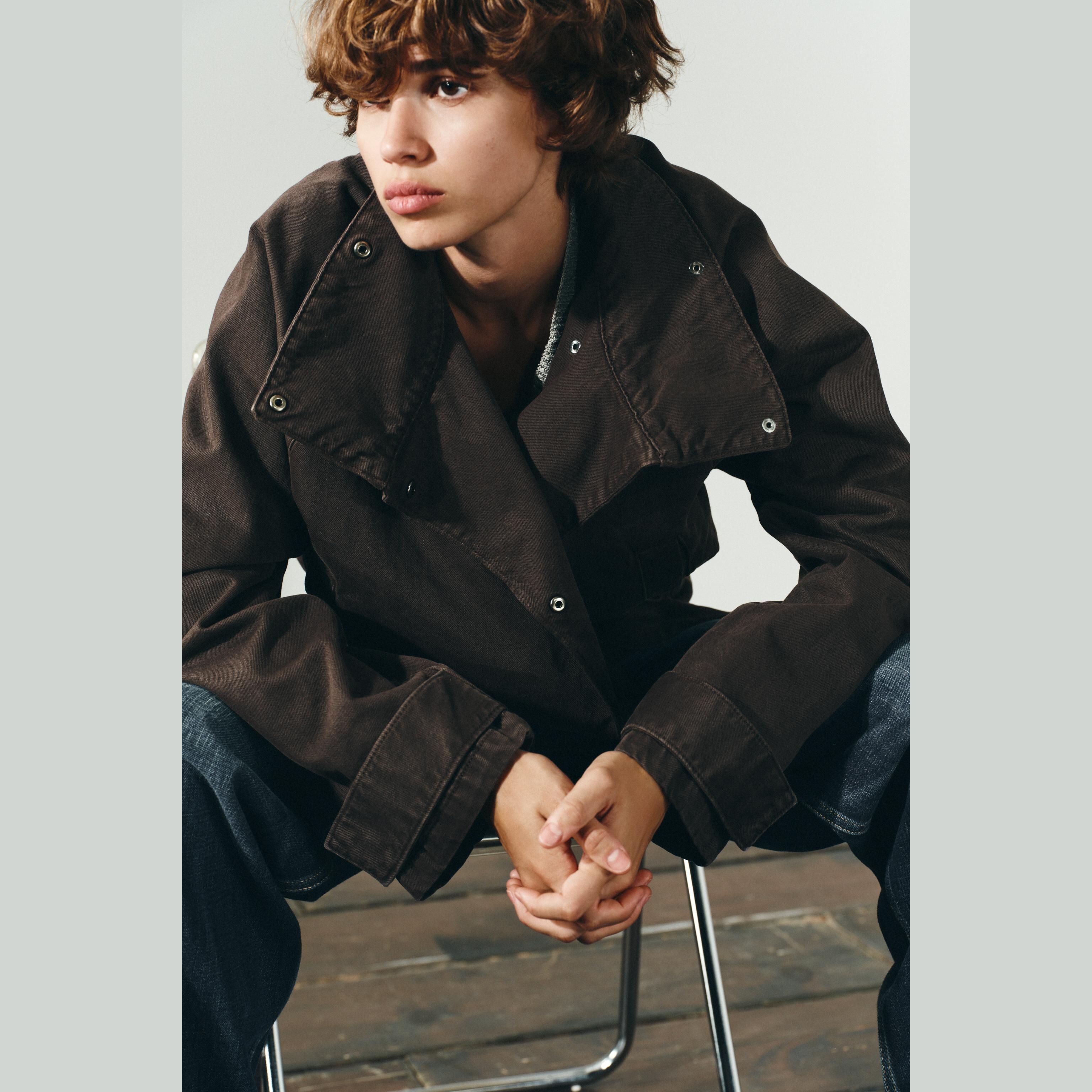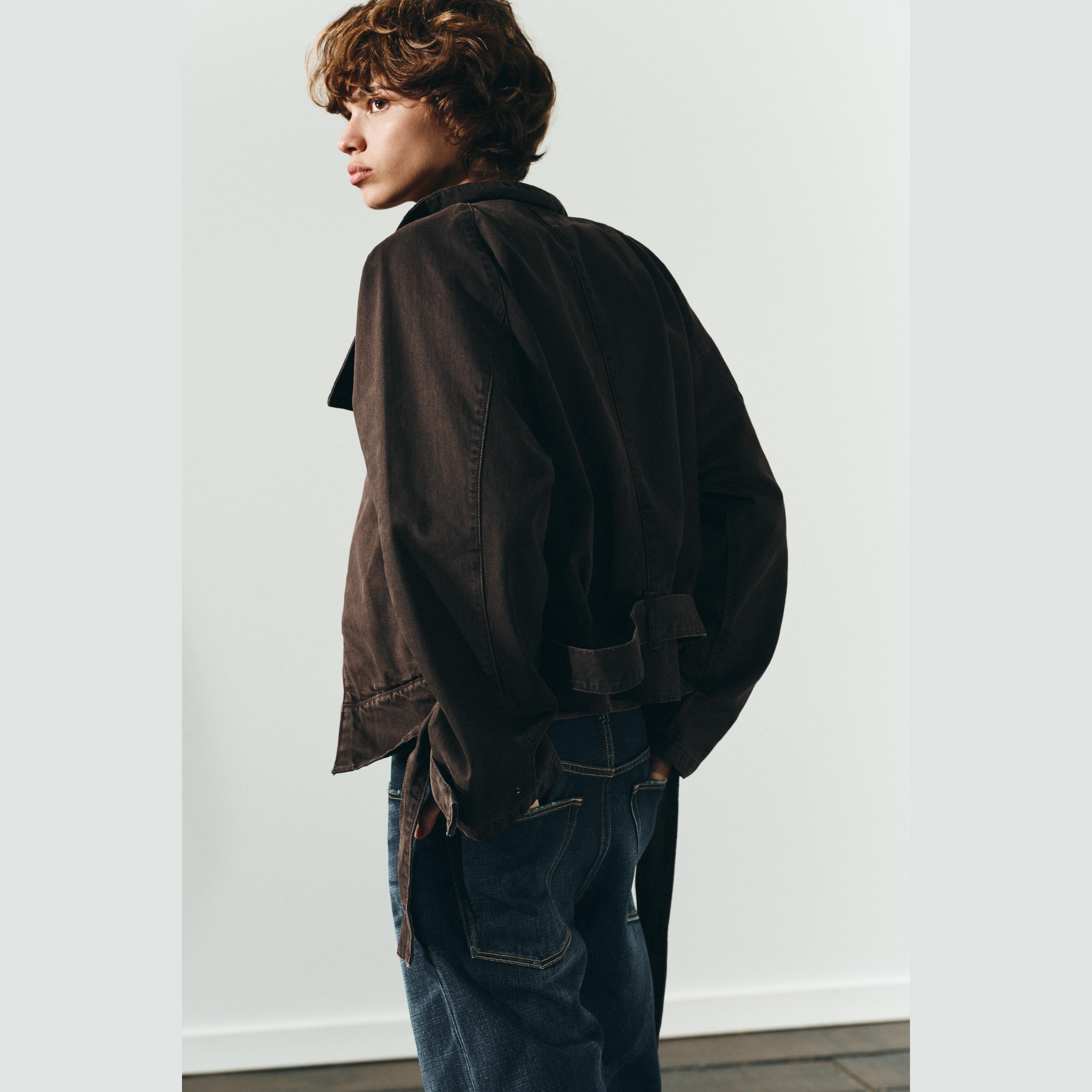 - التصميم: جاكيت قطني مع حزام (Belted Cotton Jacket)
