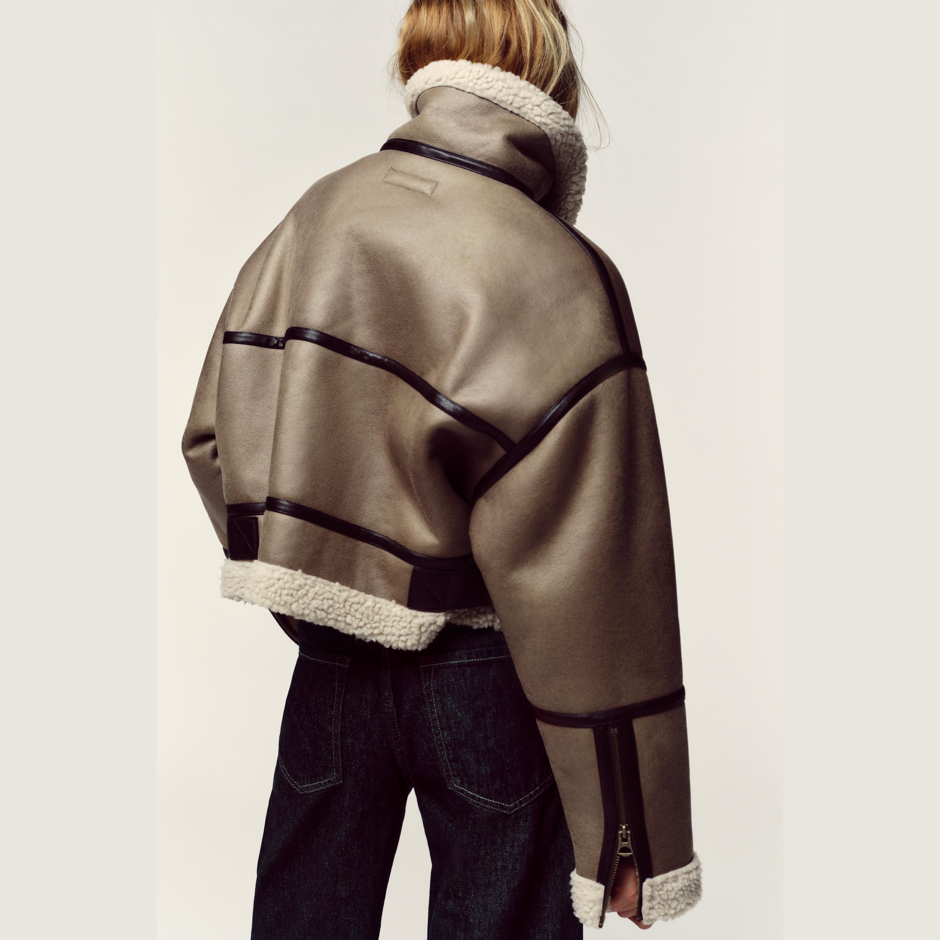 - التصميم: جاكيت قصير مزدوج الوجه (Short Double-Faced Jacket)