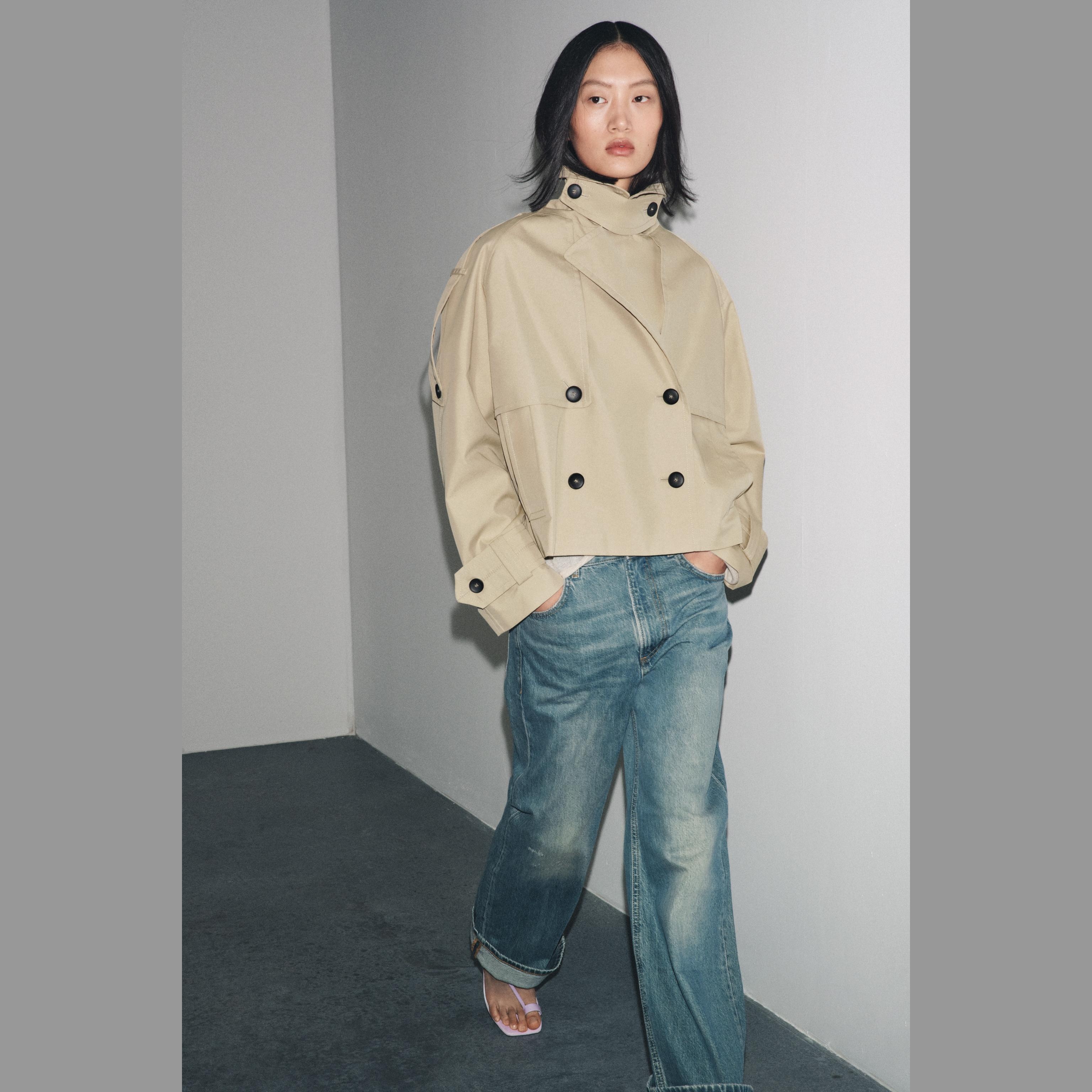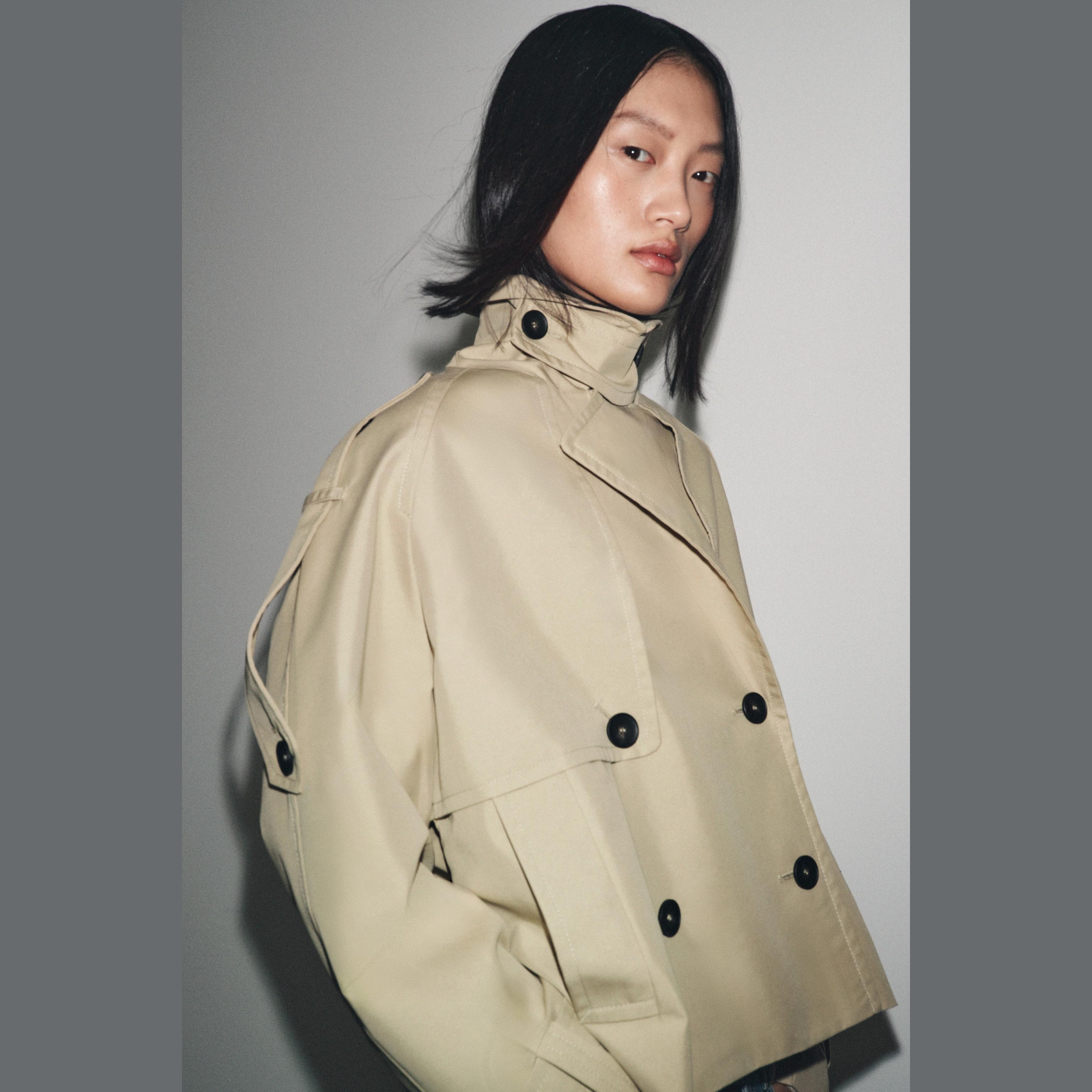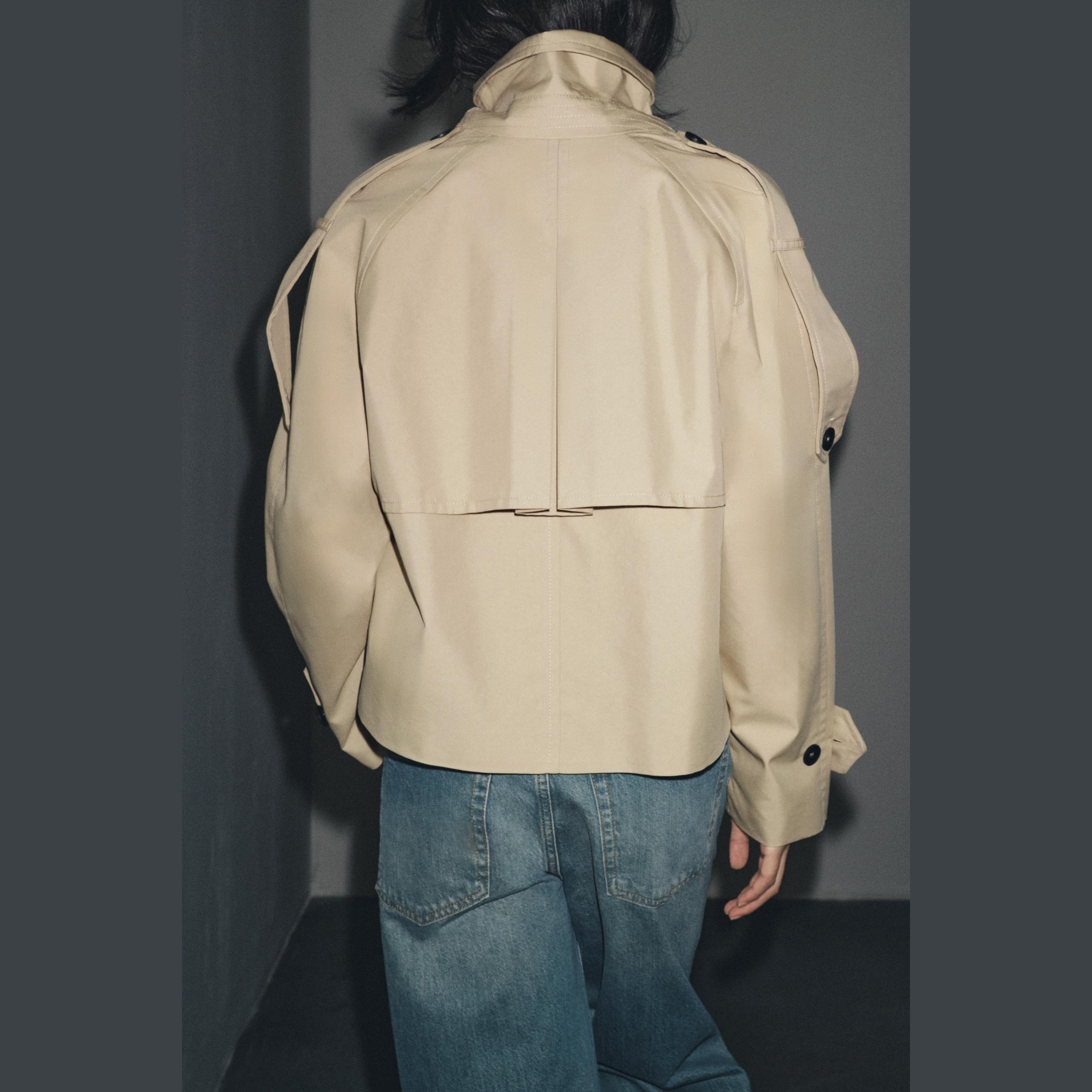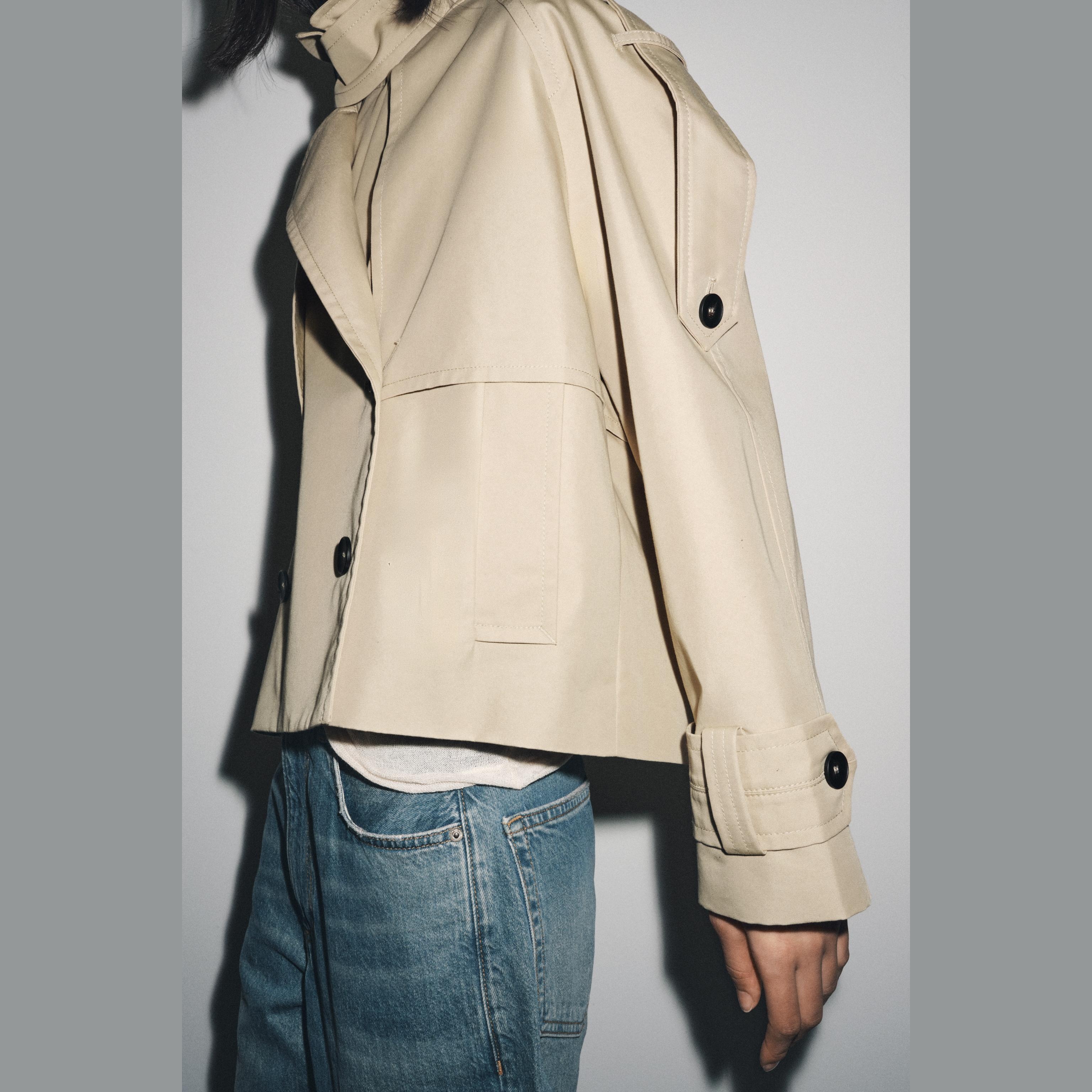 ترنش قصير مقاوم للماء – مجموعة ZW – لون طبيعي (بيج فاتح) – Light Beige (Short Water-Repellent Trench – ZW Collection)