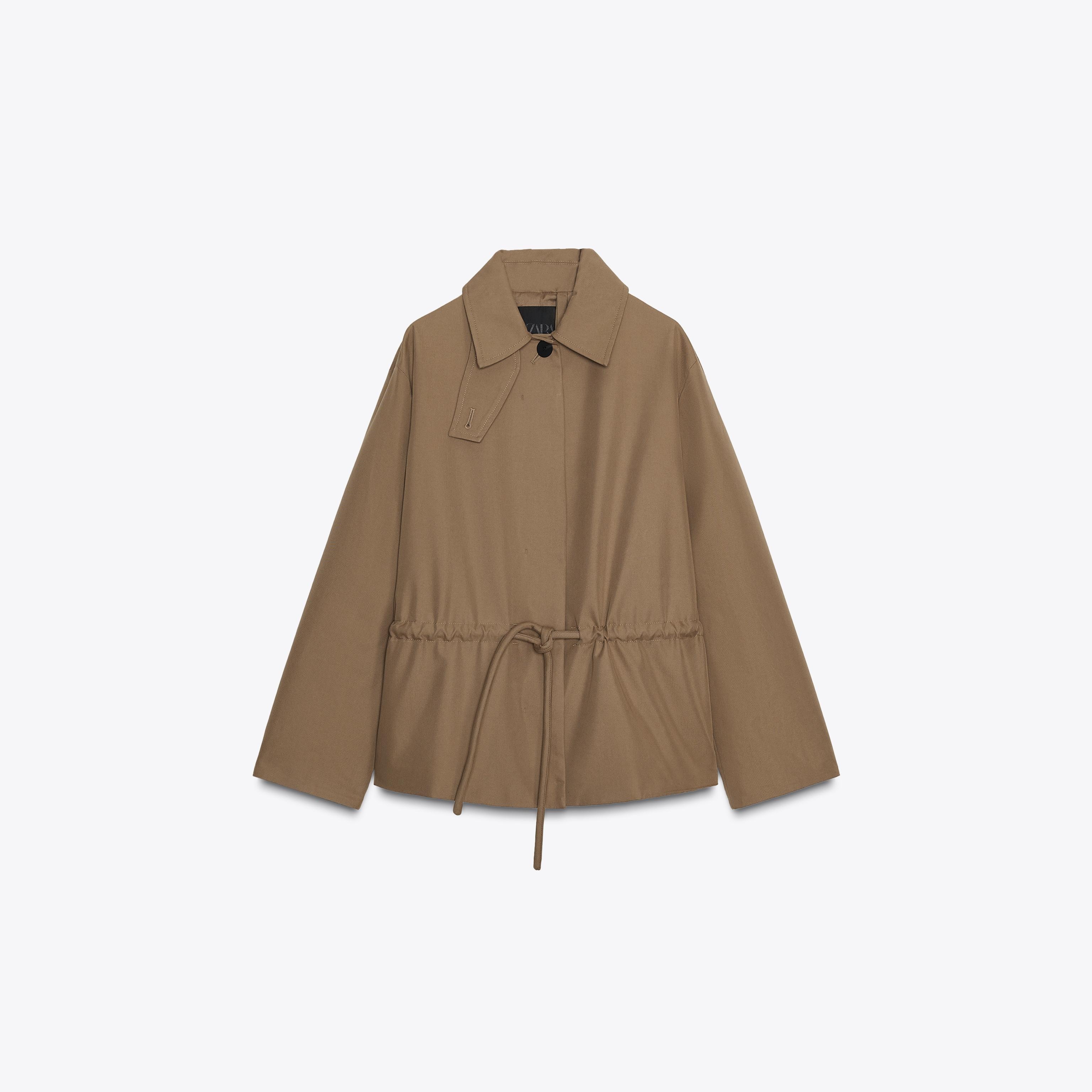 باركا قصير مع خصر قابل للتعديل – مجموعة ZW – لون طبيعي (بني/تاوب) – Brown/Taupe (ZW Collection Short Parka with Adjustable Waist)