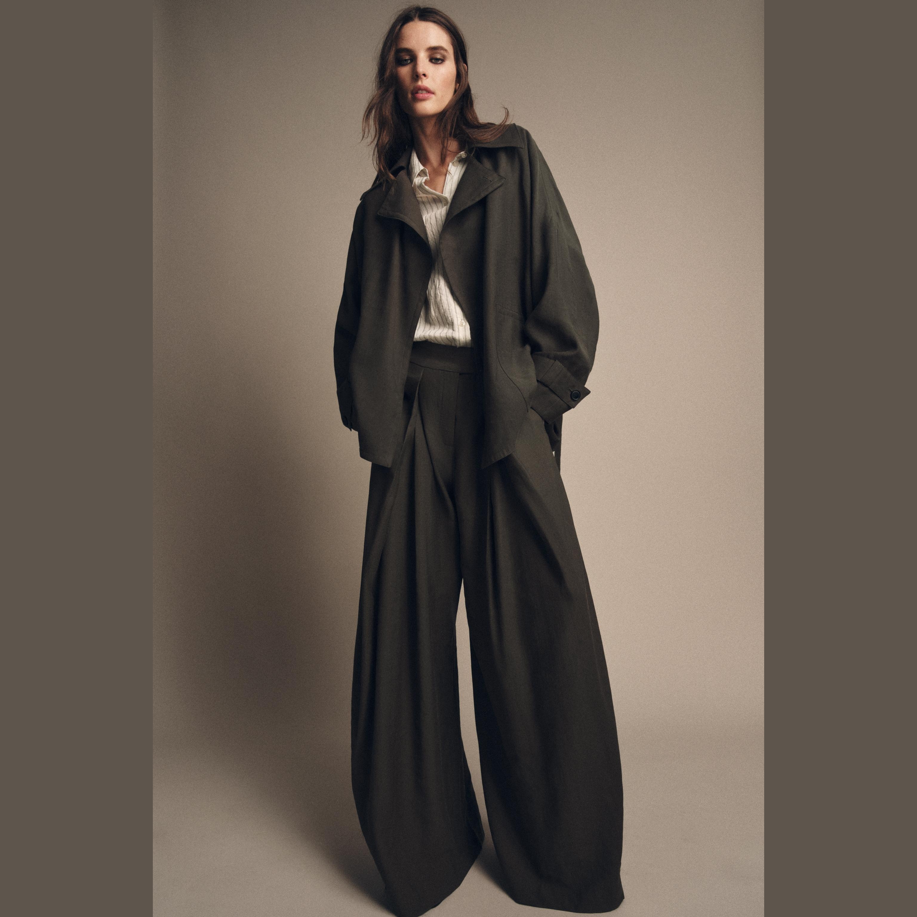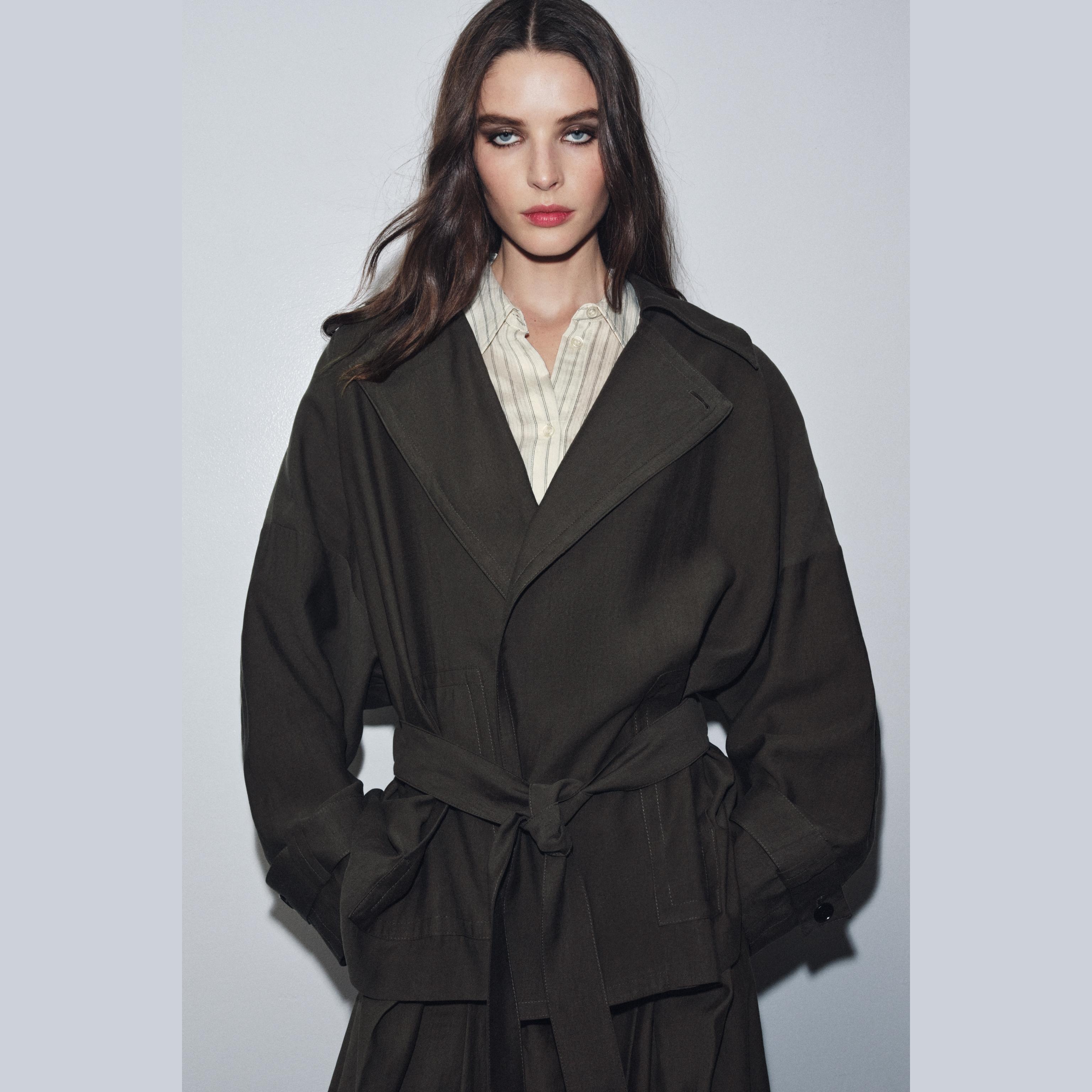 - التصميم: جاكيت انسيابي مع حزام (Flowing Belted Jacket – ZW Collection)